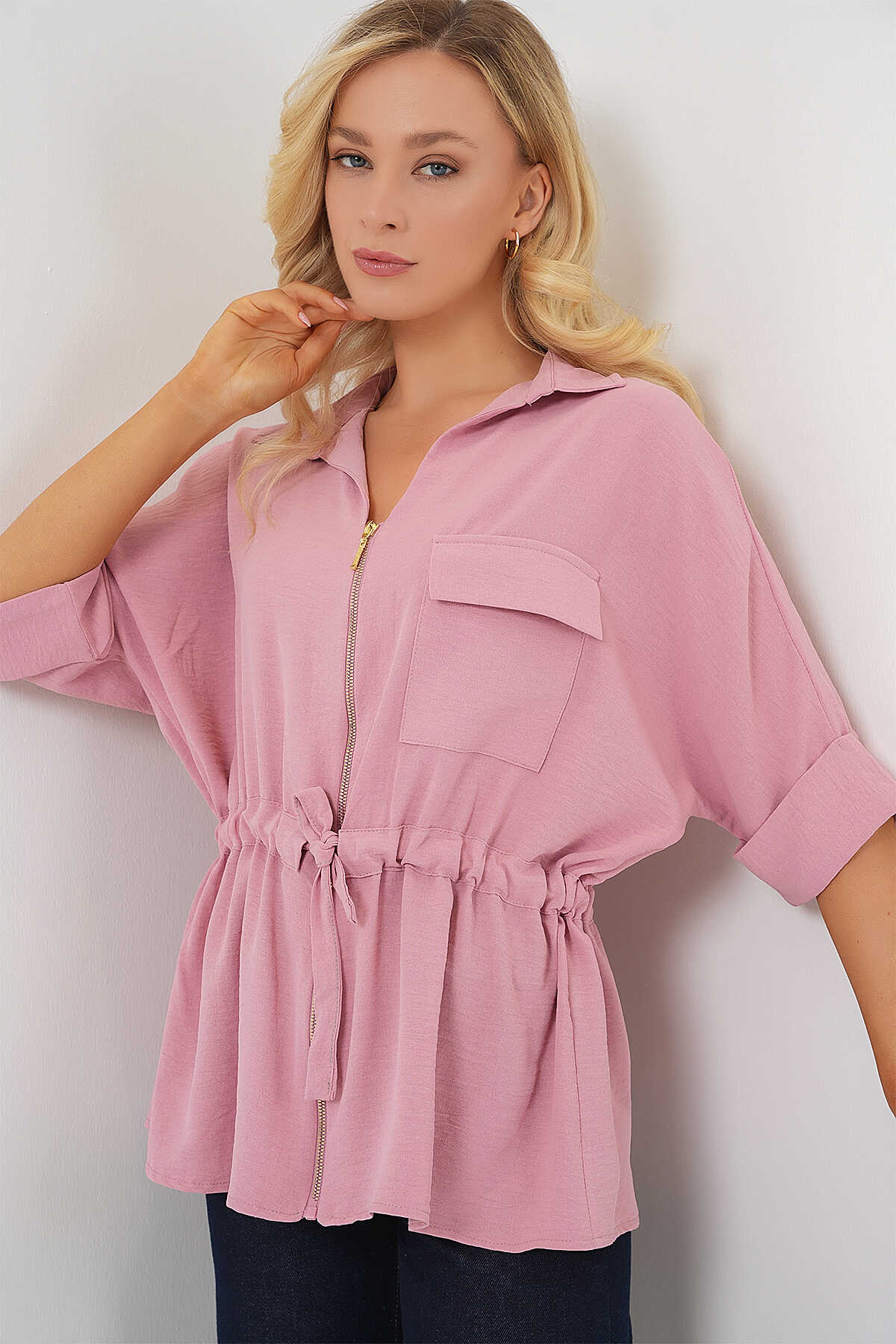 Fermuarlı Kadın Gömlek 0721 - Pudra