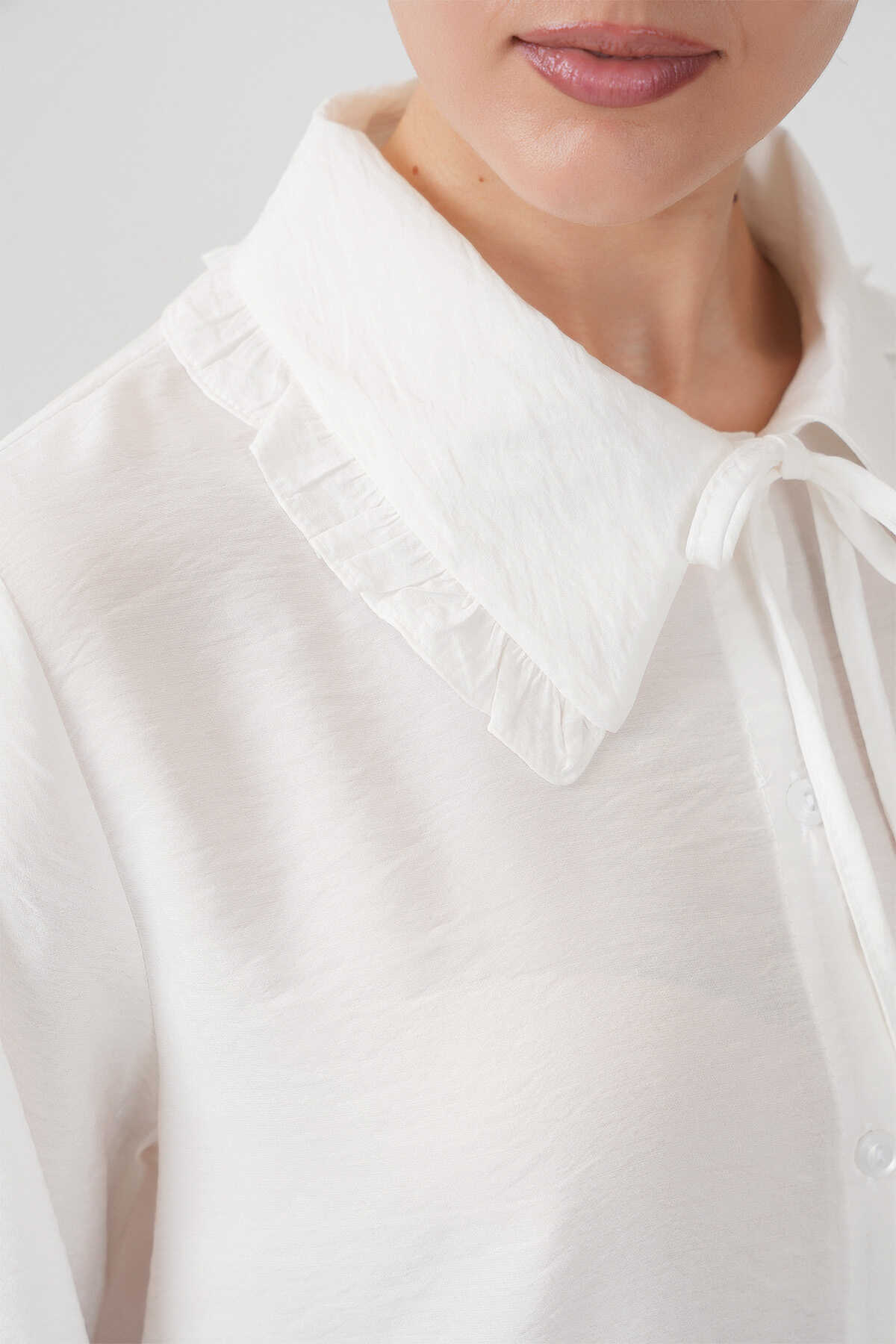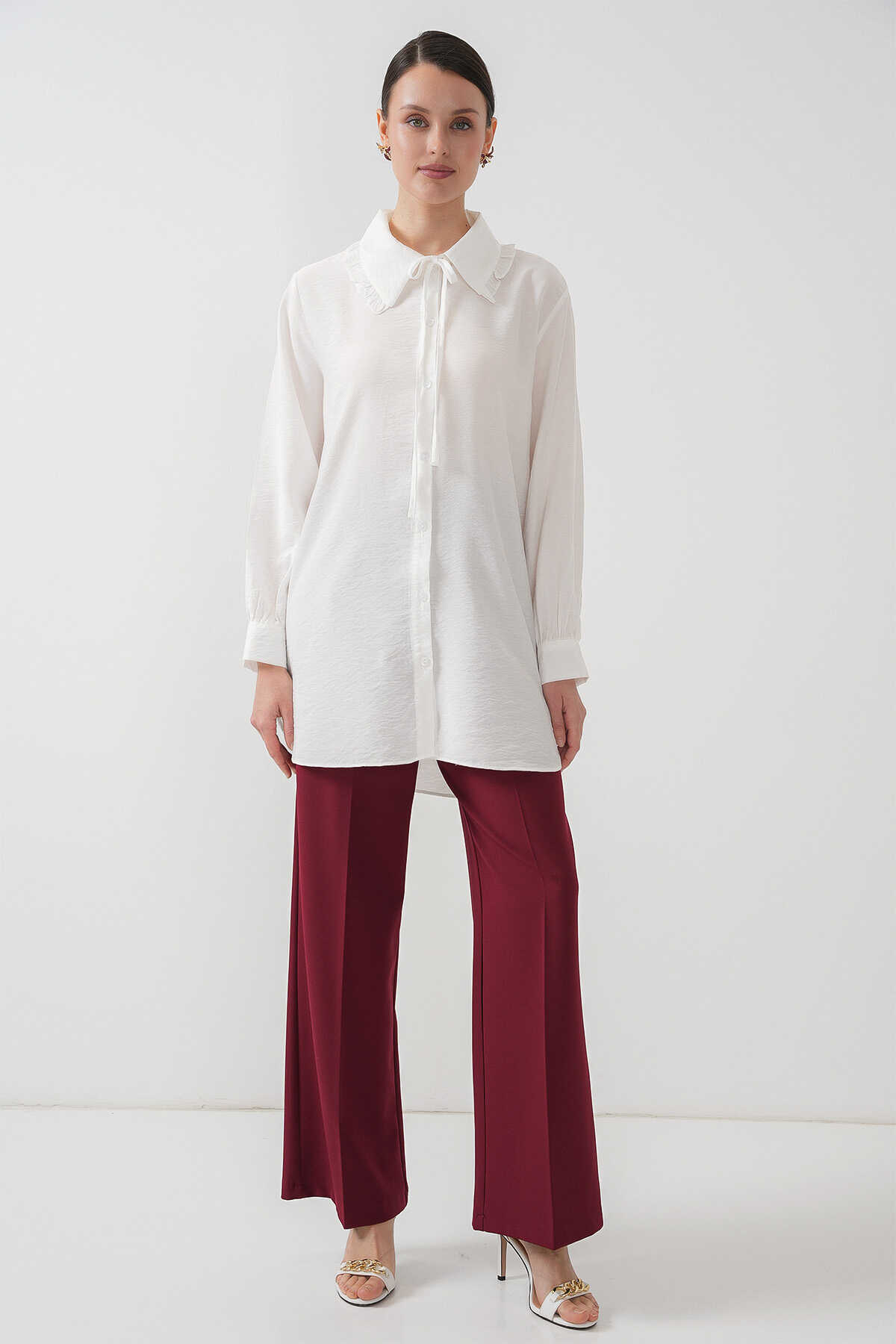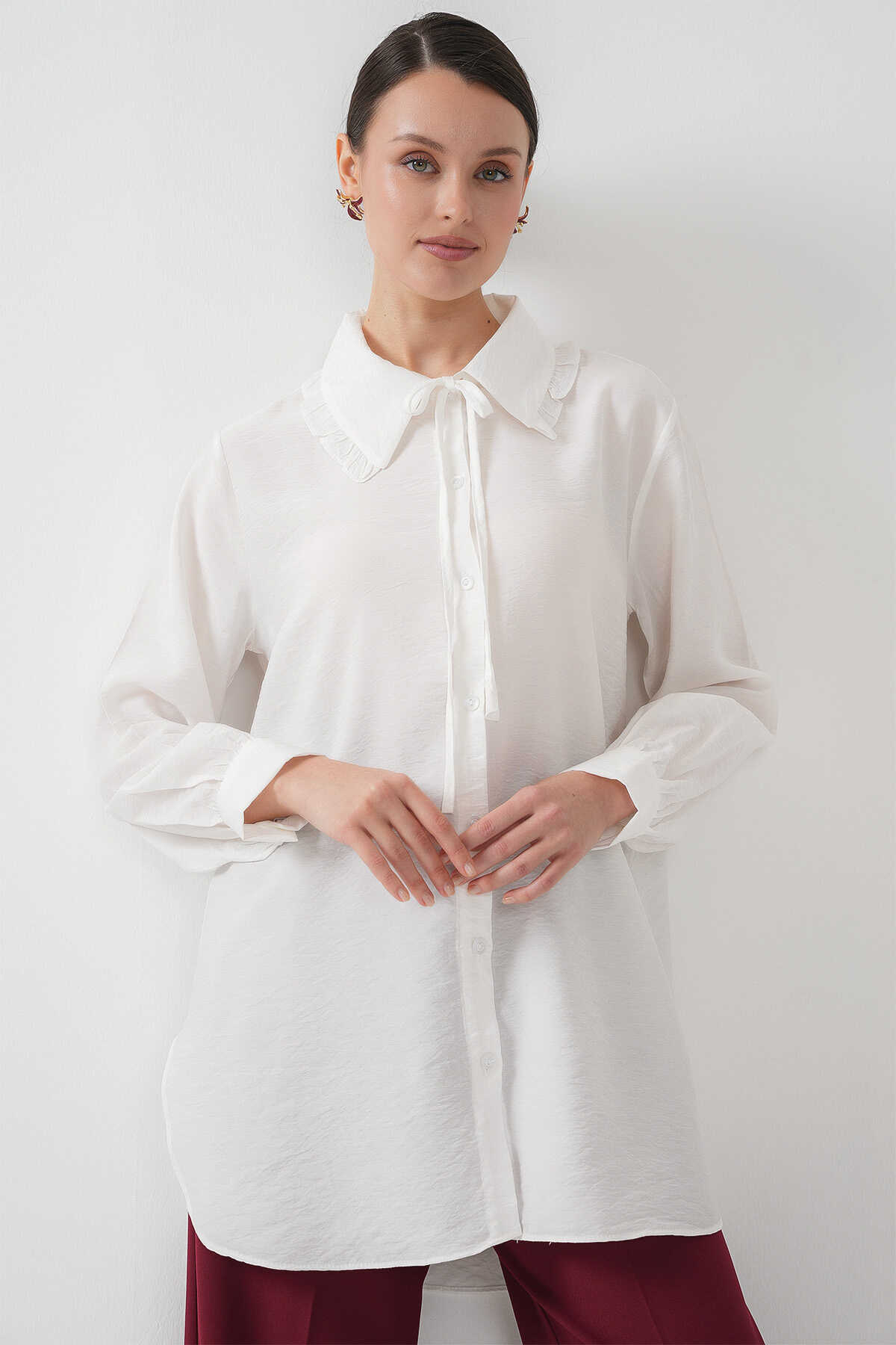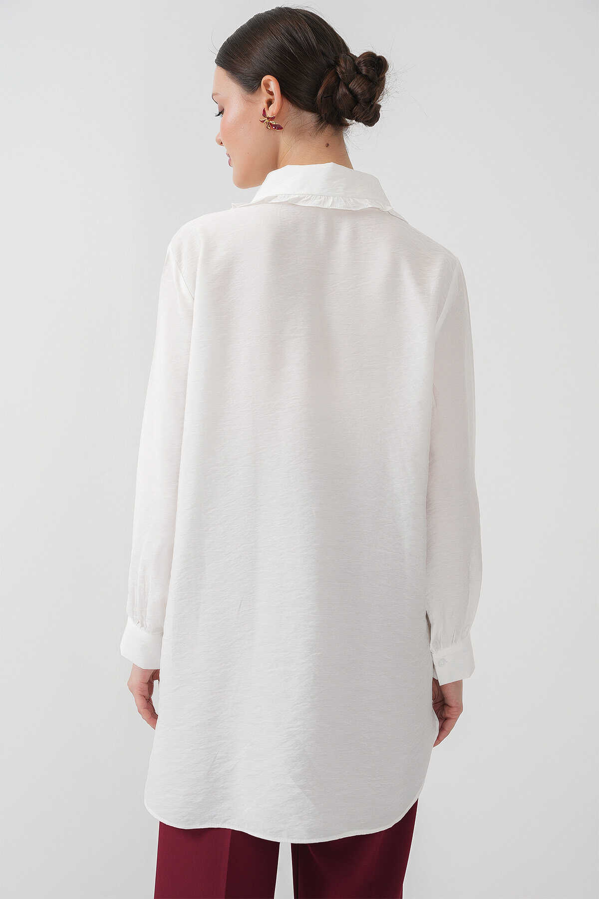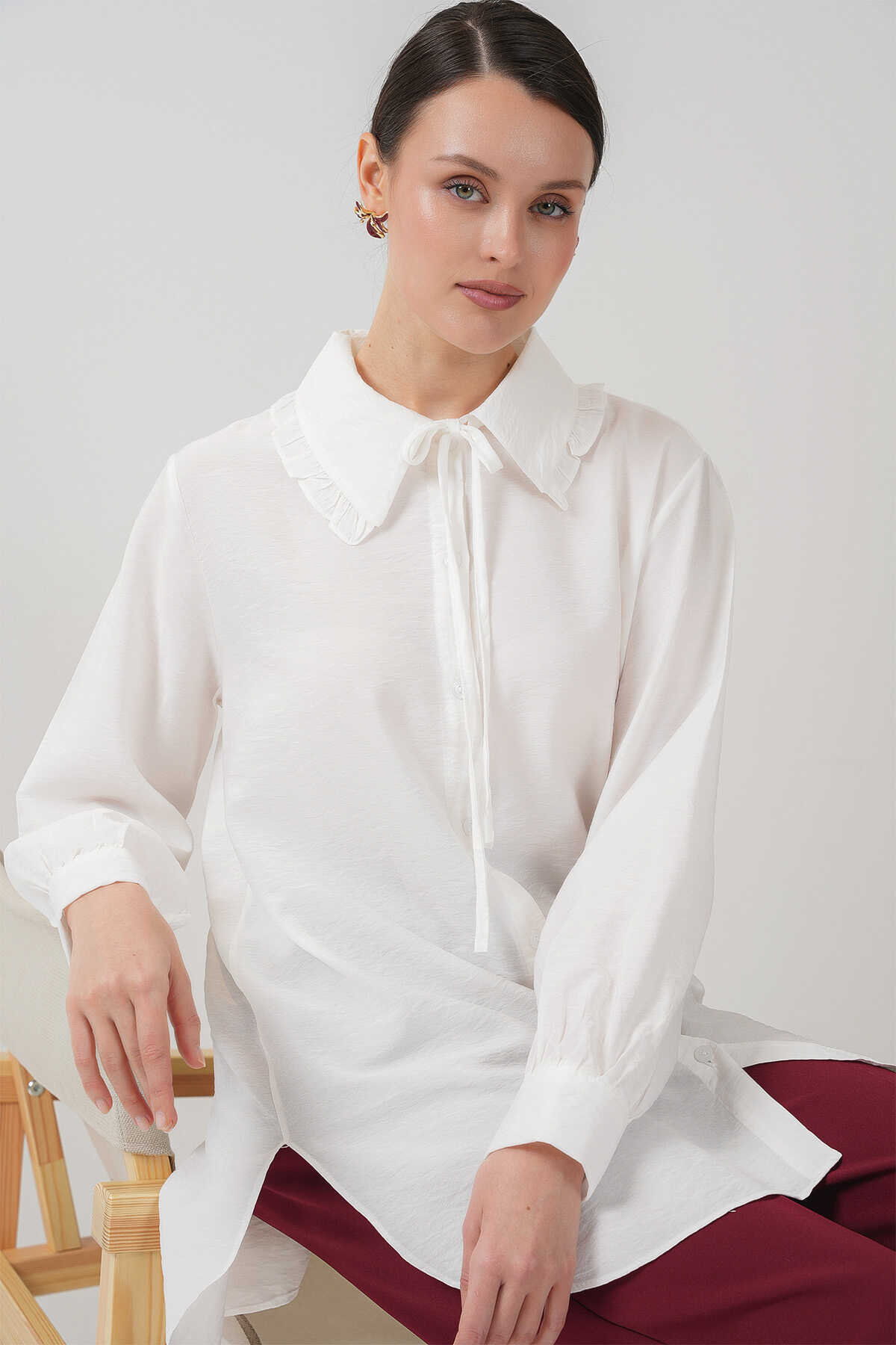 Fırfırlı Uzun Gömlek Tunik 5952 - Beyaz - Kombin