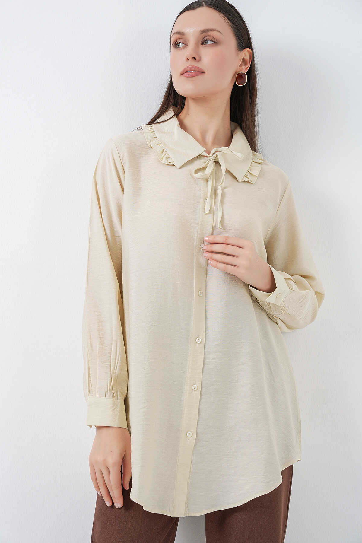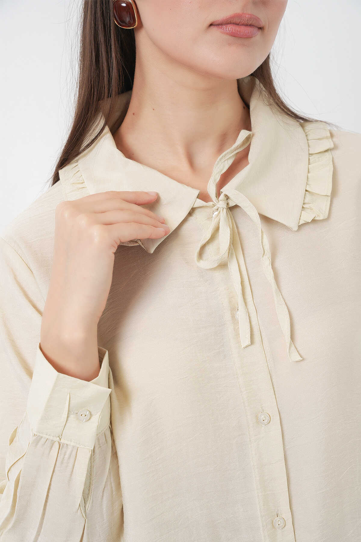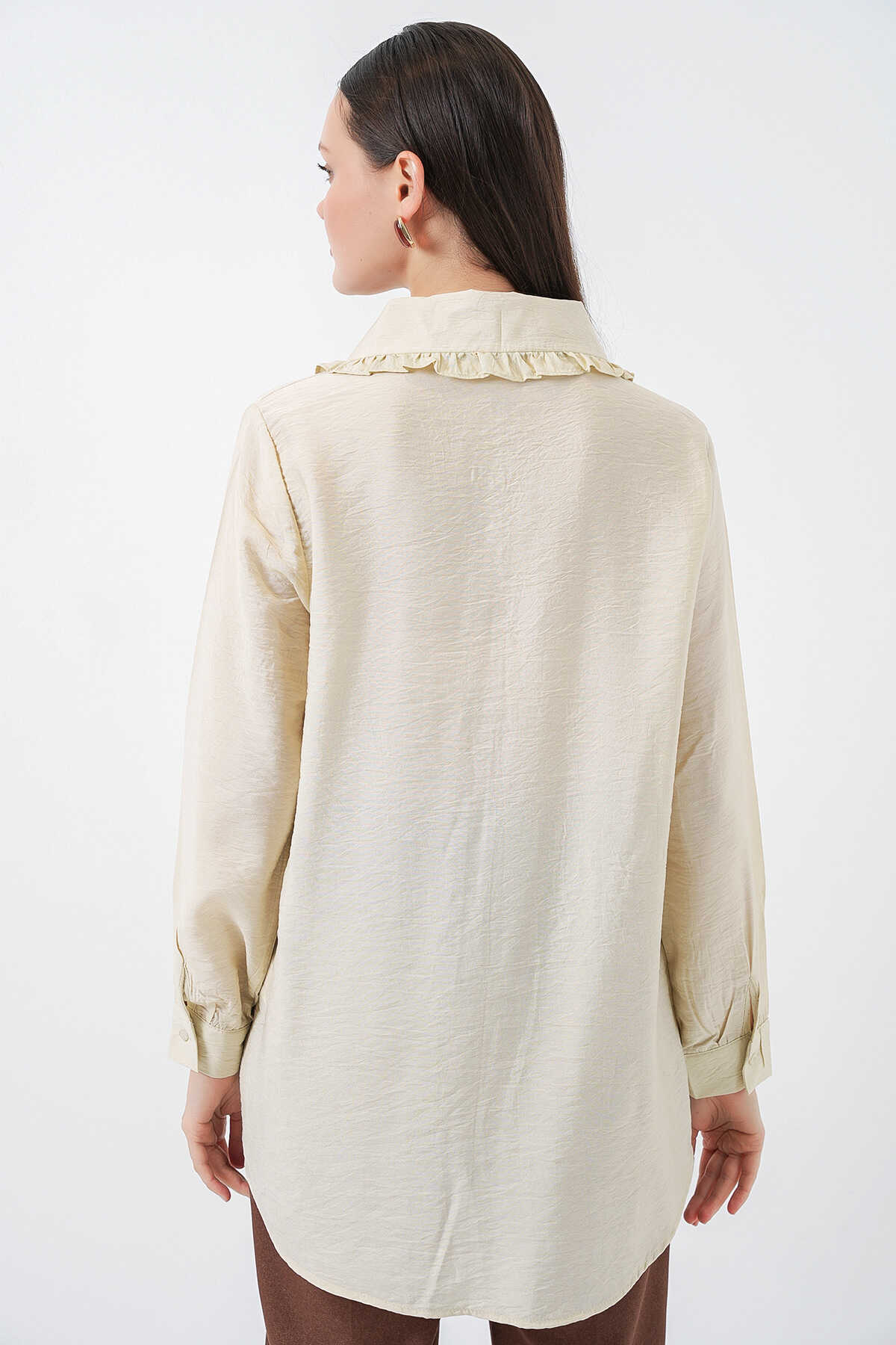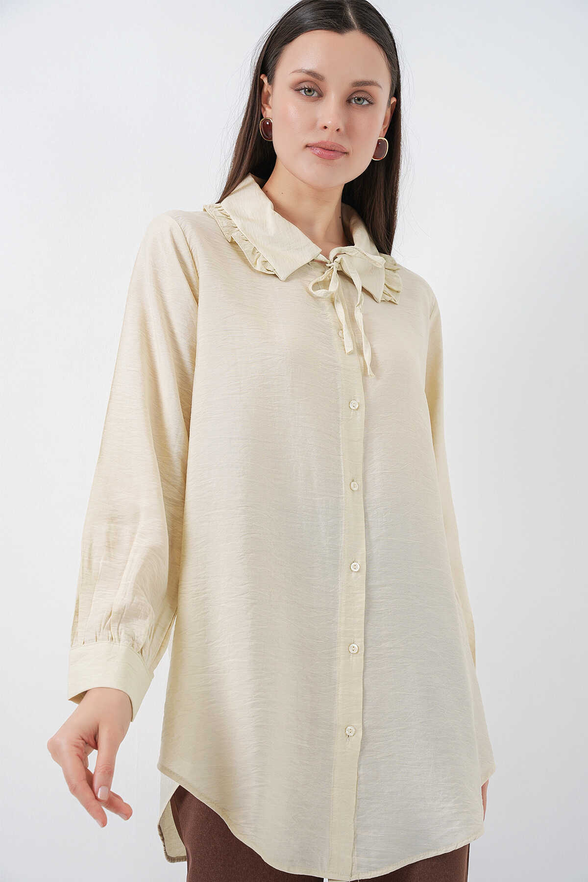 Fırfırlı Uzun Gömlek Tunik 5952 - Ekru