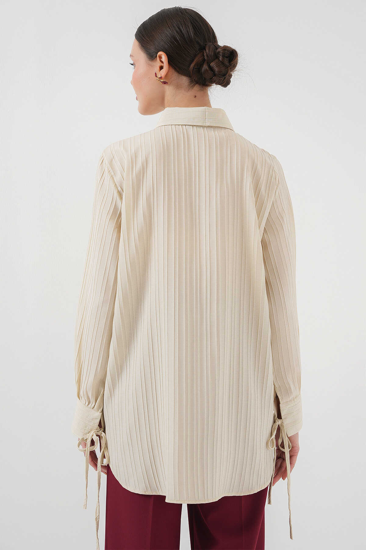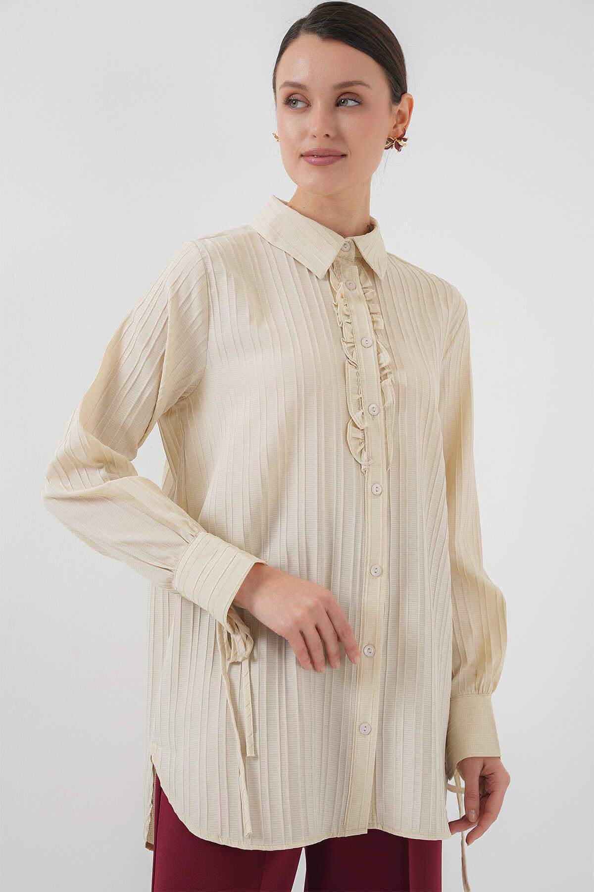 Fırfırlı Uzun Gömlek Tunik 5953 - Bej - Kombin