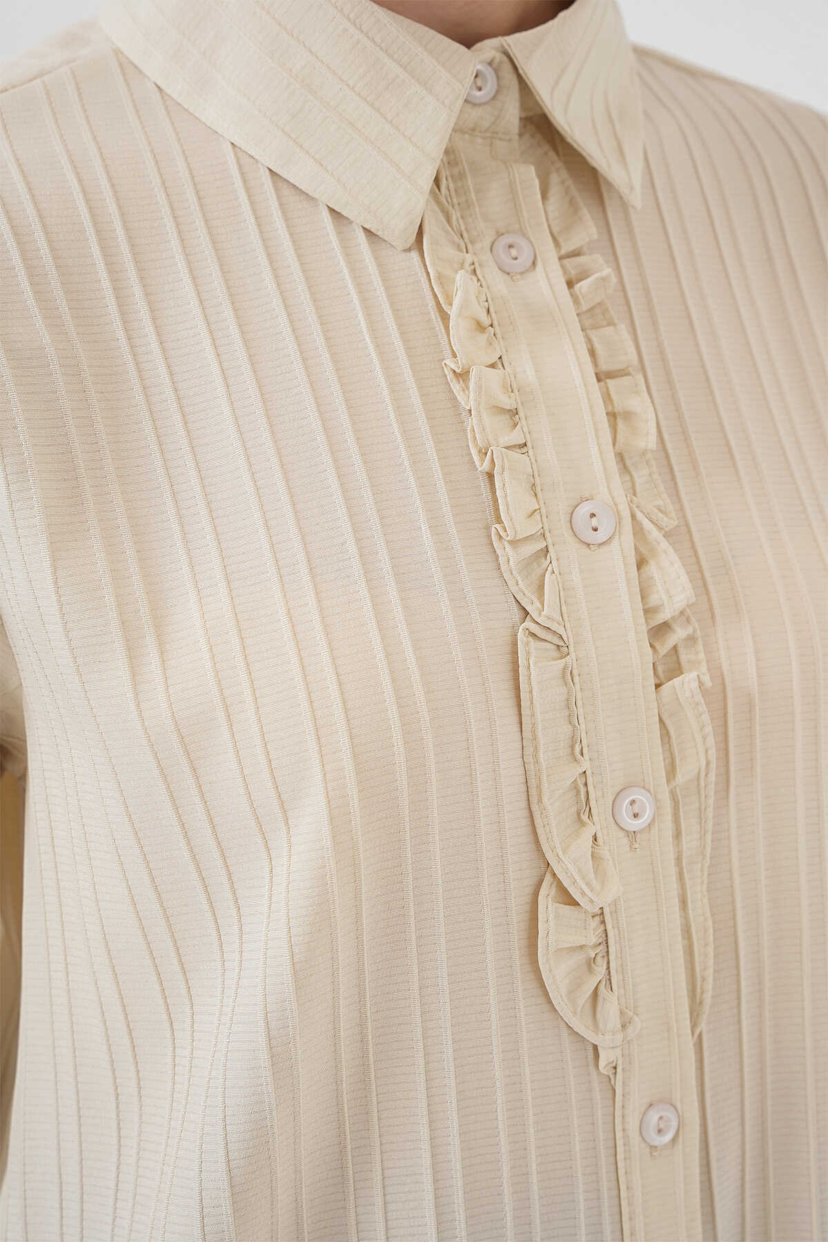 Fırfırlı Uzun Gömlek Tunik 5953 - Bej