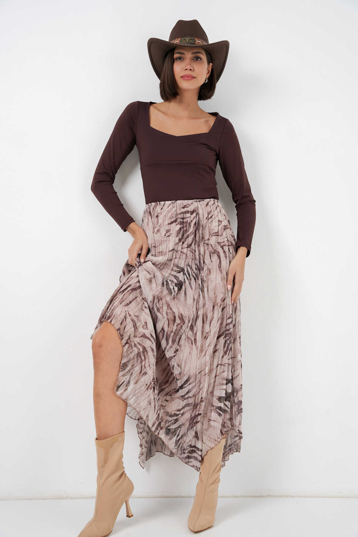 Kadın Asimetrik Kesim Şifon Etek 8056 - Bej - Kombin