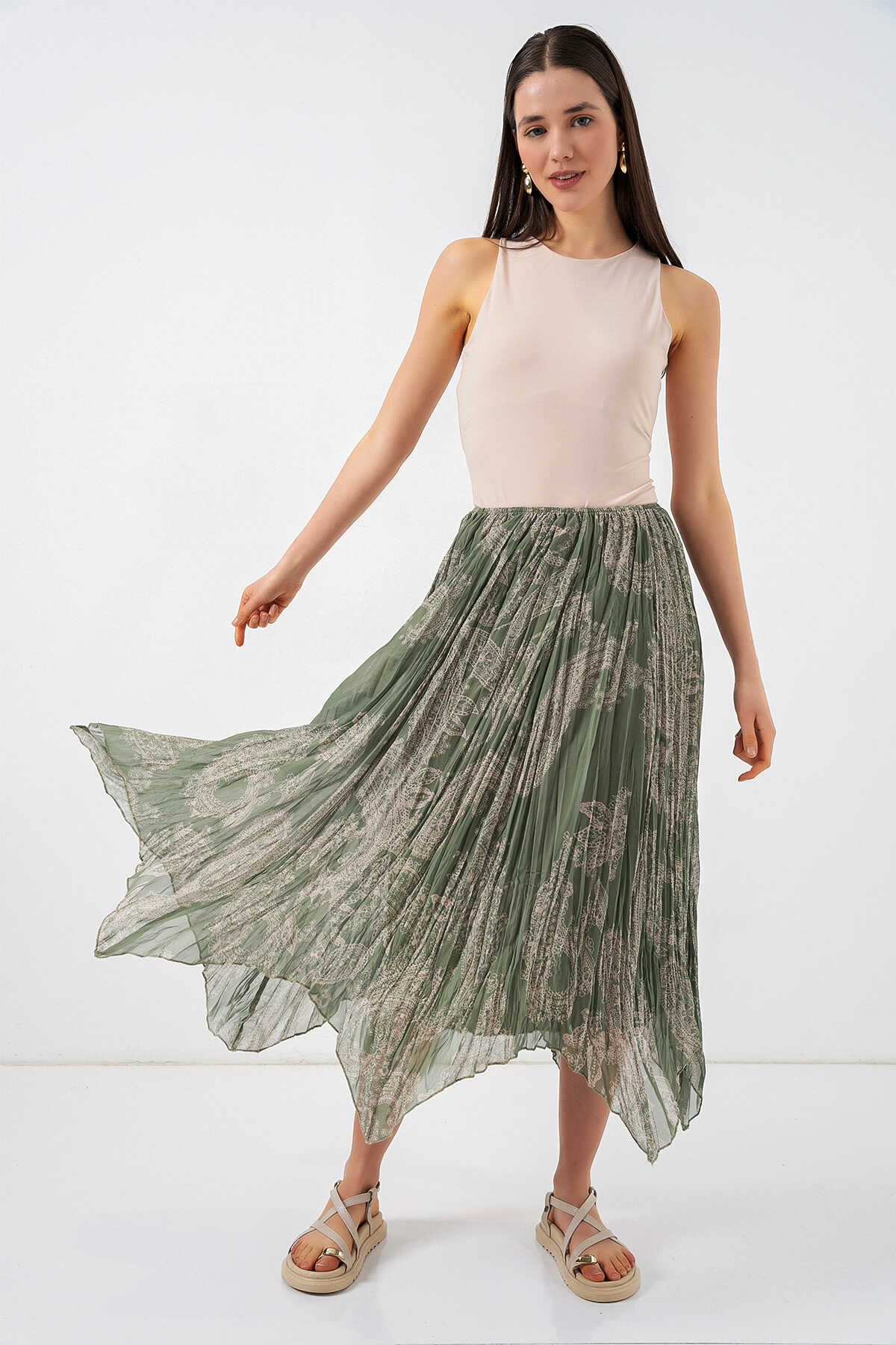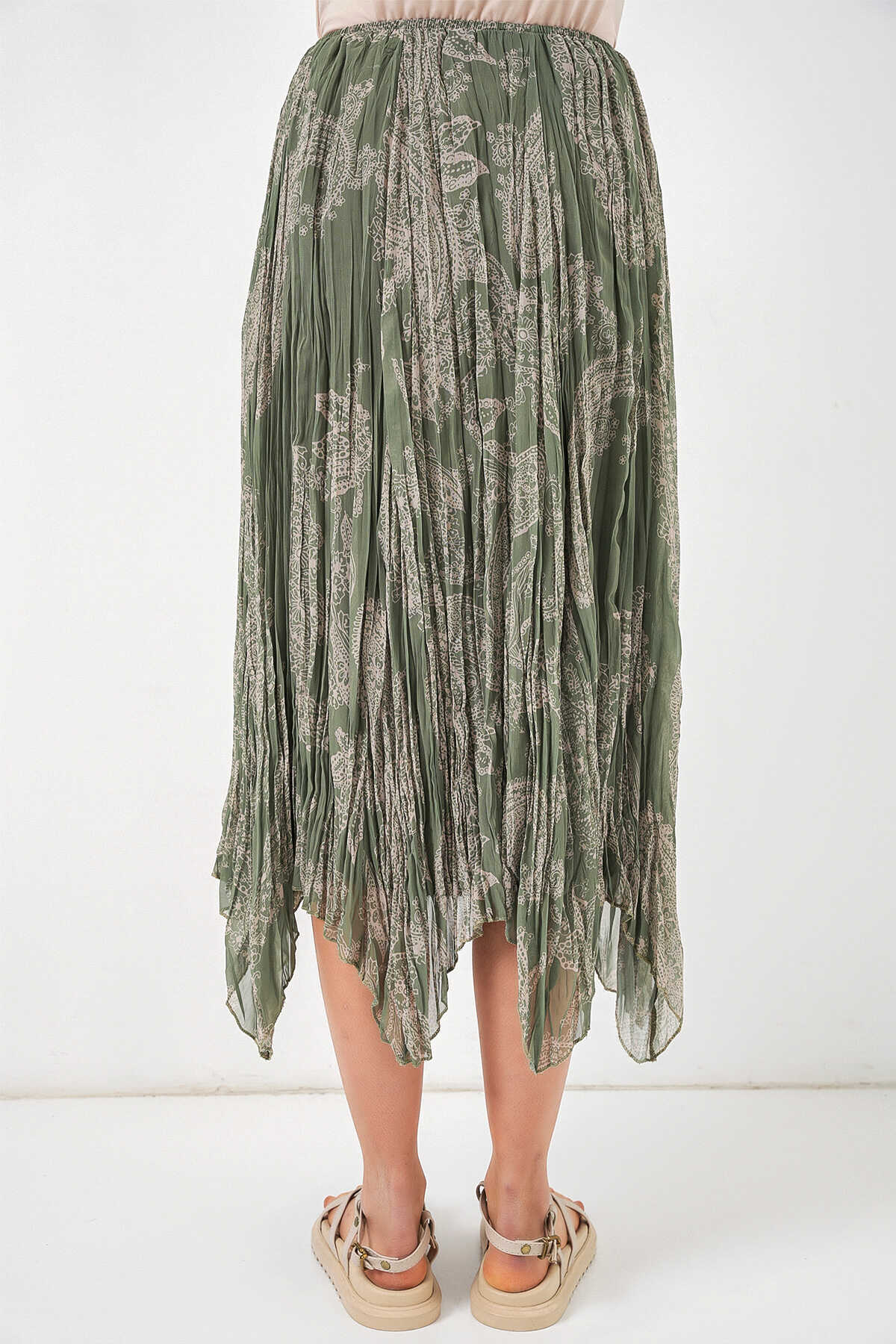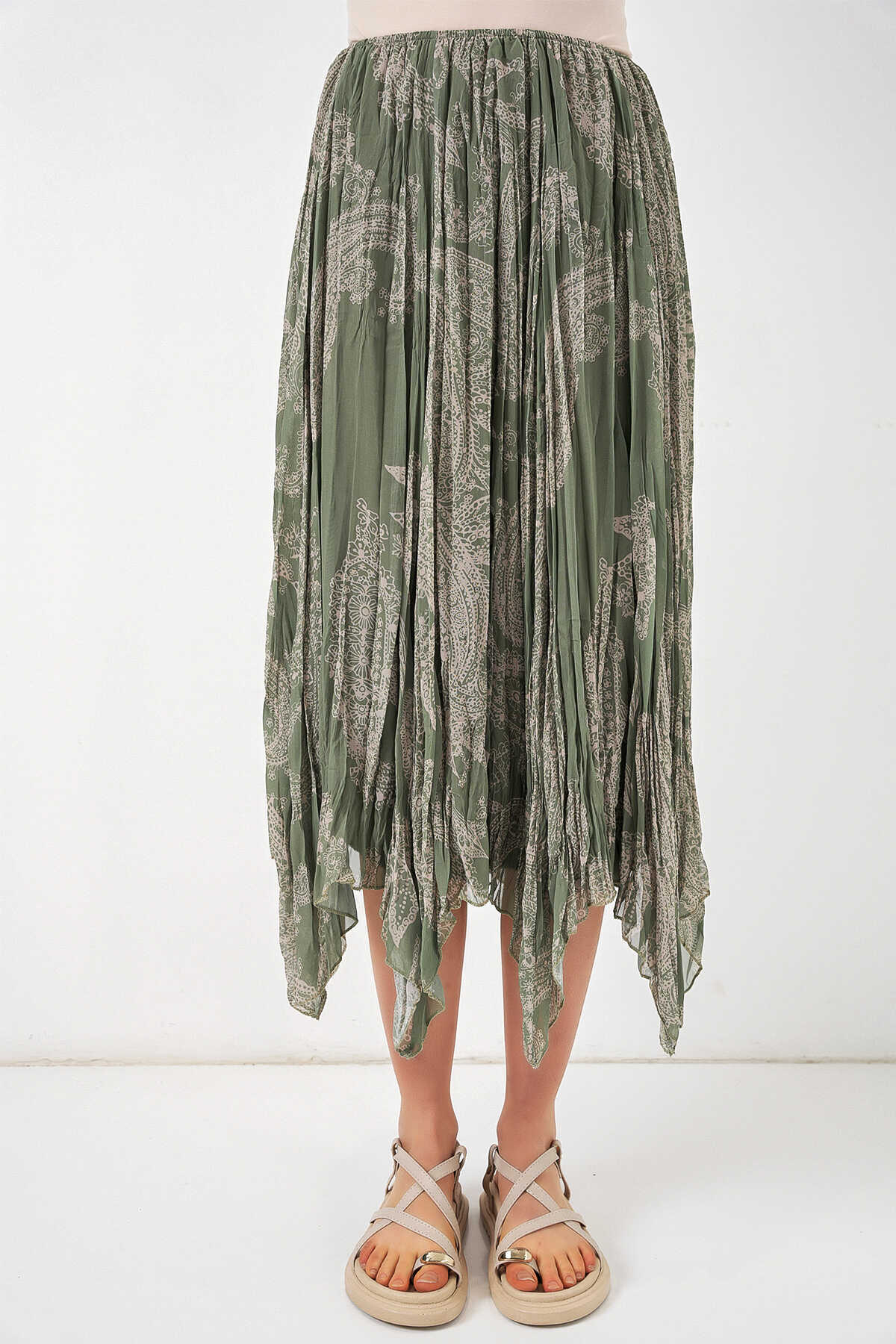 Kadın Asimetrik Tül Şifon Etek 8061 - Çağla - Kombin