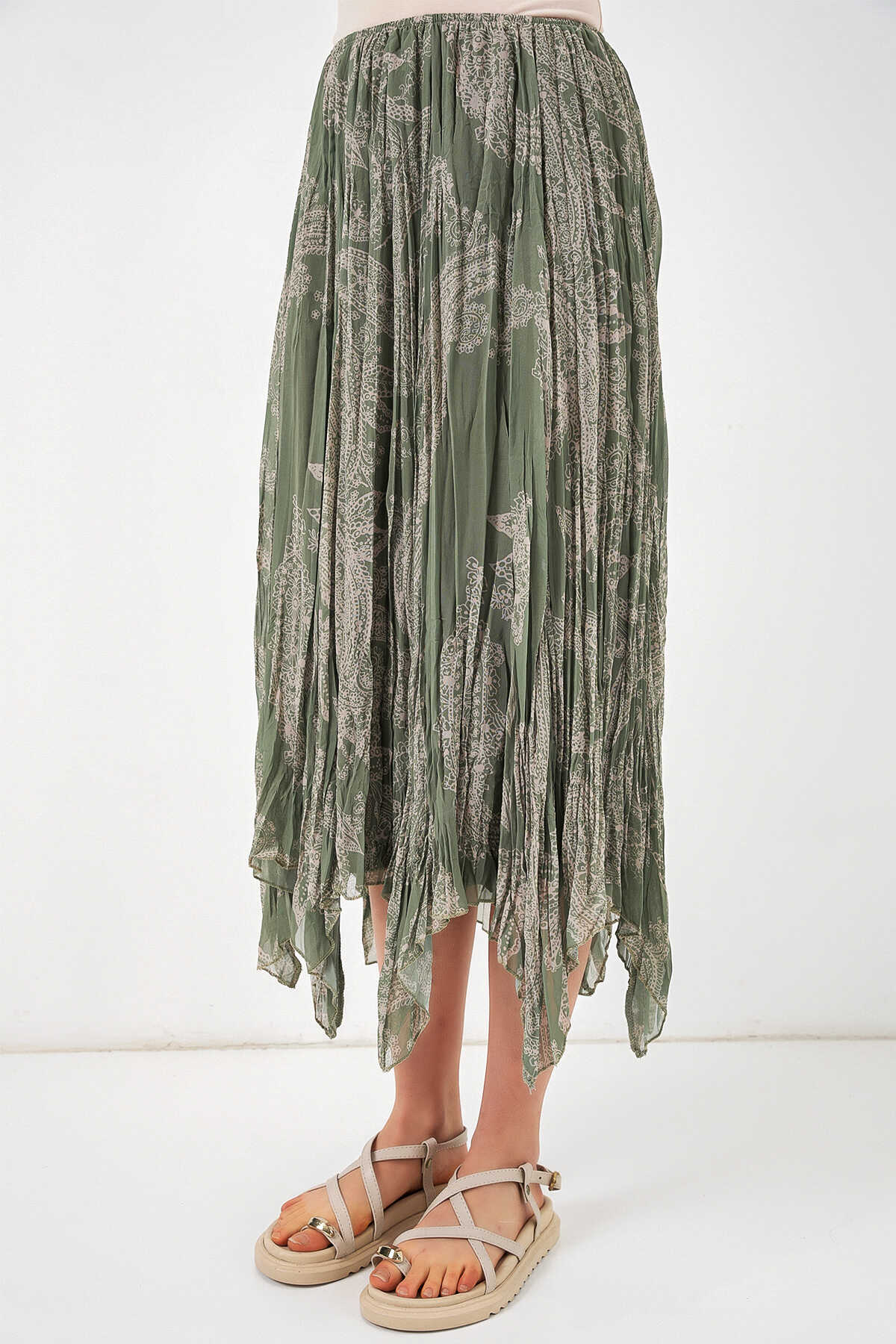 Kadın Asimetrik Tül Şifon Etek 8061 - Çağla