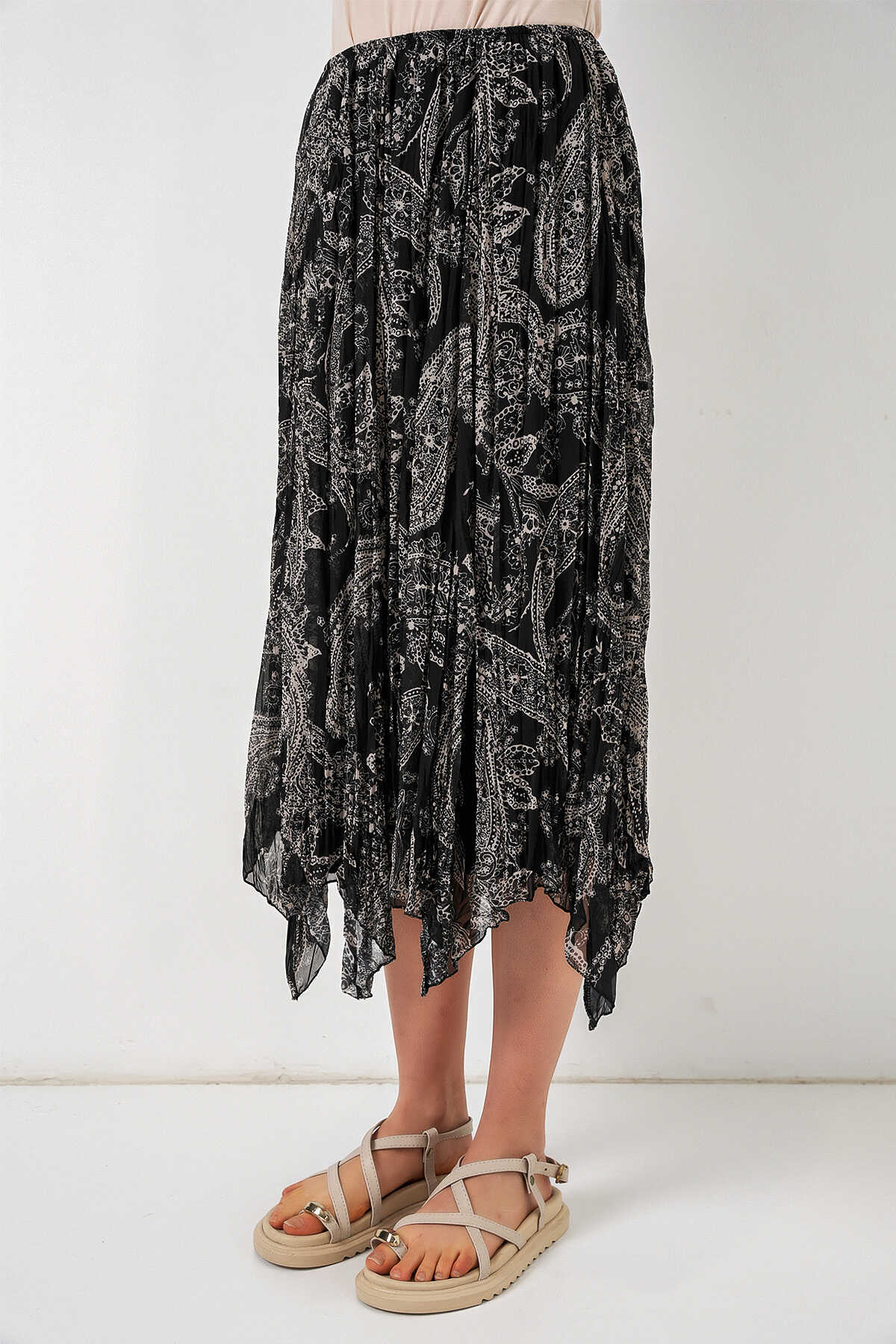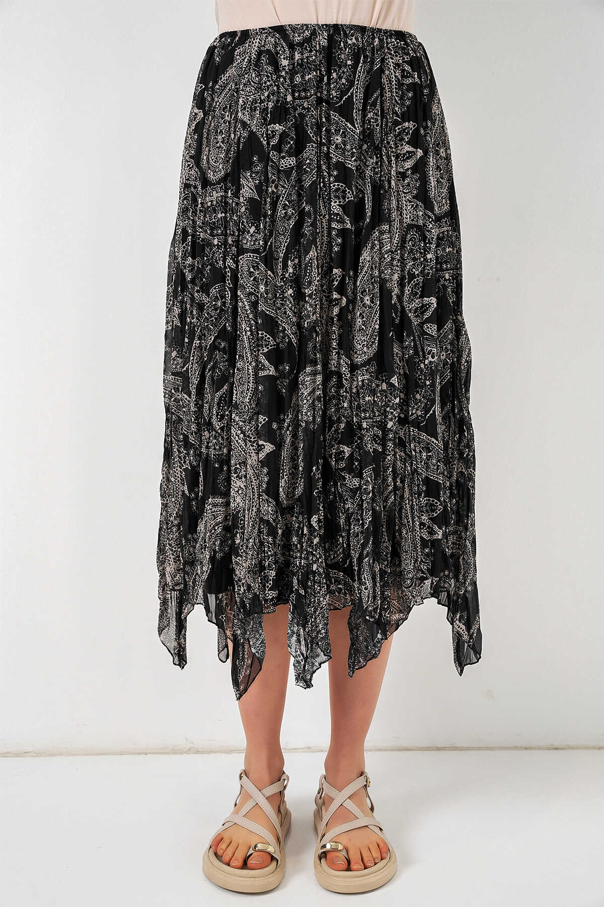 Kadin Asimetrik Tül Sifon Etek 8061ÜRÜNÜMÜZ ASTARLIDIR.BELI LASTIKLIDIR.