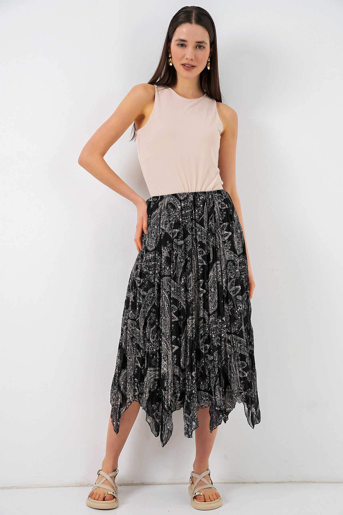 Kadın Asimetrik Tül Şifon Etek 8061 - Siyah - Kombin