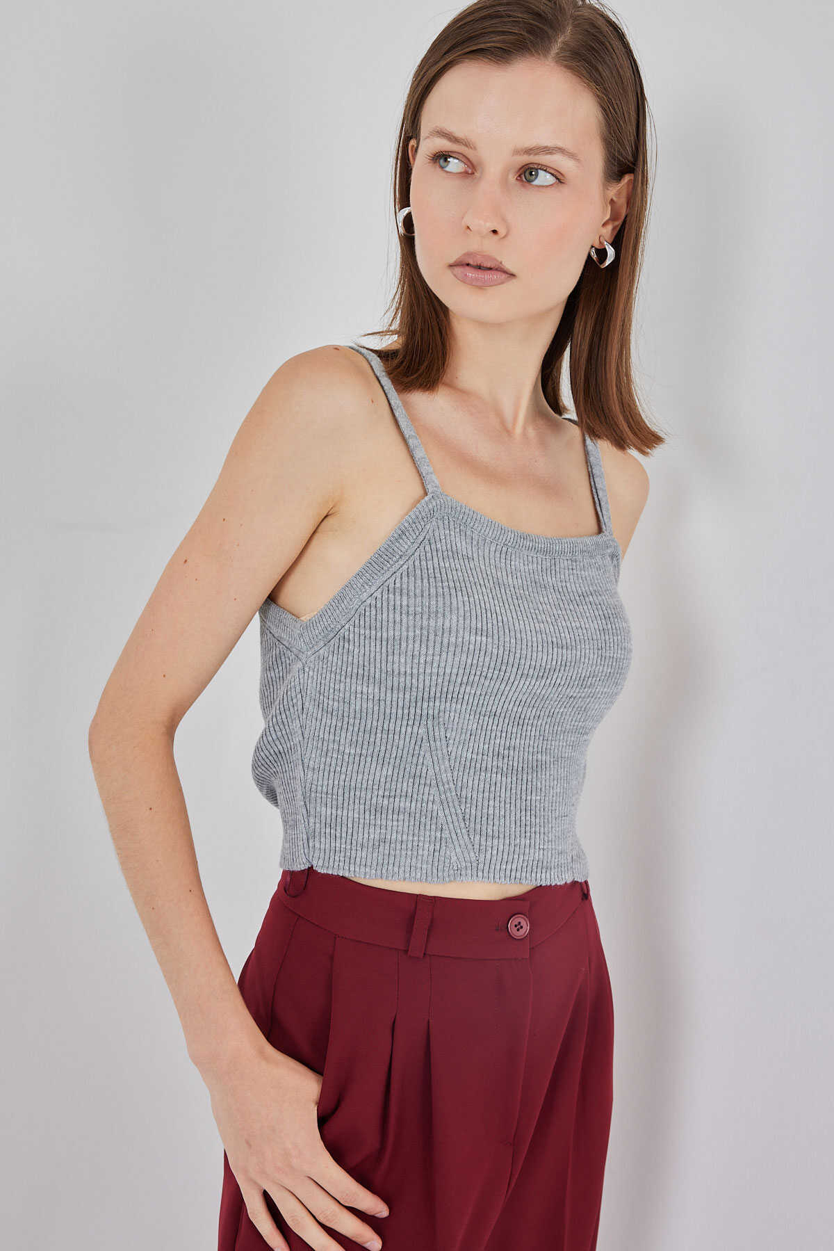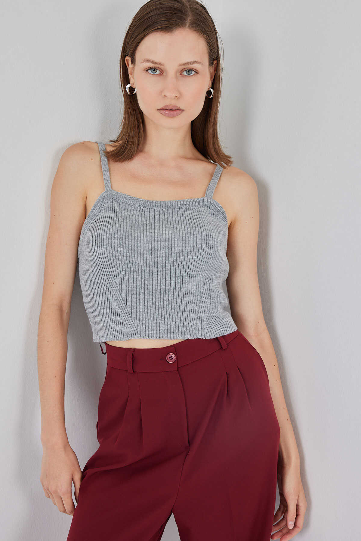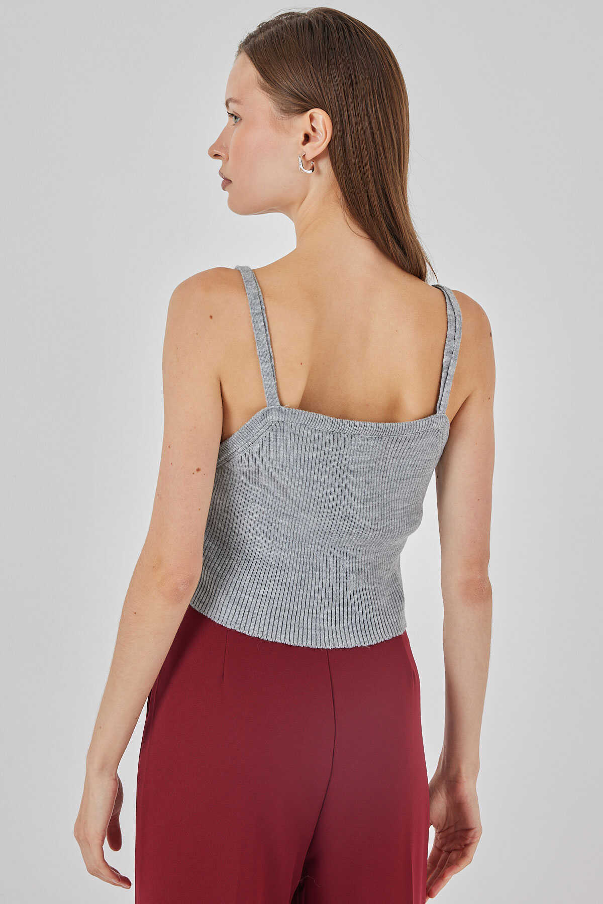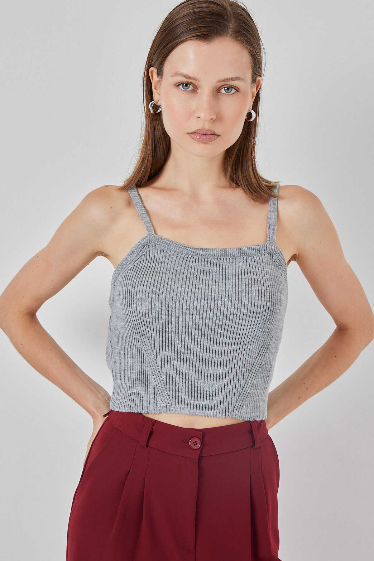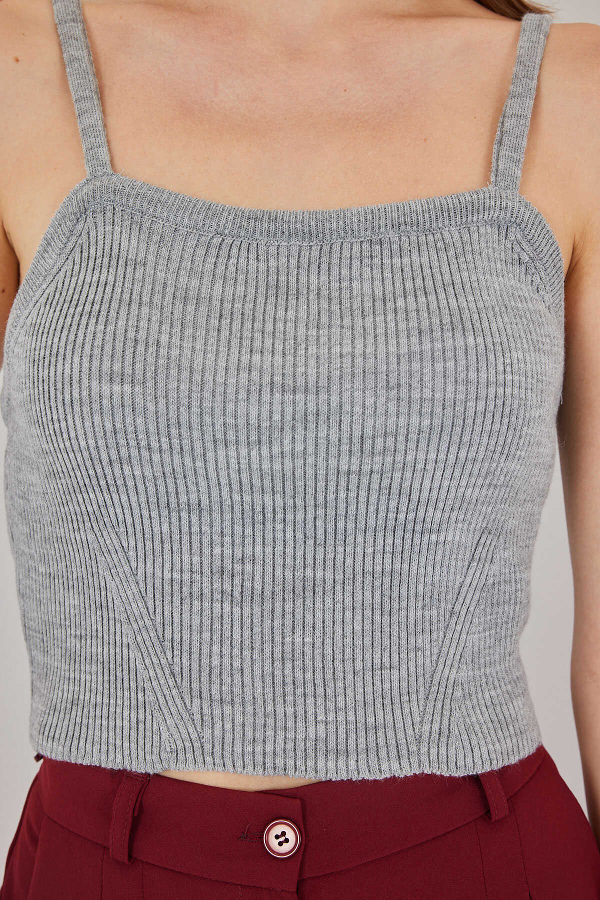 Kadın Askılı Crop Top Bluz 15934 - Gri - Kombin