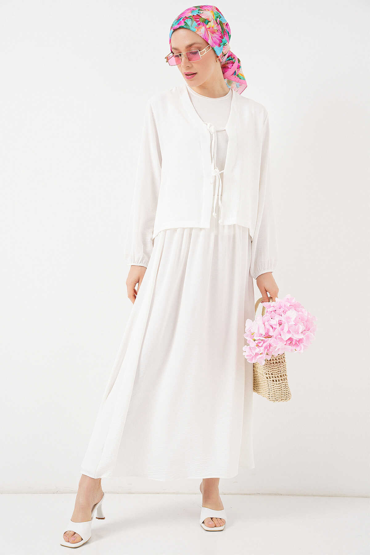 Kadın Ayrobin Kimono Etek İkili Takım 8047 - Beyaz - Kombin
