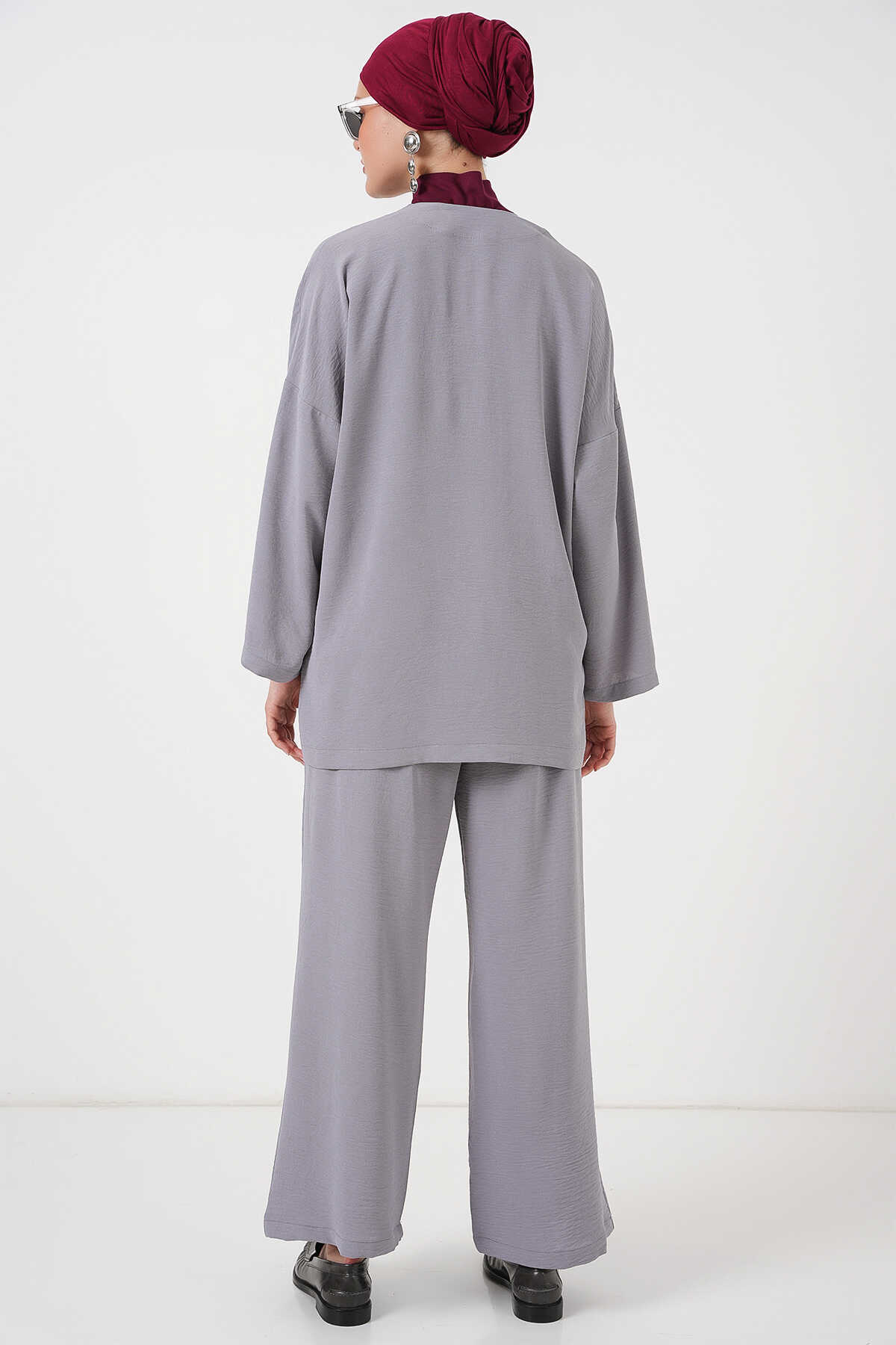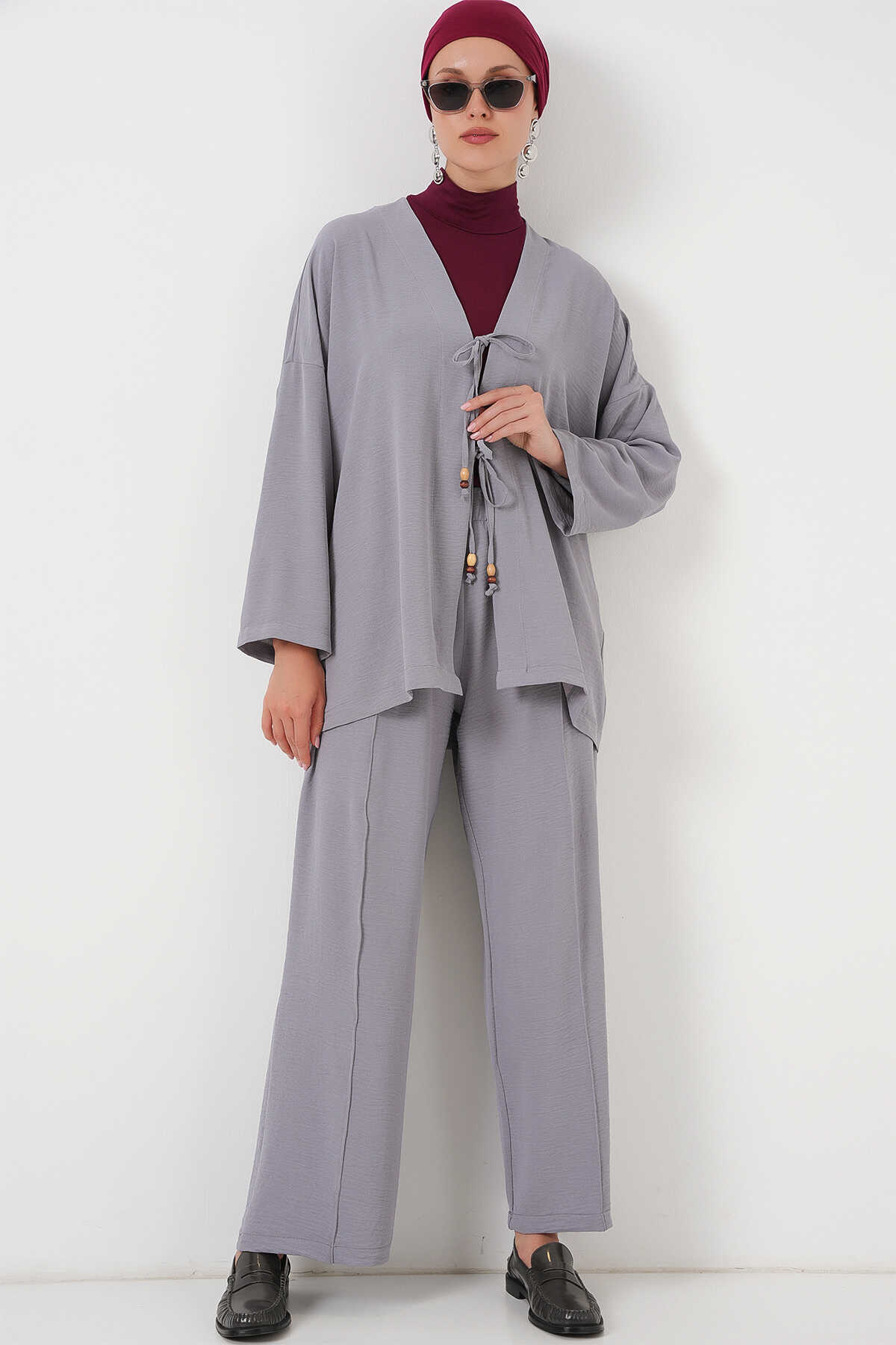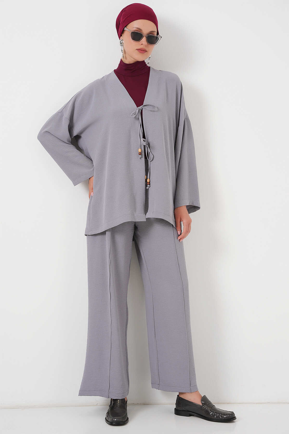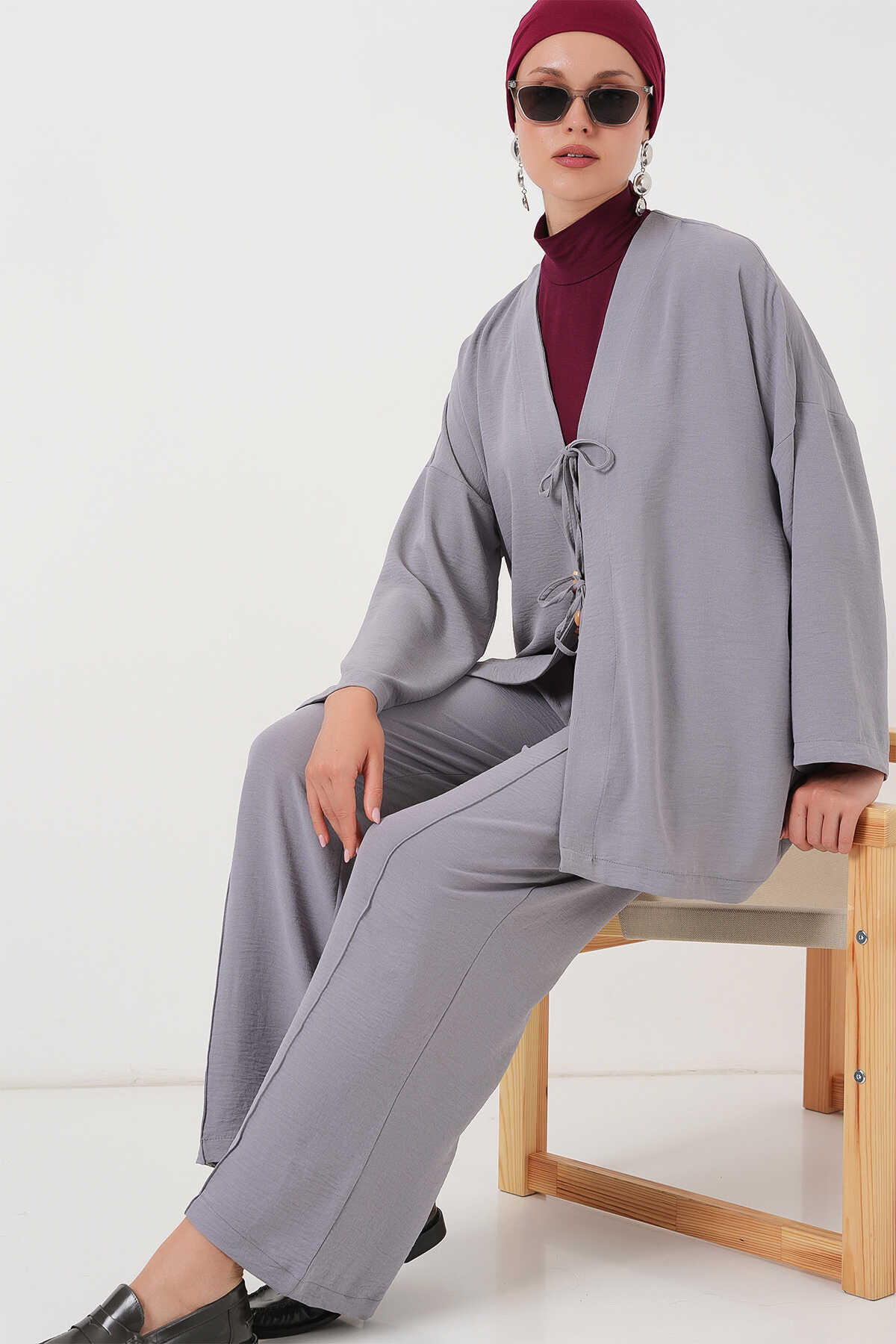 Kadın Ayrobin Kimono Pantolon İkili Takım 6739 - Gri - Kombin