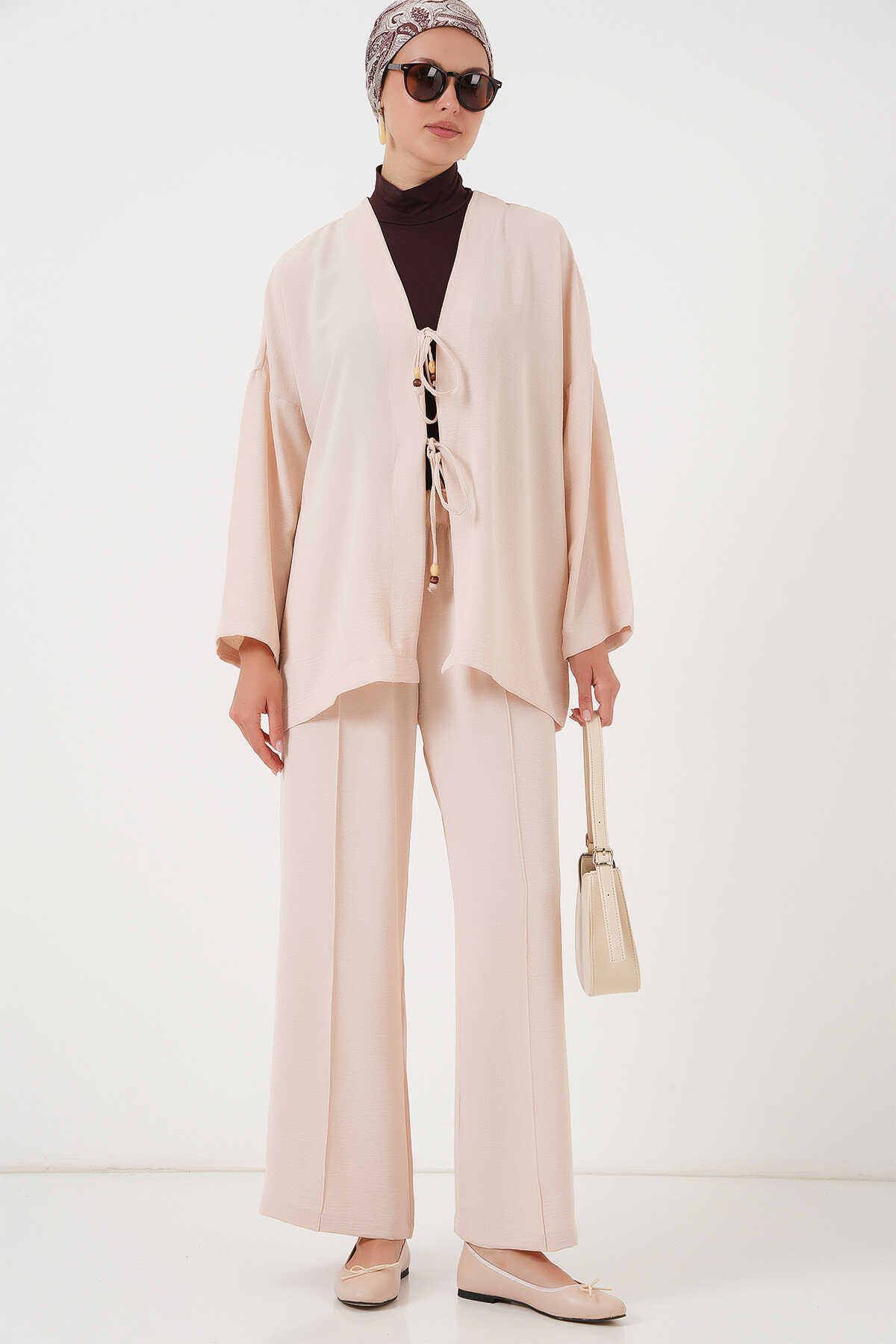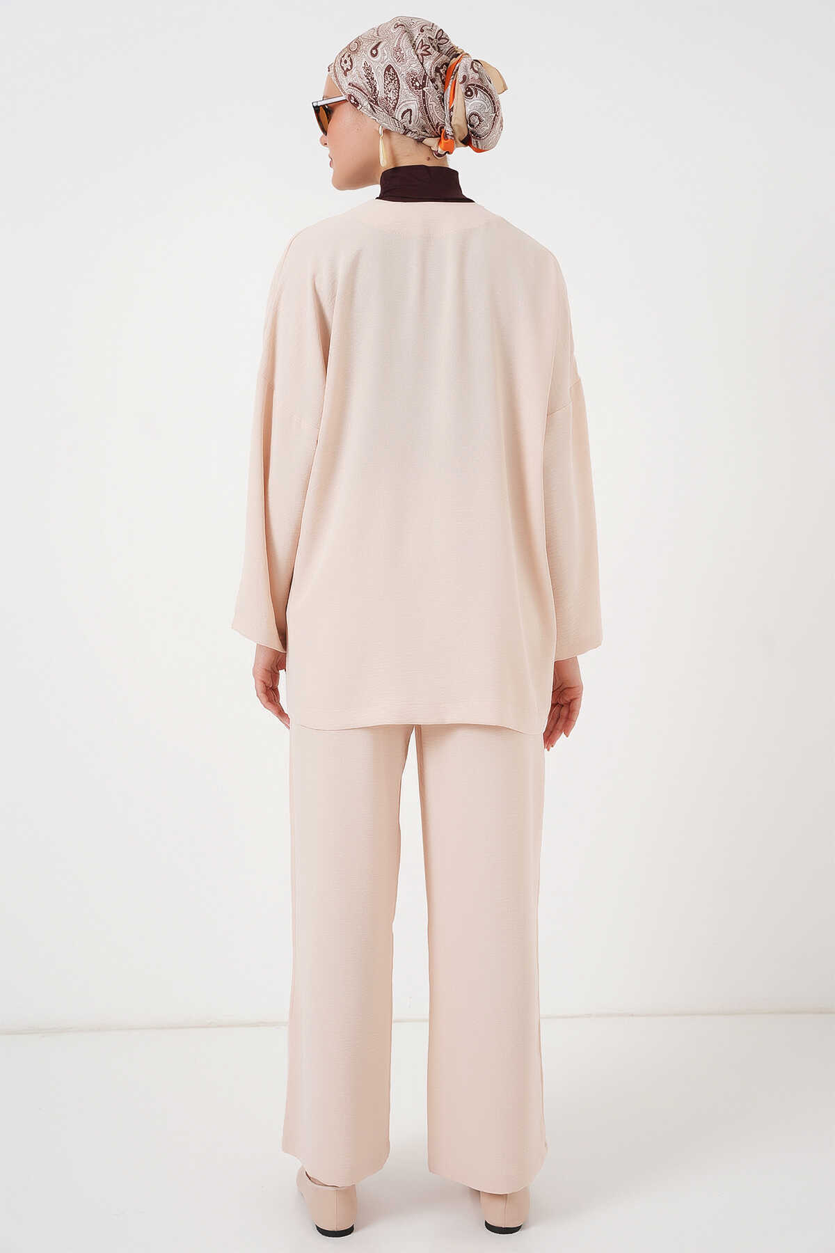 Kadın Ayrobin Kimono Pantolon İkili Takım 6739 - Krem - Kombin