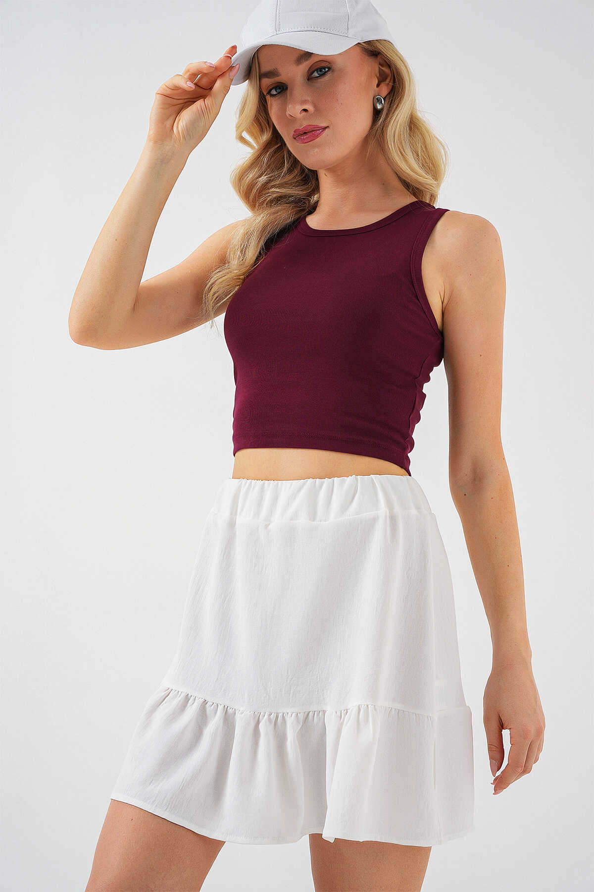 Kadın Ayrobin Mini Etek 8054 - Beyaz