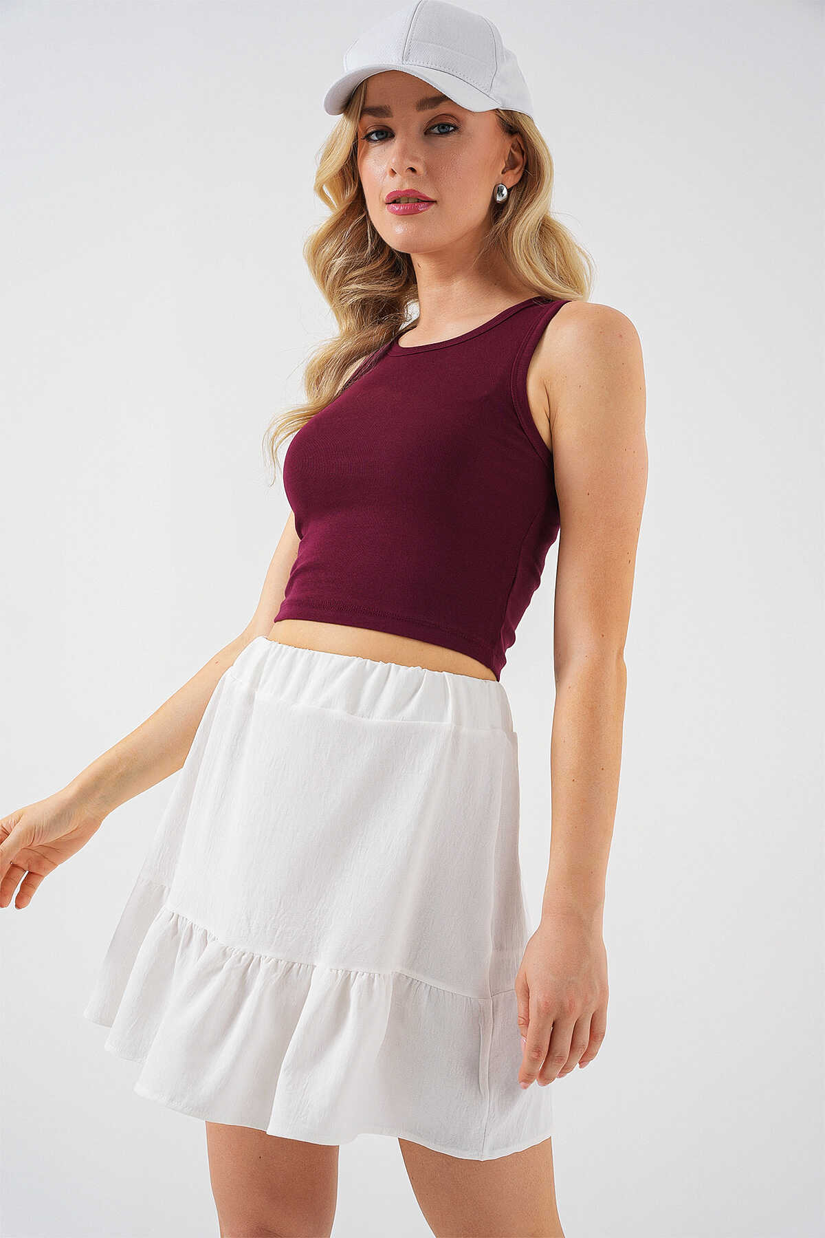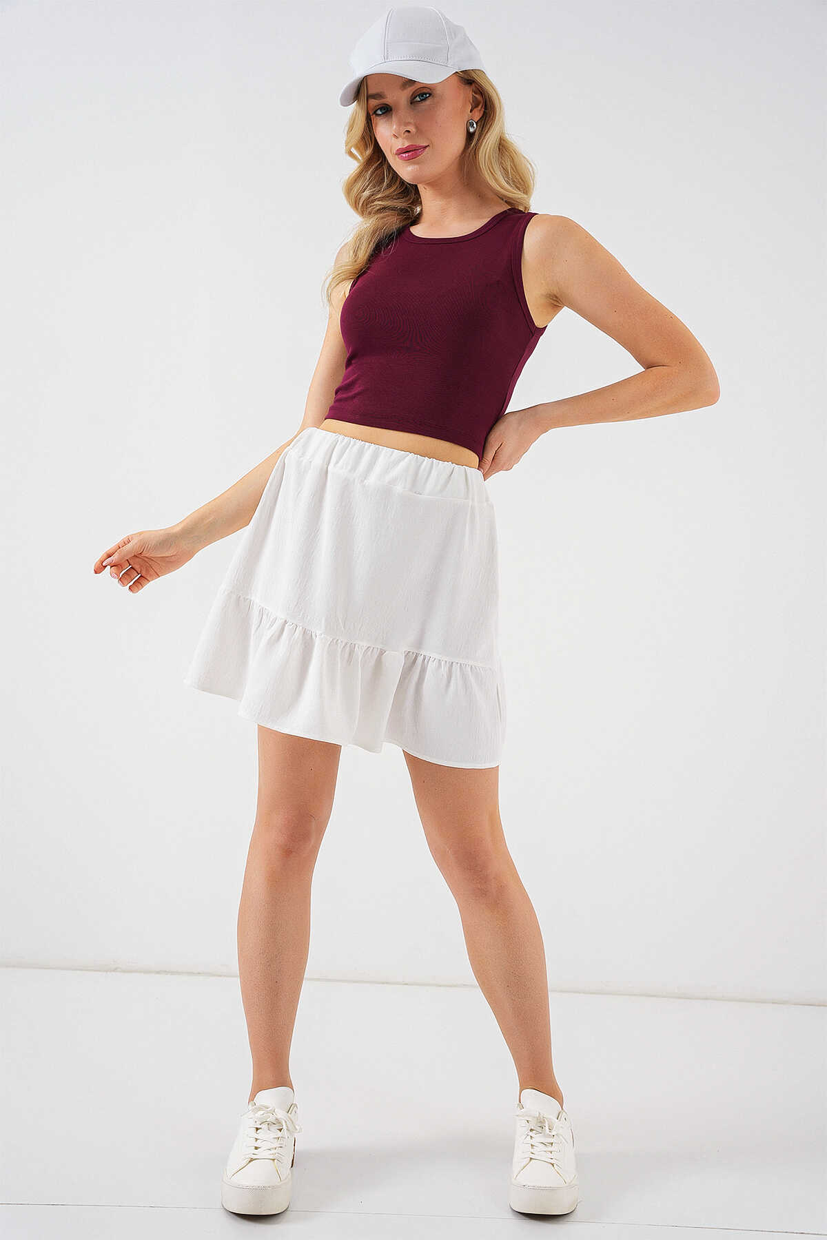 Kadın Ayrobin Mini Etek 8054 - Beyaz - Kombin