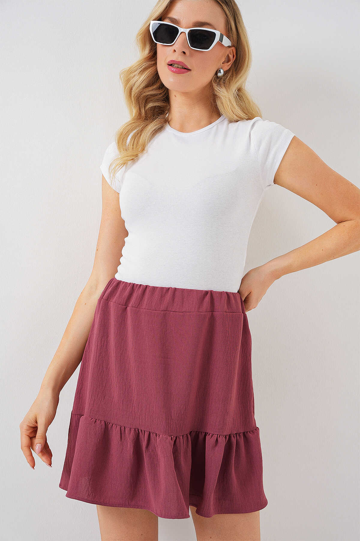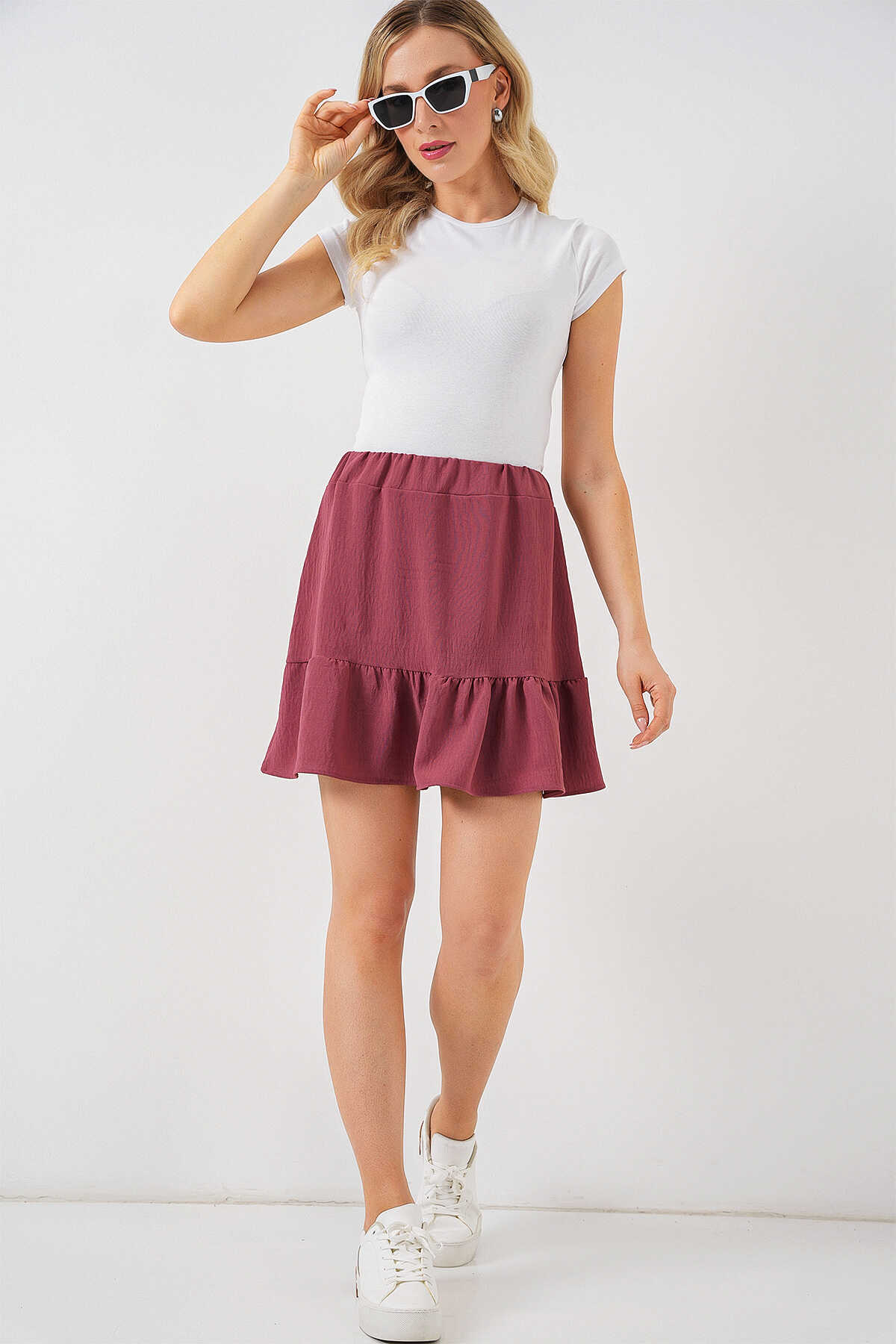 Kadın Ayrobin Mini Etek 8054 - Gül Kurusu - Kombin