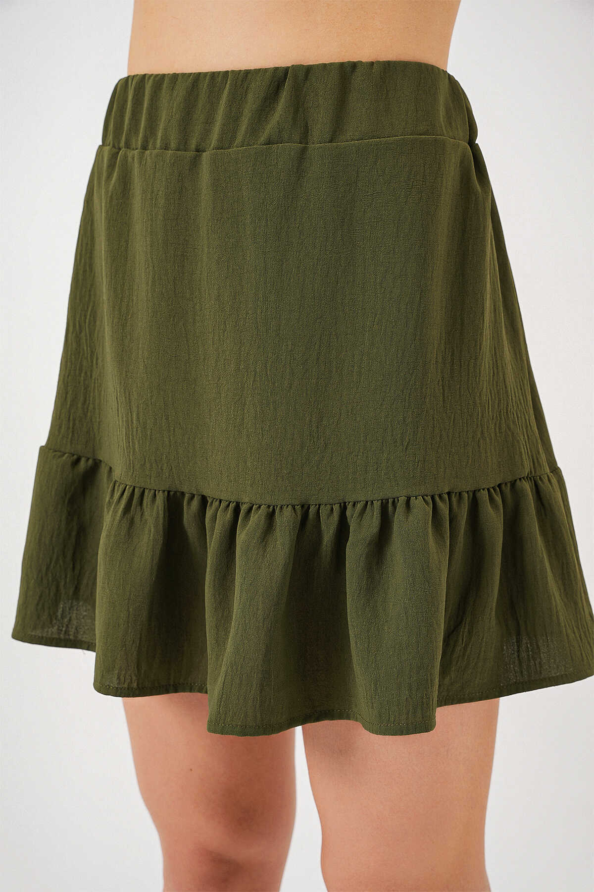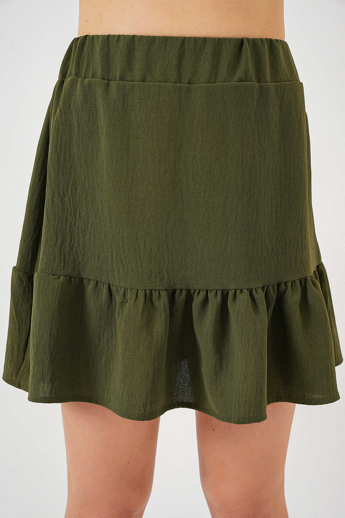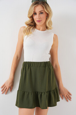 Kadın Ayrobin Mini Etek 8054 - Haki - Kombin