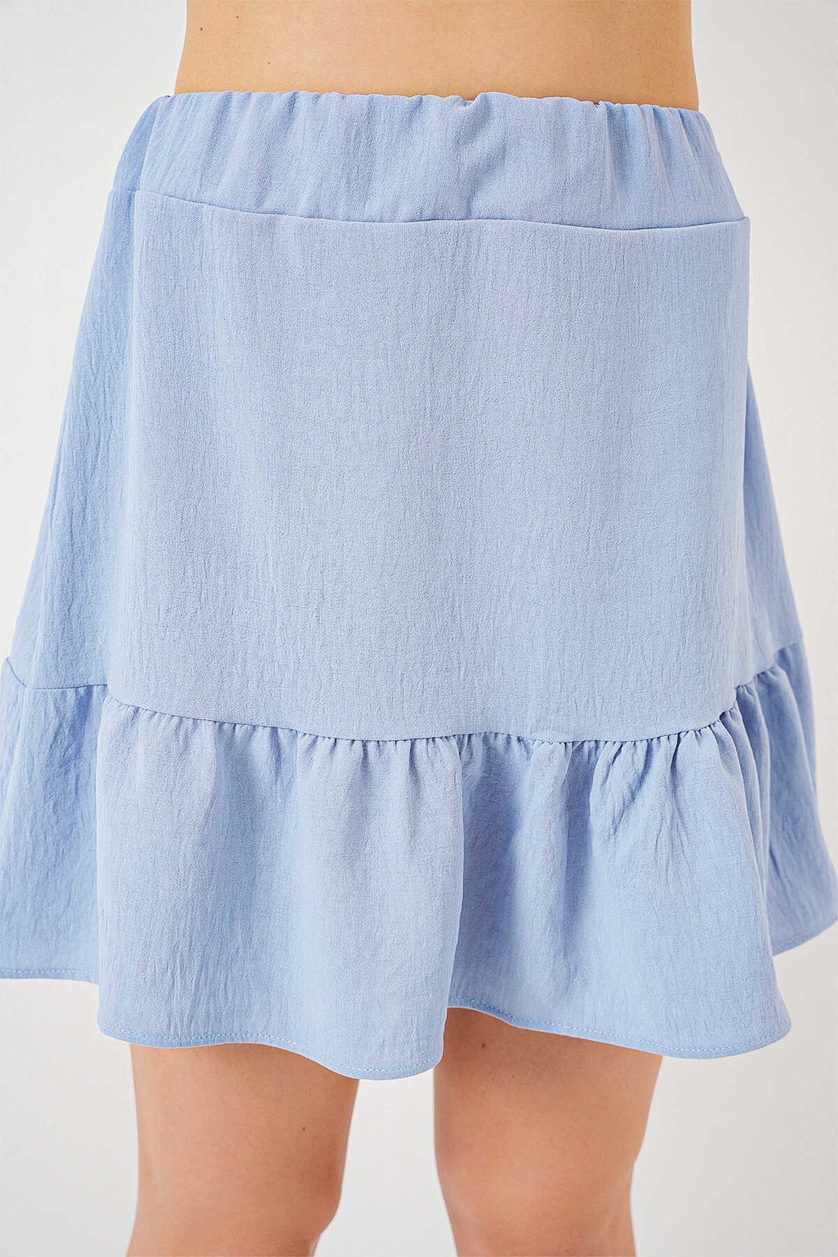 Kadın Ayrobin Mini Etek 8054 - Mavi - Kombin
