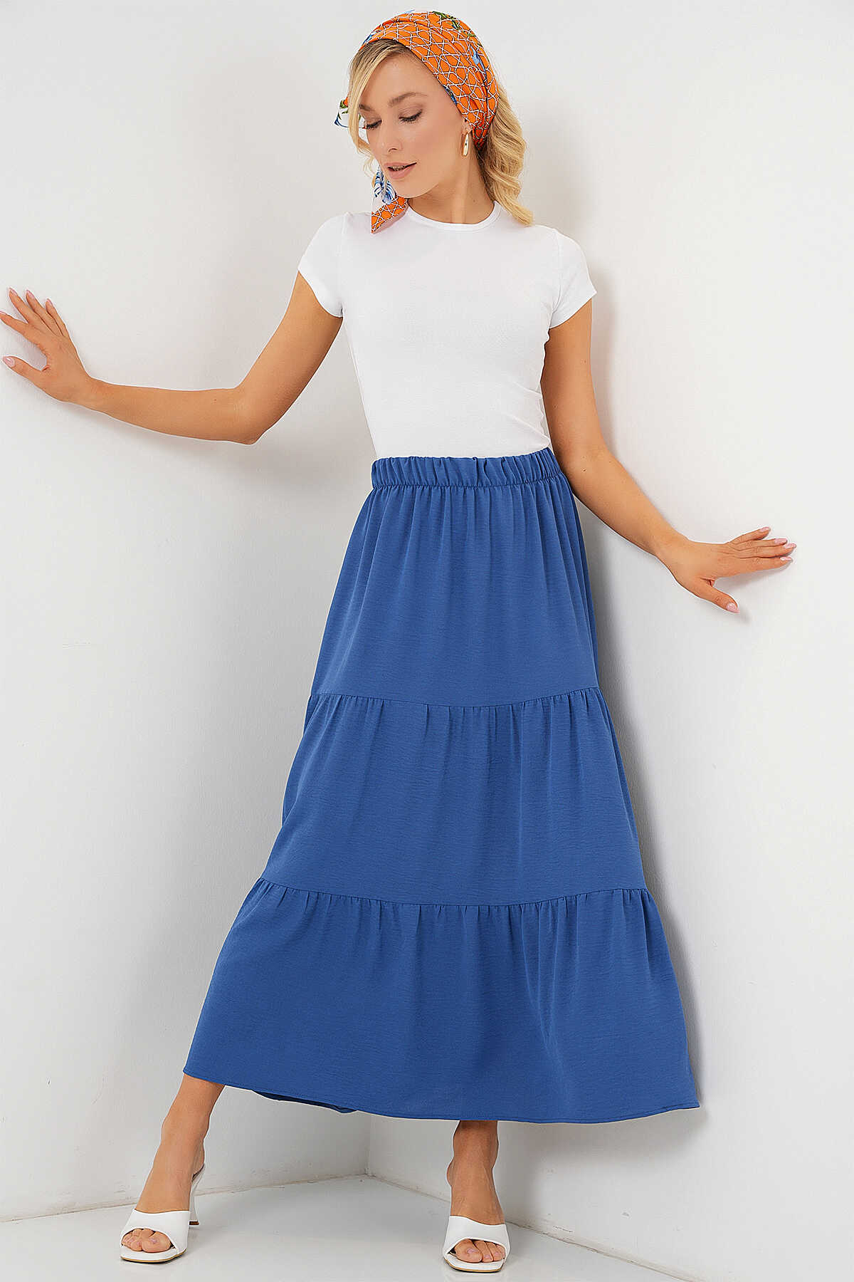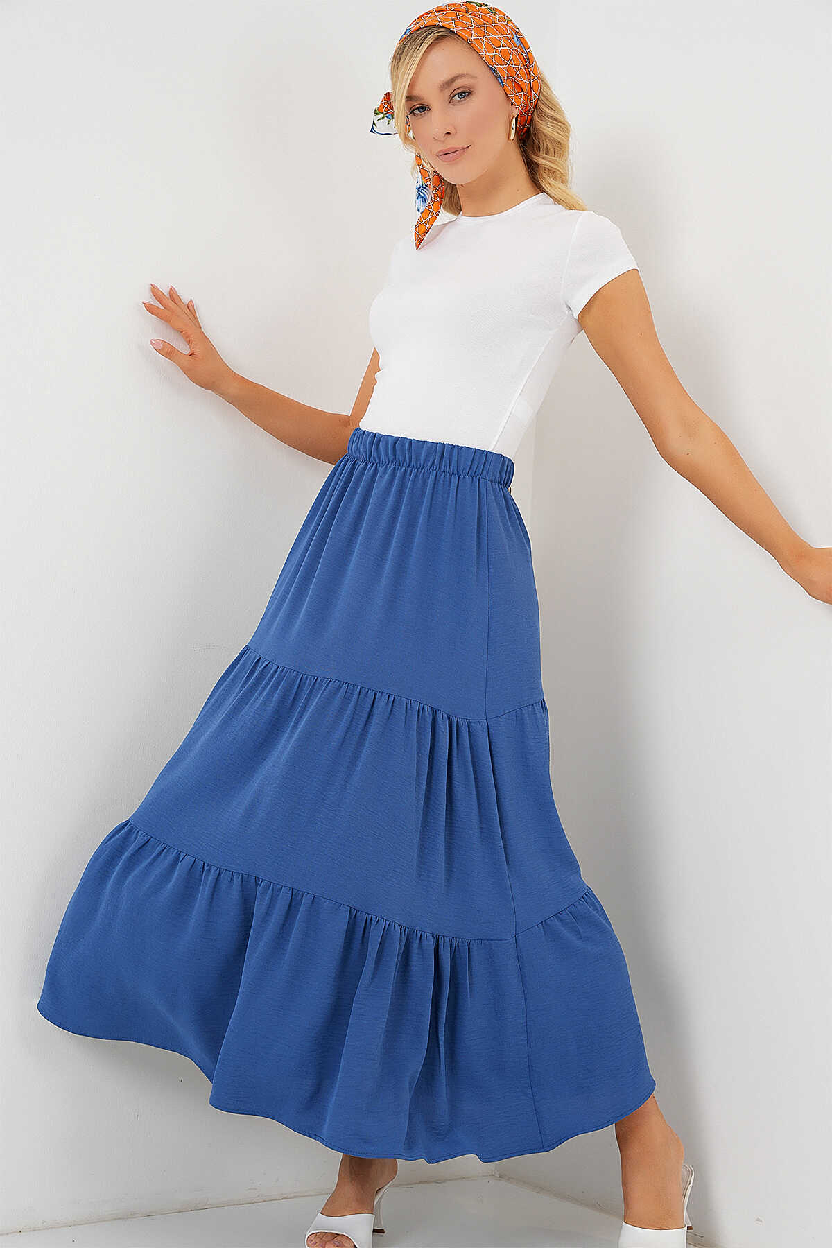 Kadın Ayrobin Uzun Etek 8048 - İndigo - Kombin