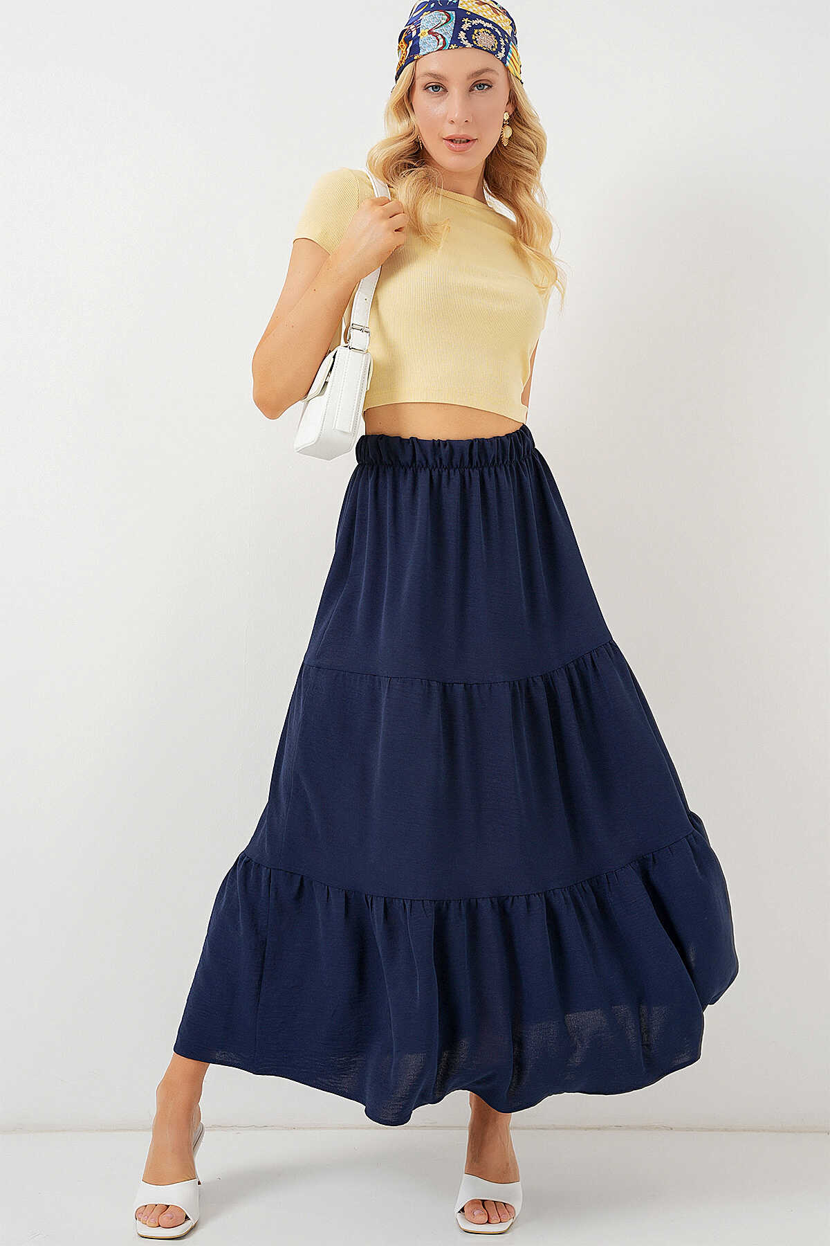 Kadın Ayrobin Uzun Etek 8048 - Lacivert - Kombin