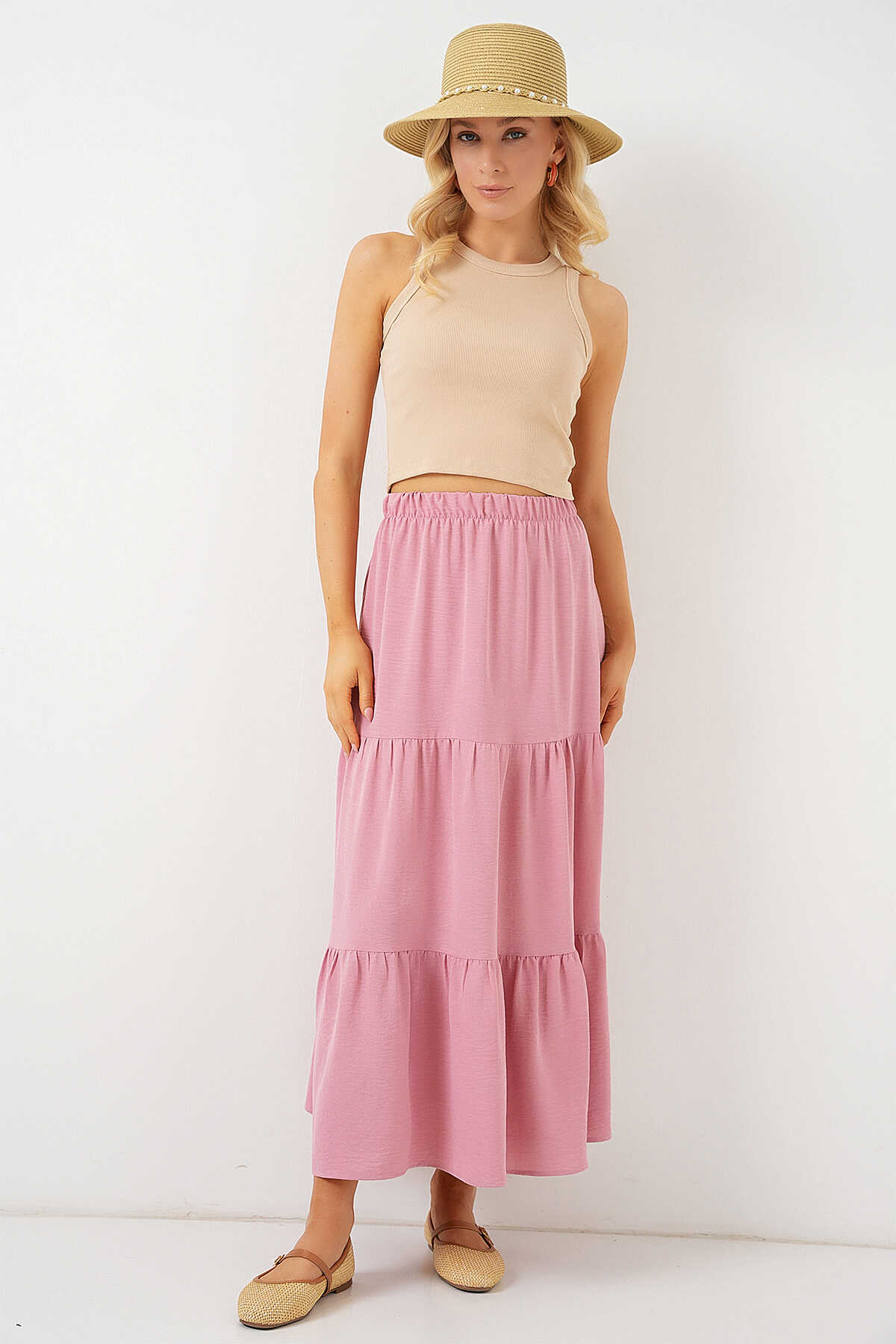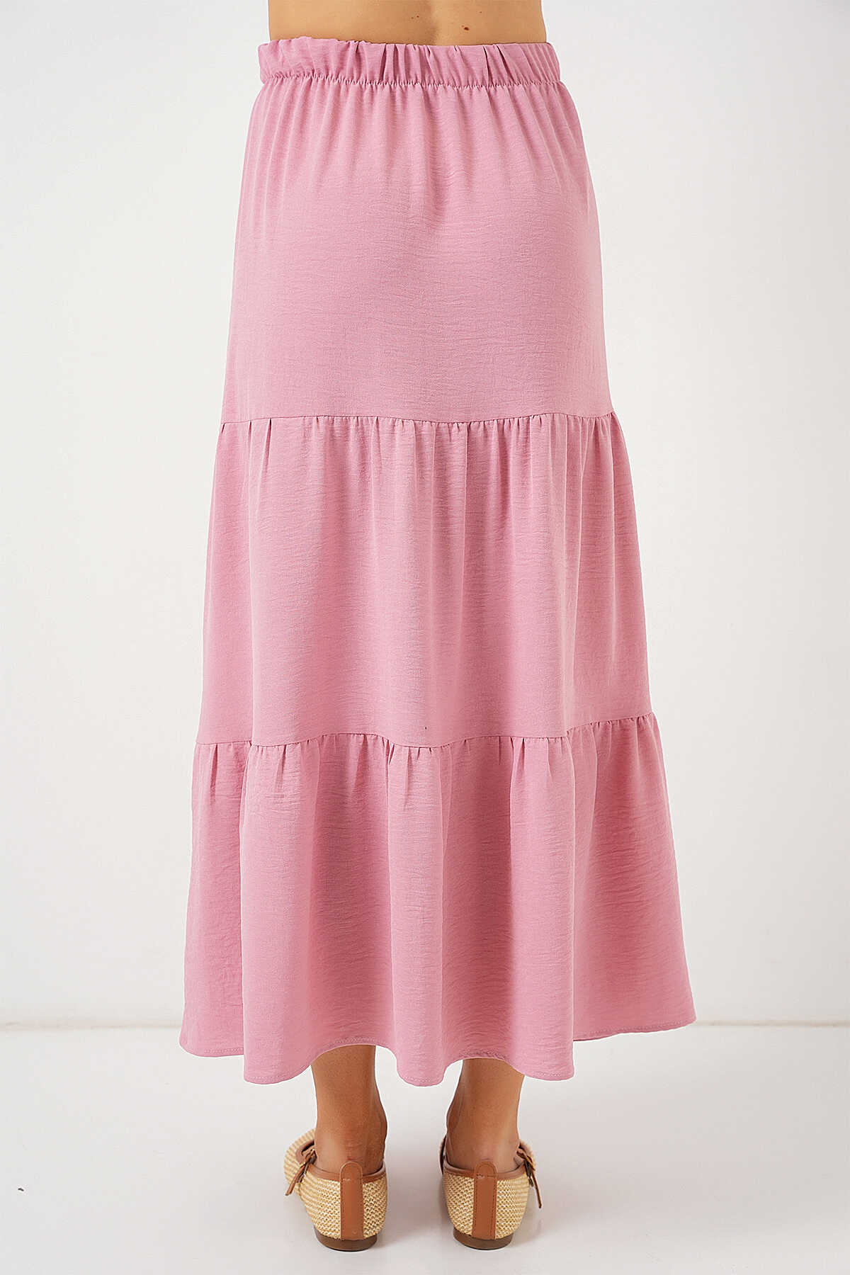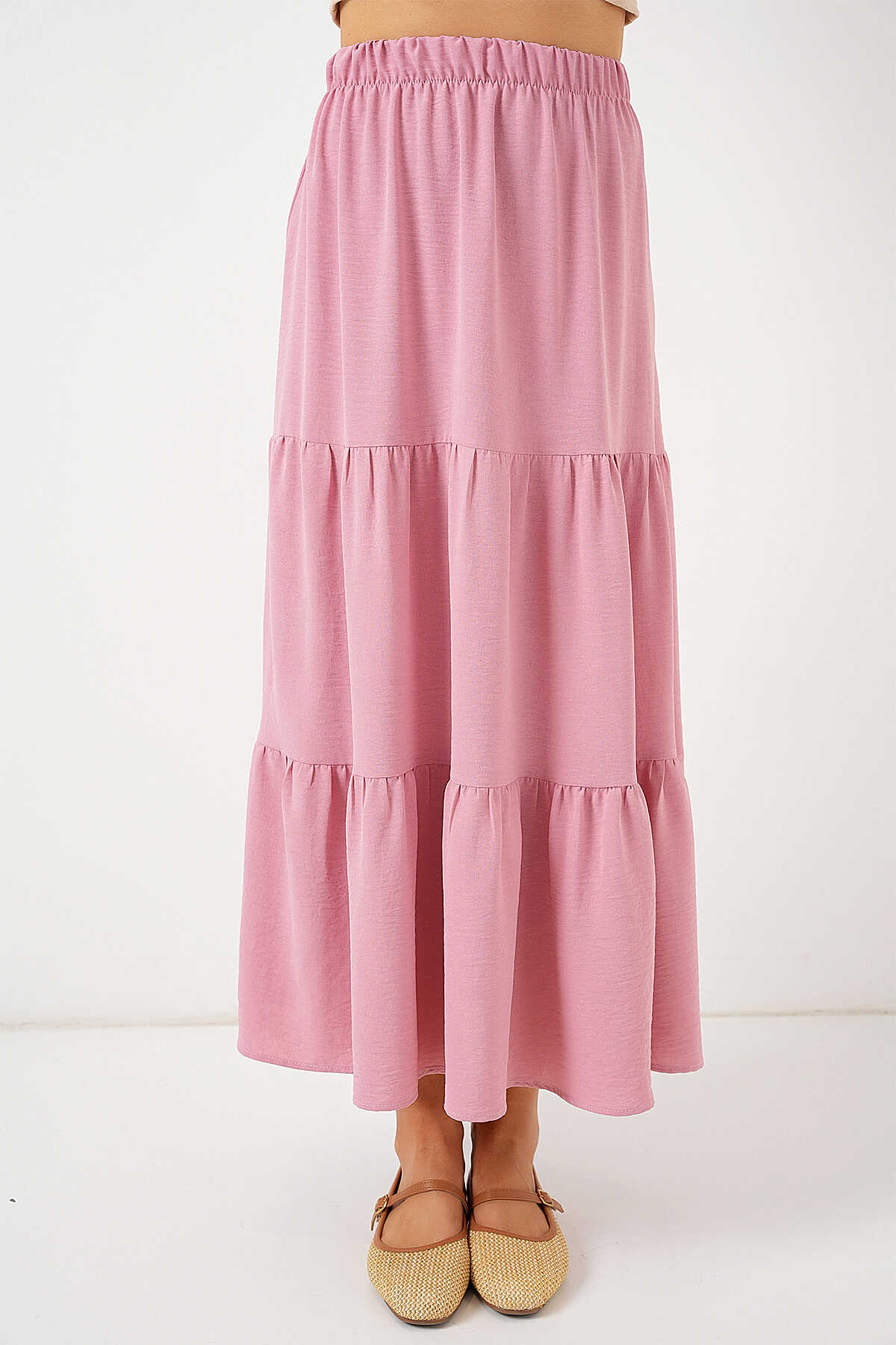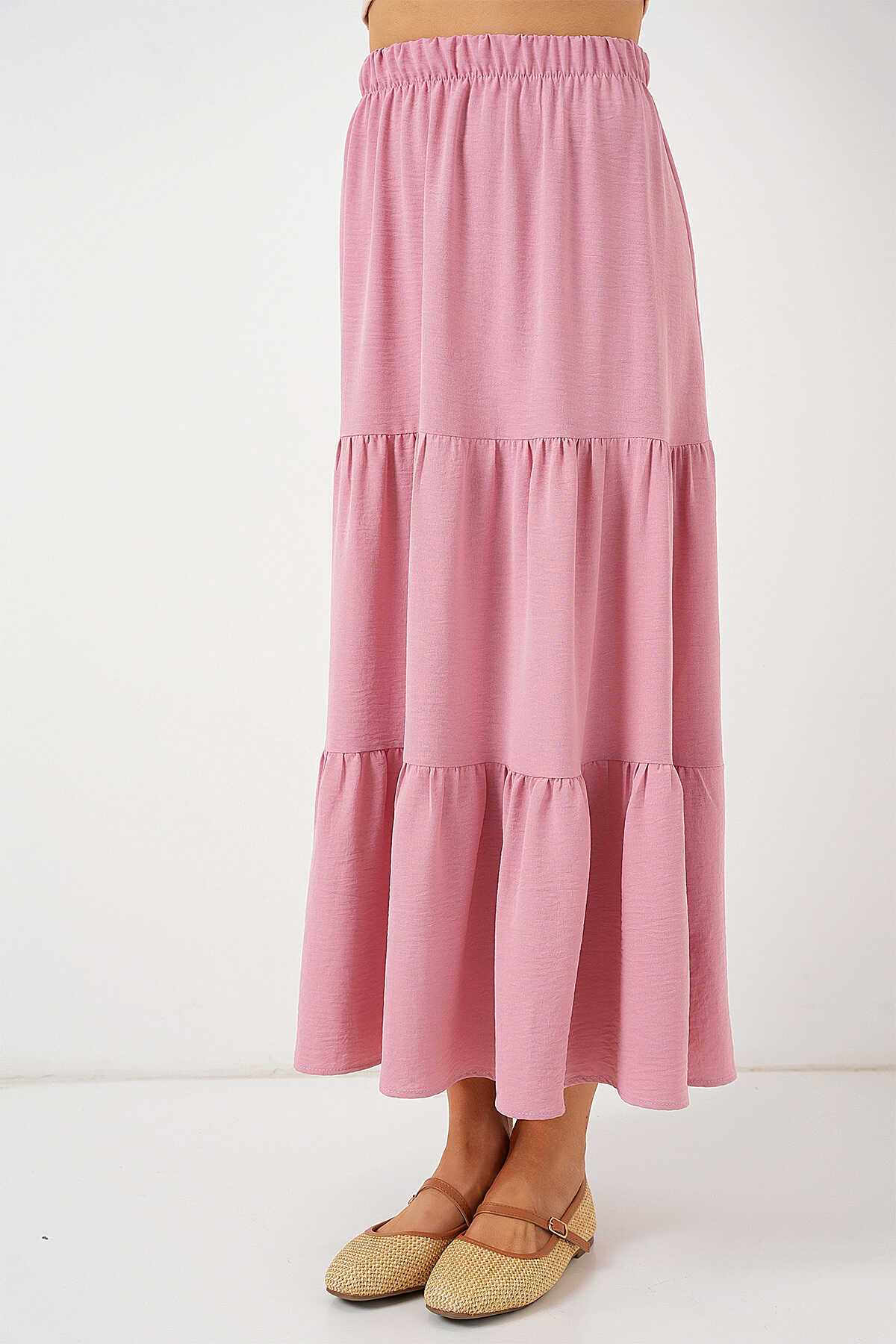 Kadın Ayrobin Uzun Etek 8048 - Pudra - Kombin