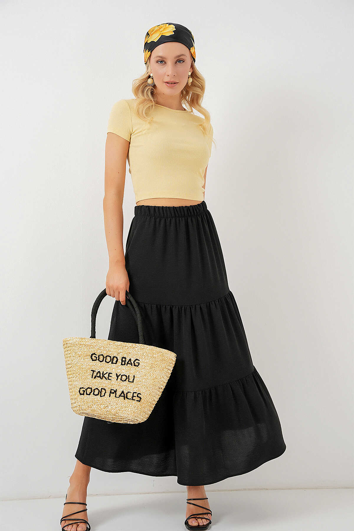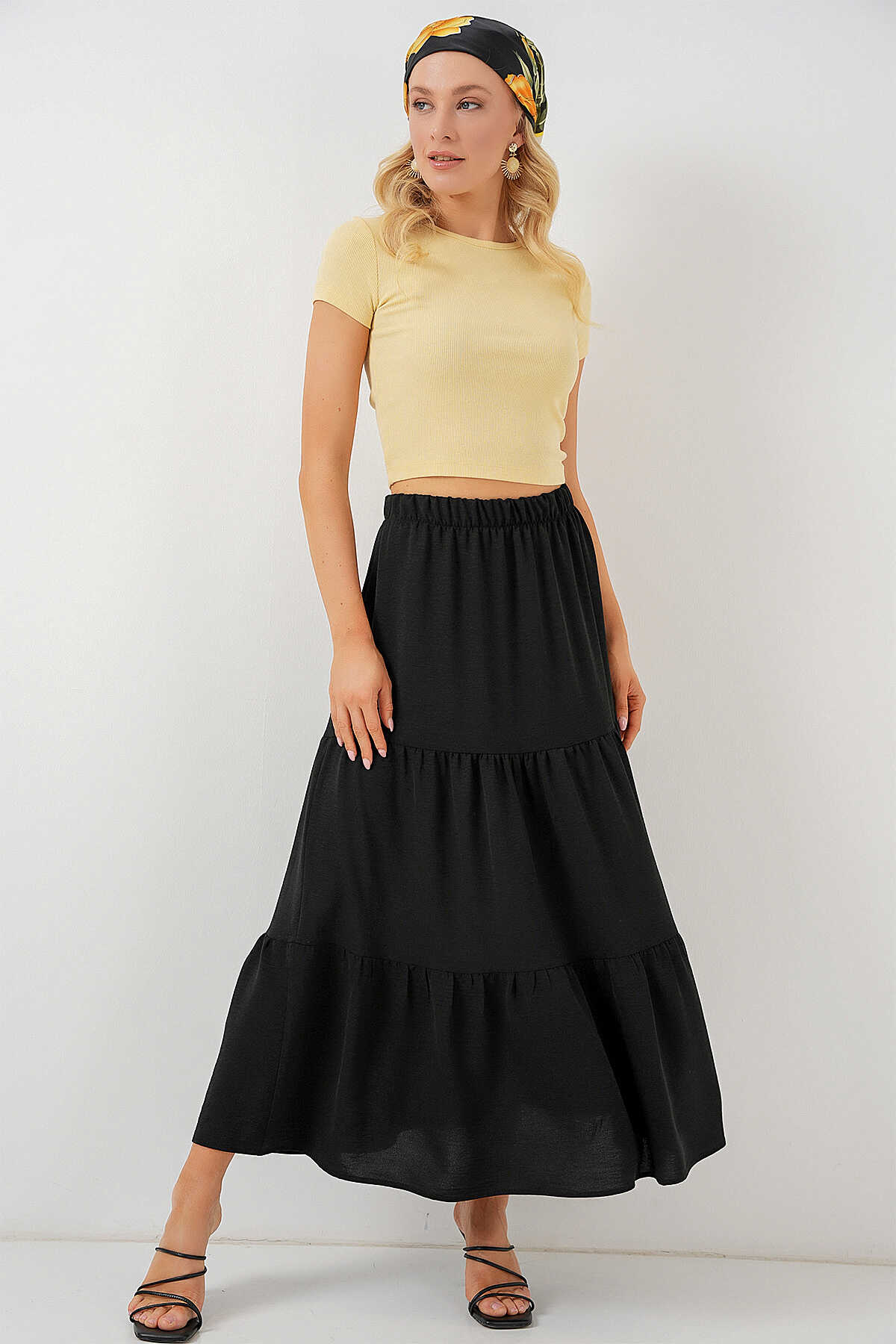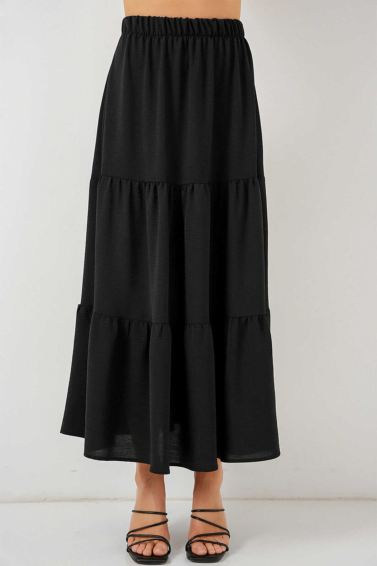 Kadın Ayrobin Uzun Etek 8048 - Siyah - Kombin