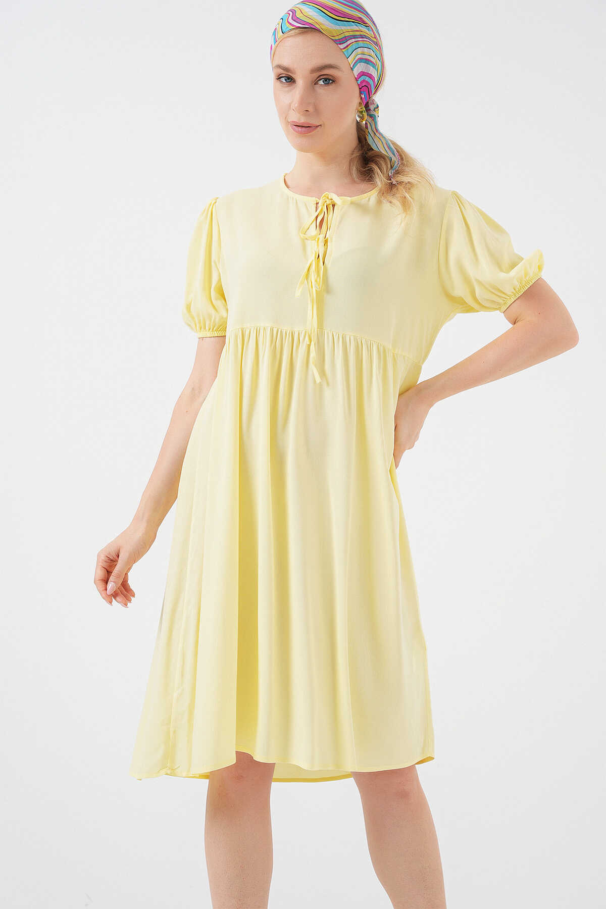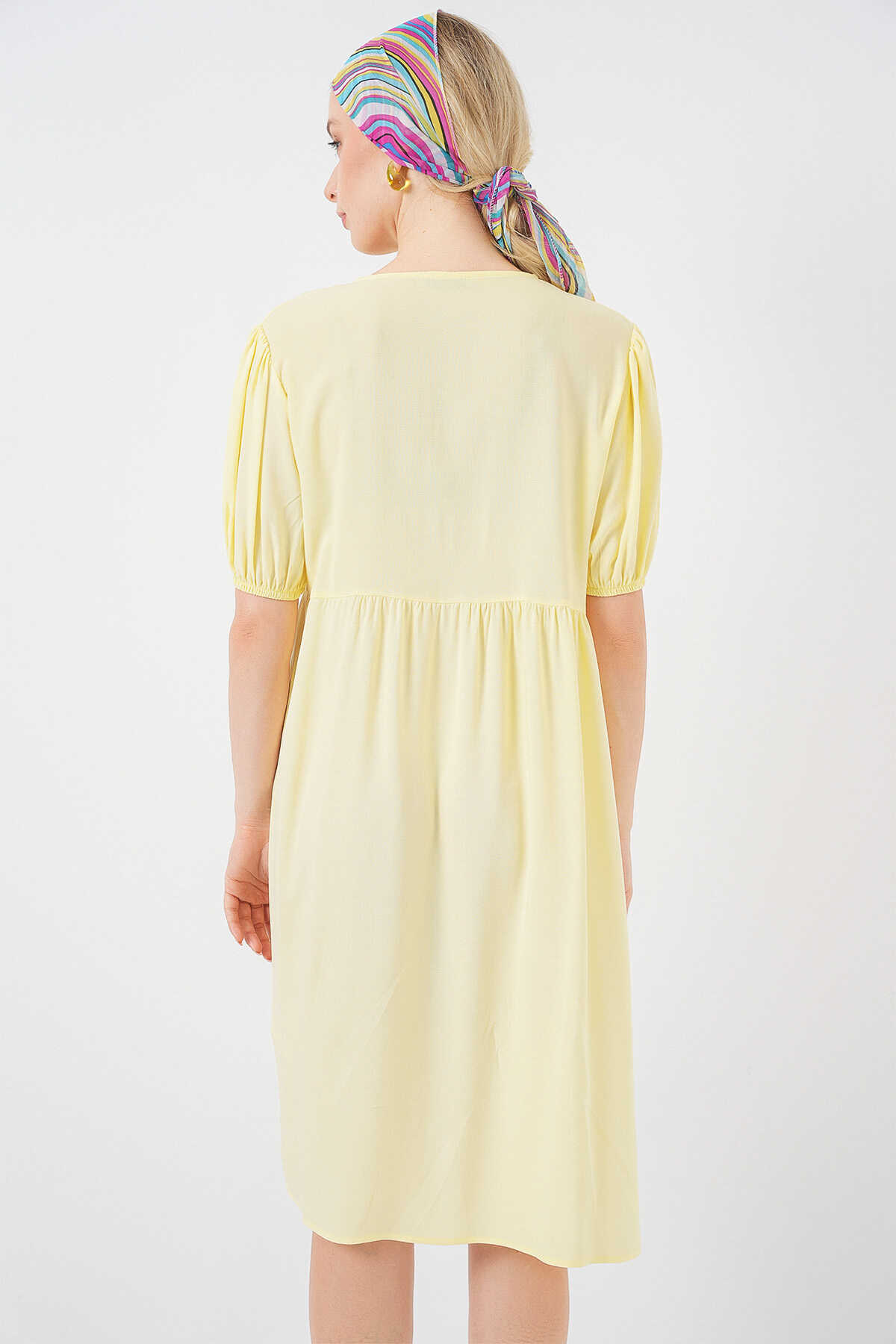 Kadın Bağcıklı Midi Elbise 2575 - Sarı