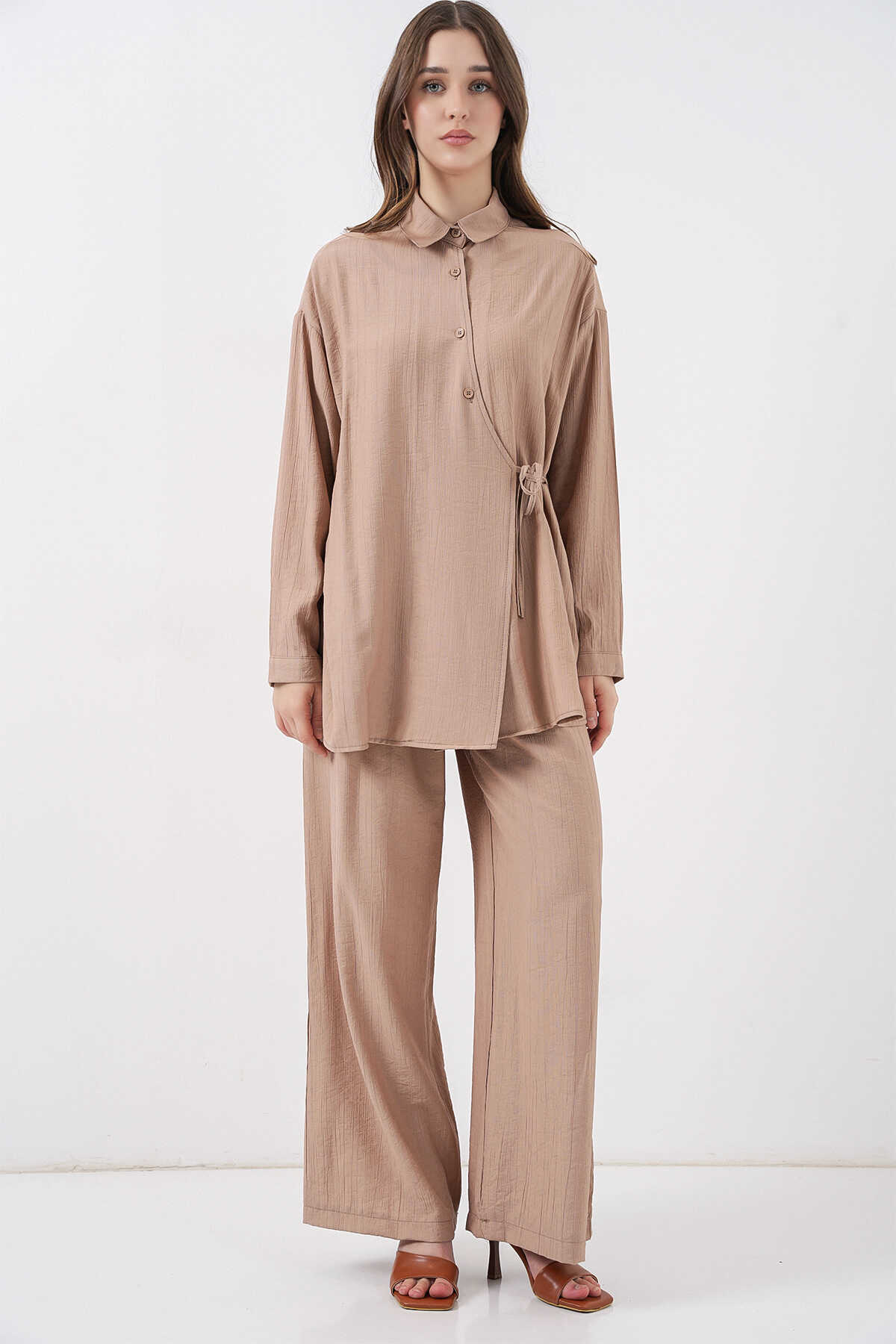 Kadın Bağcıklı Tunik Pantolon İkili Takım 6752 - Bej - Kombin
