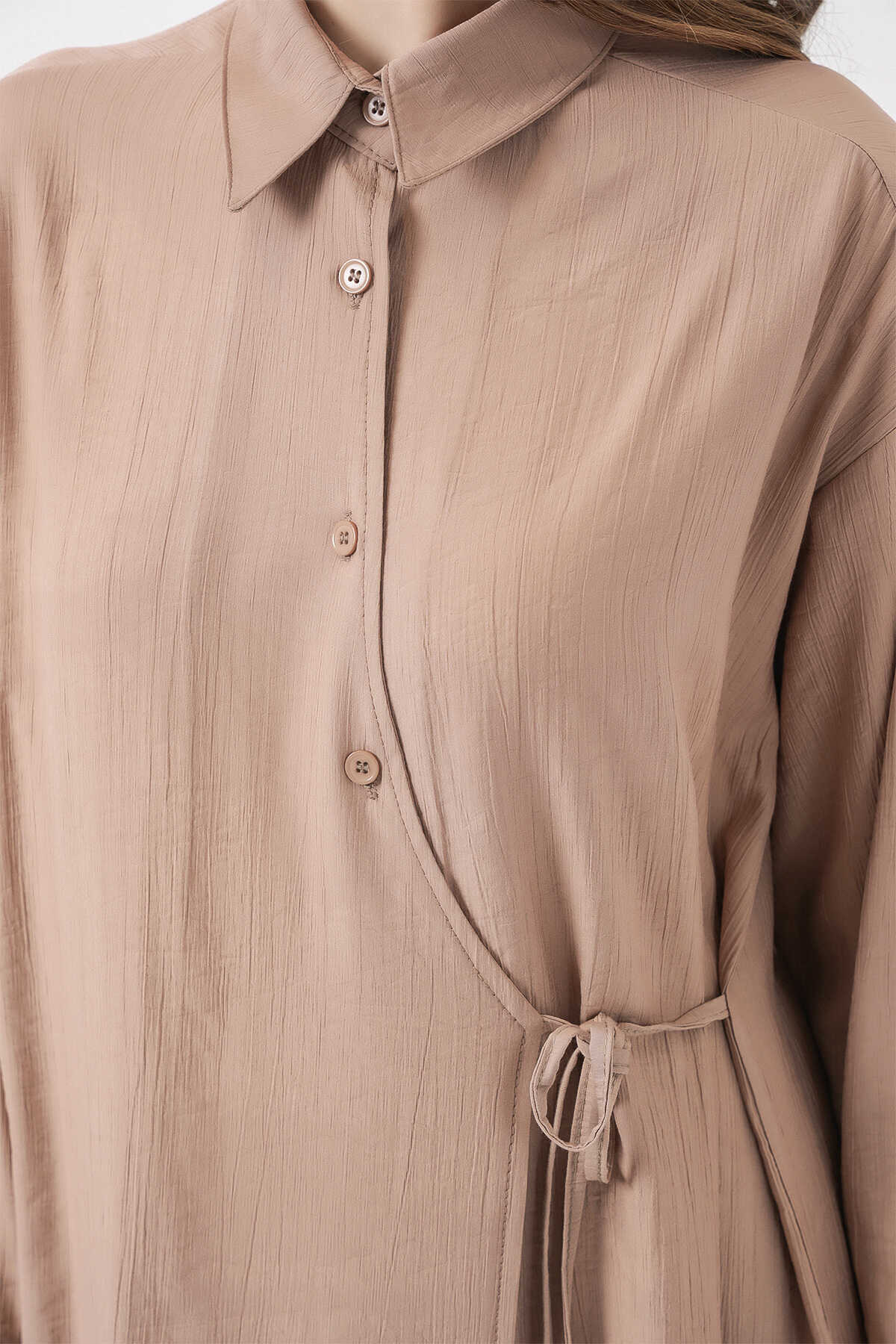 Kadın Bağcıklı Tunik Pantolon İkili Takım 6752 - Bej