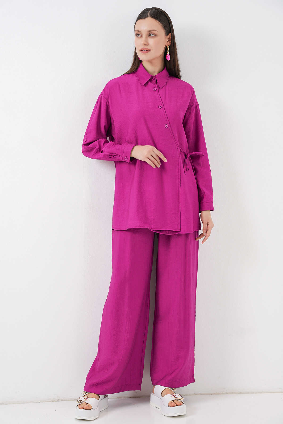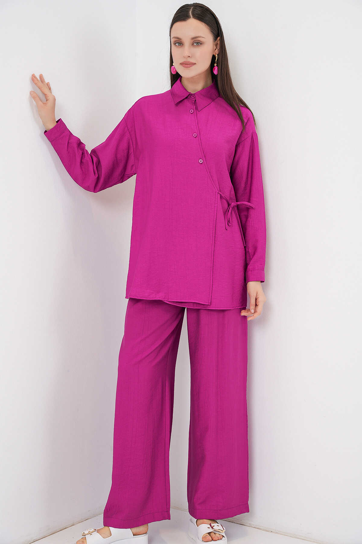 Kadın Bağcıklı Tunik Pantolon İkili Takım 6752 - Fuşya - Kombin