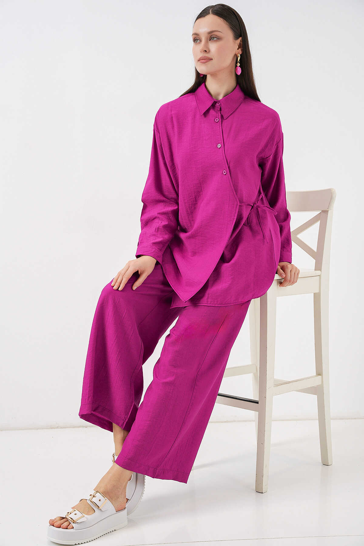 Kadın Bağcıklı Tunik Pantolon İkili Takım 6752 - Fuşya