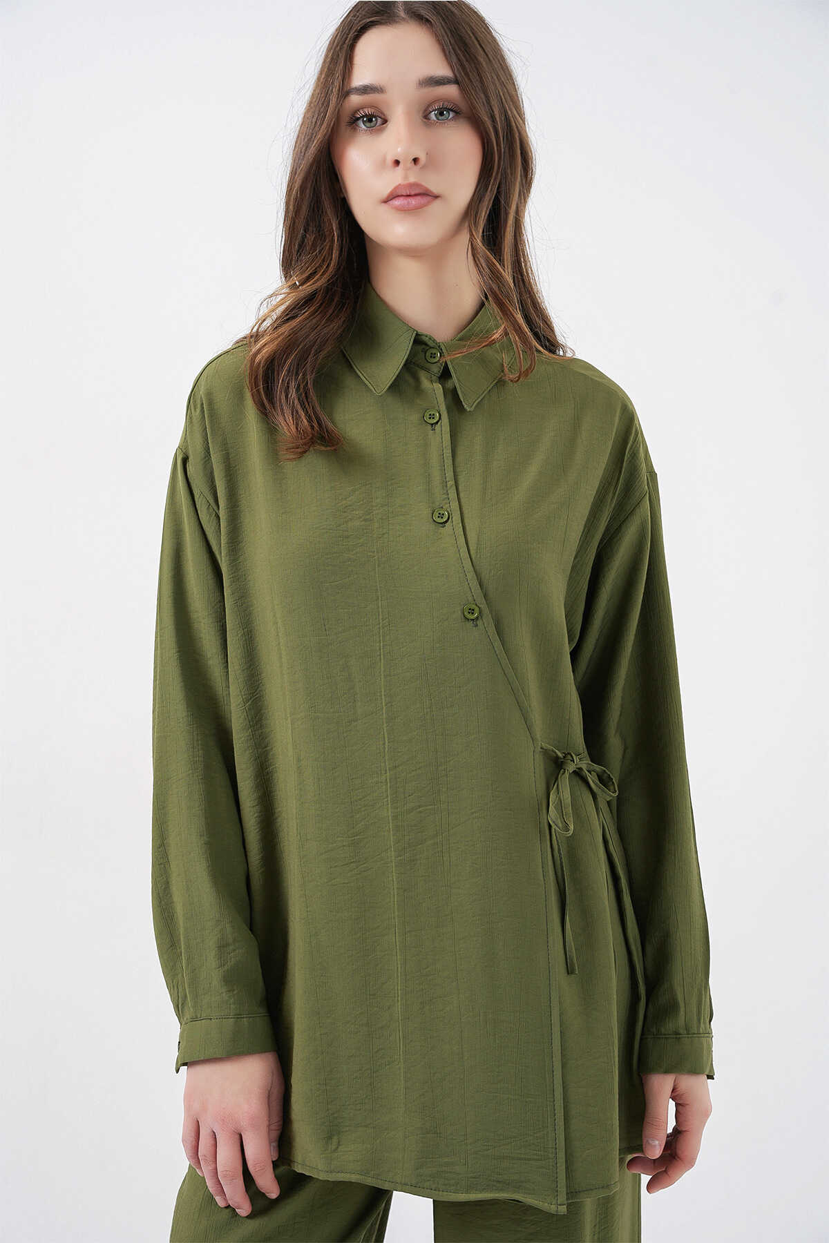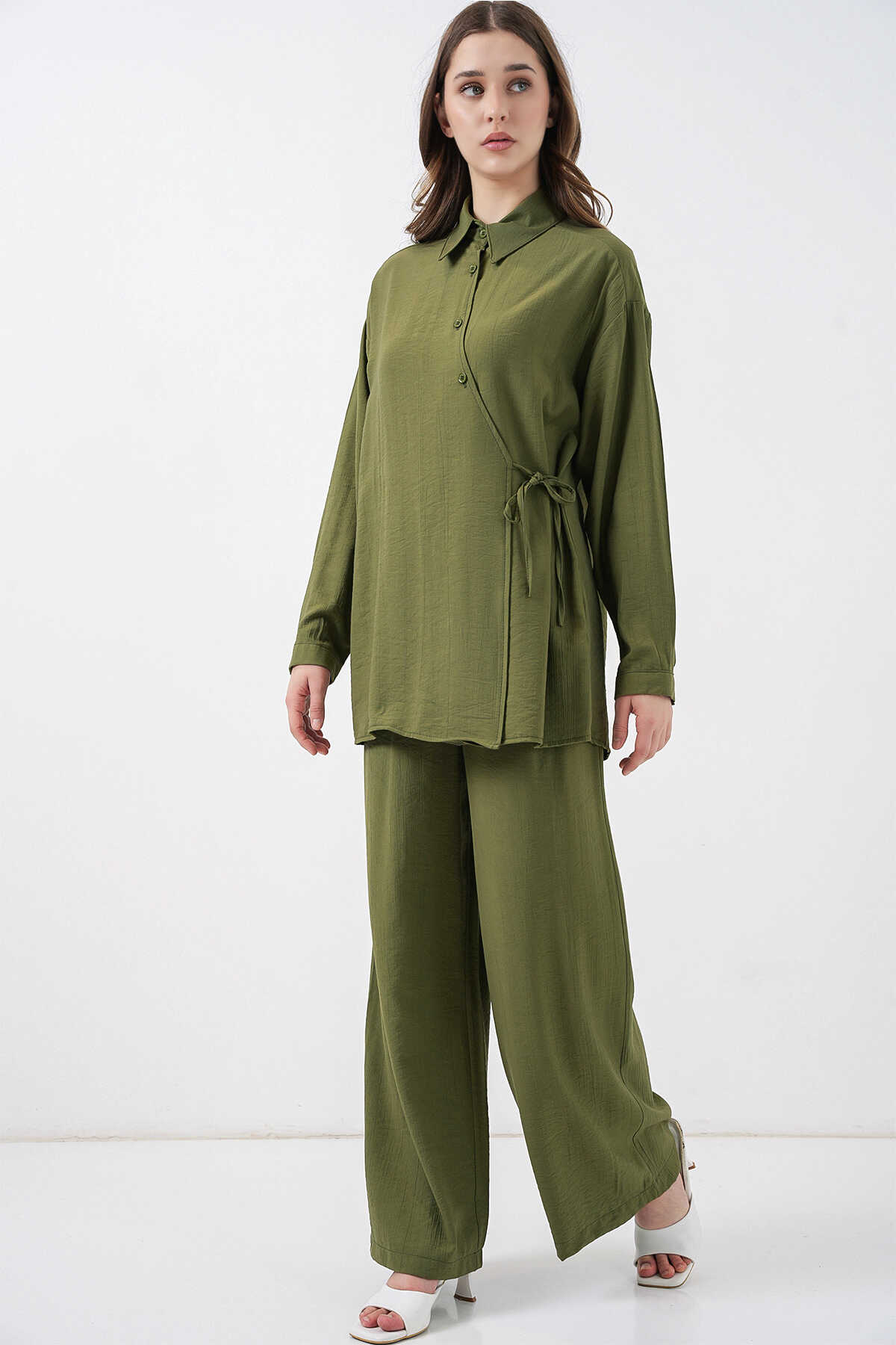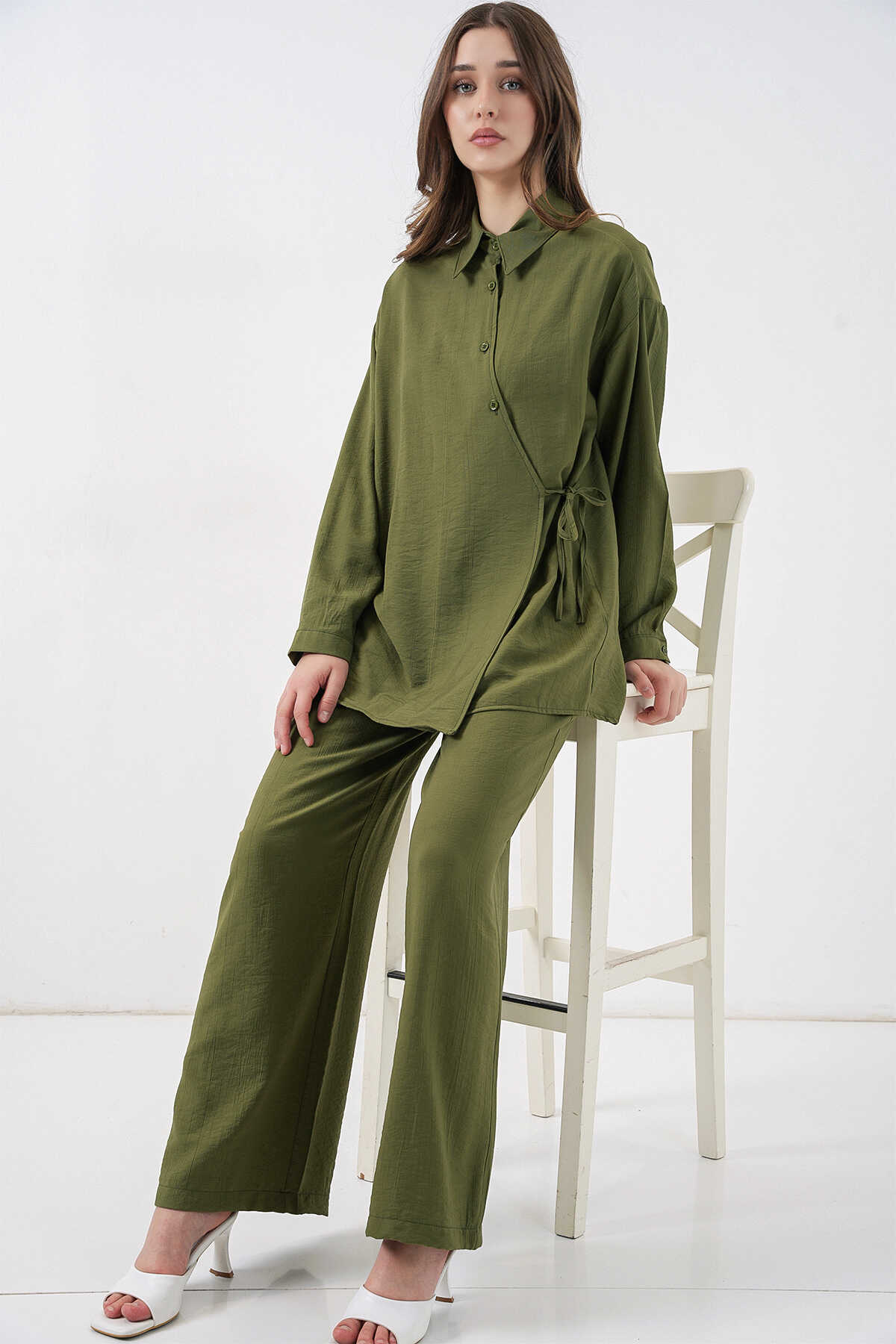 Kadın Bağcıklı Tunik Pantolon İkili Takım 6752 - Haki