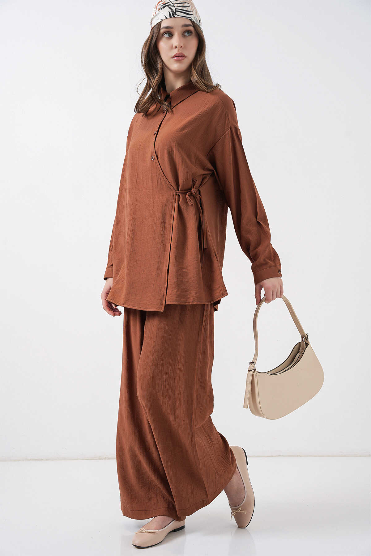 Kadın Bağcıklı Tunik Pantolon İkili Takım 6752 - Taba
