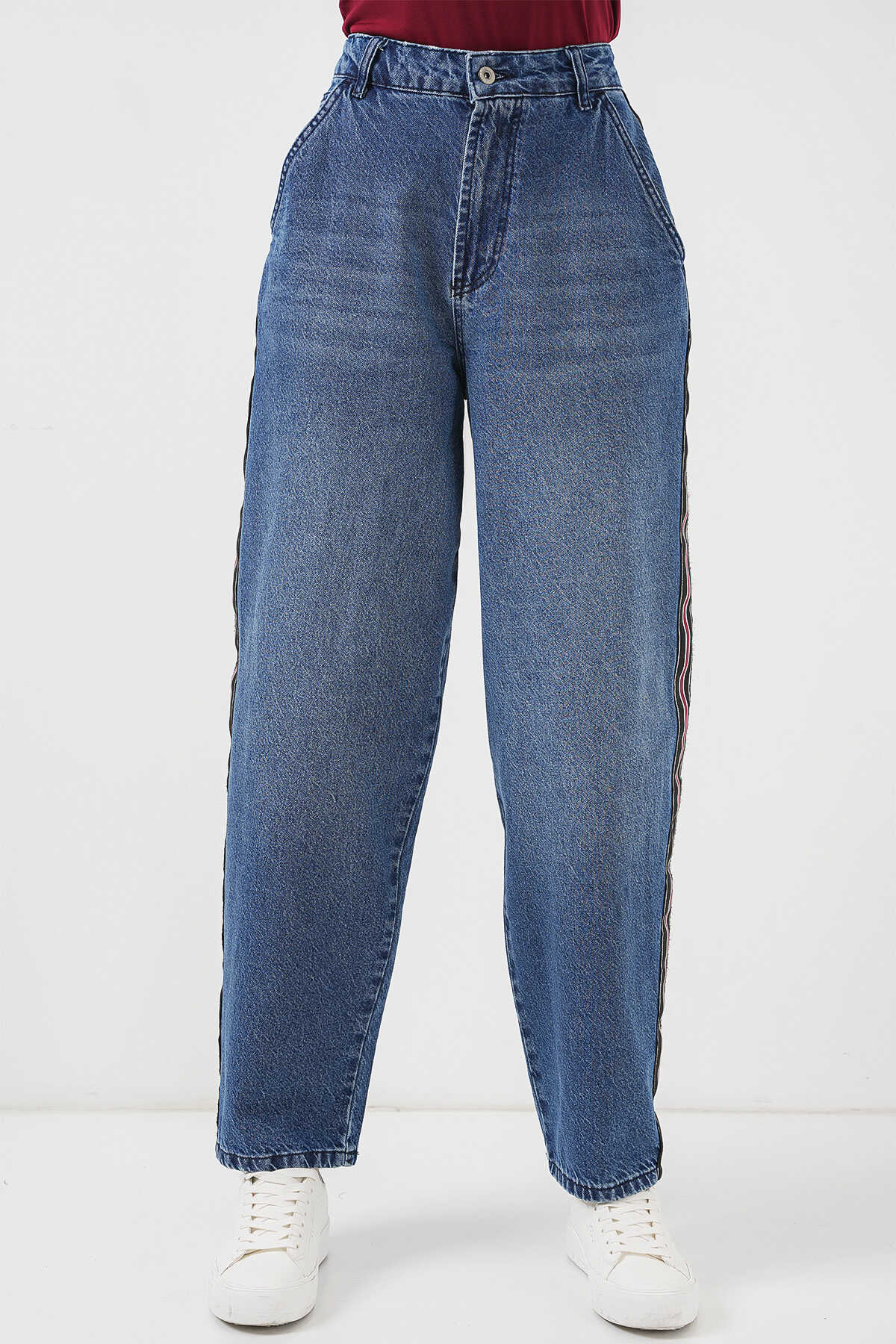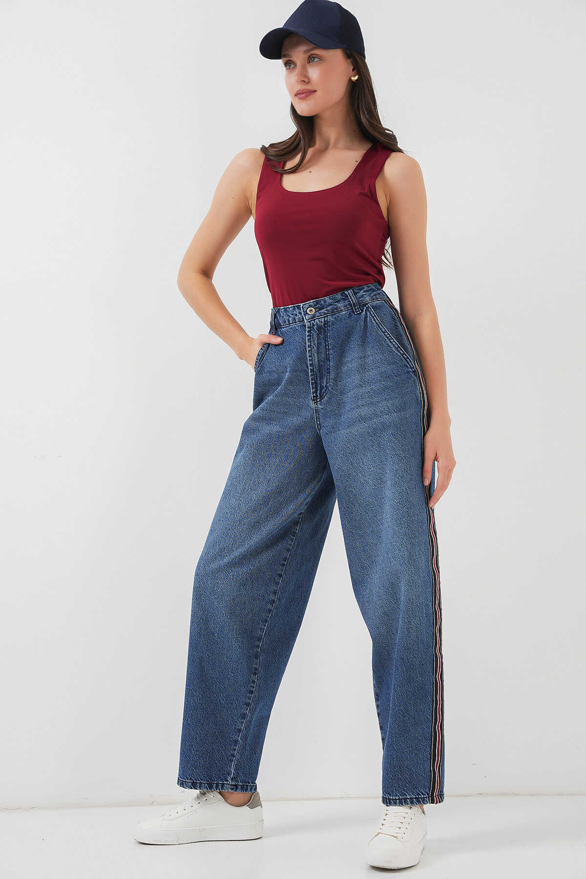 Kadın Baggy Kot Pantolon 6700 - Lacivert