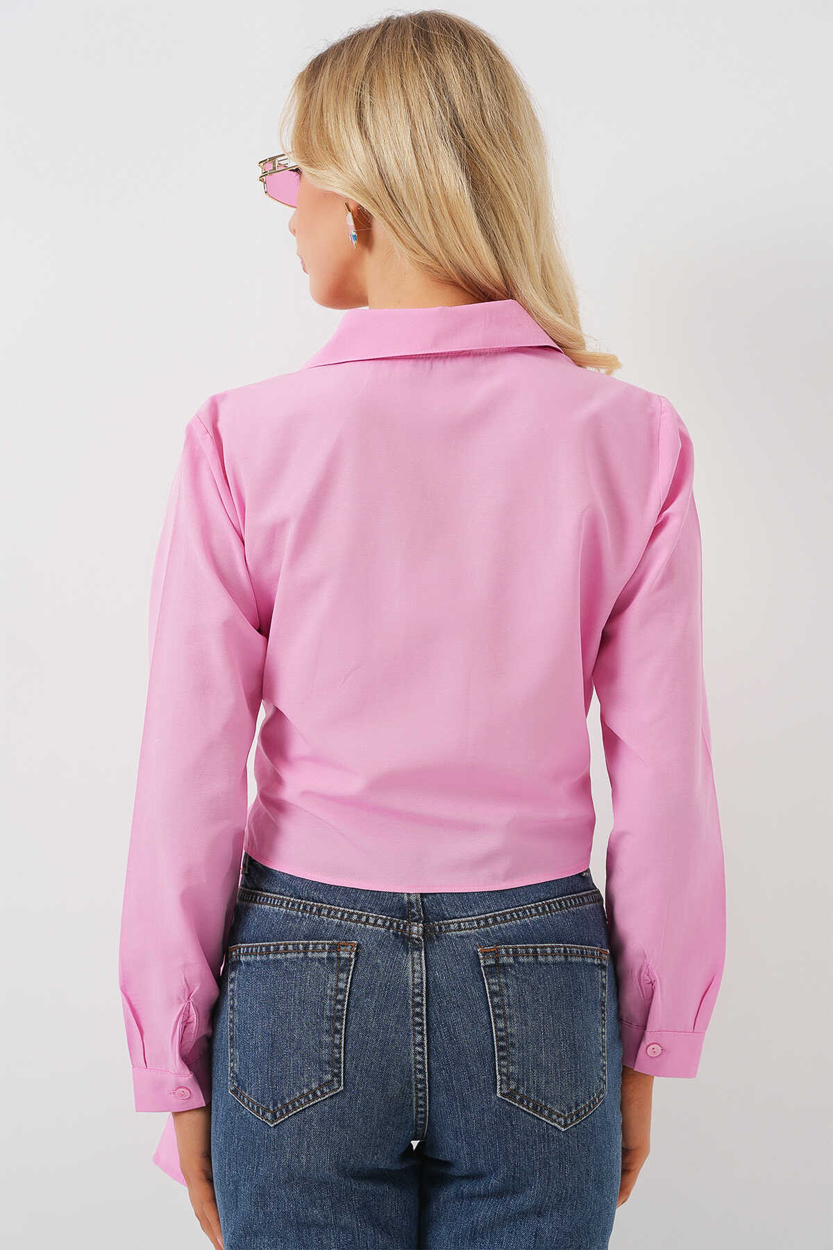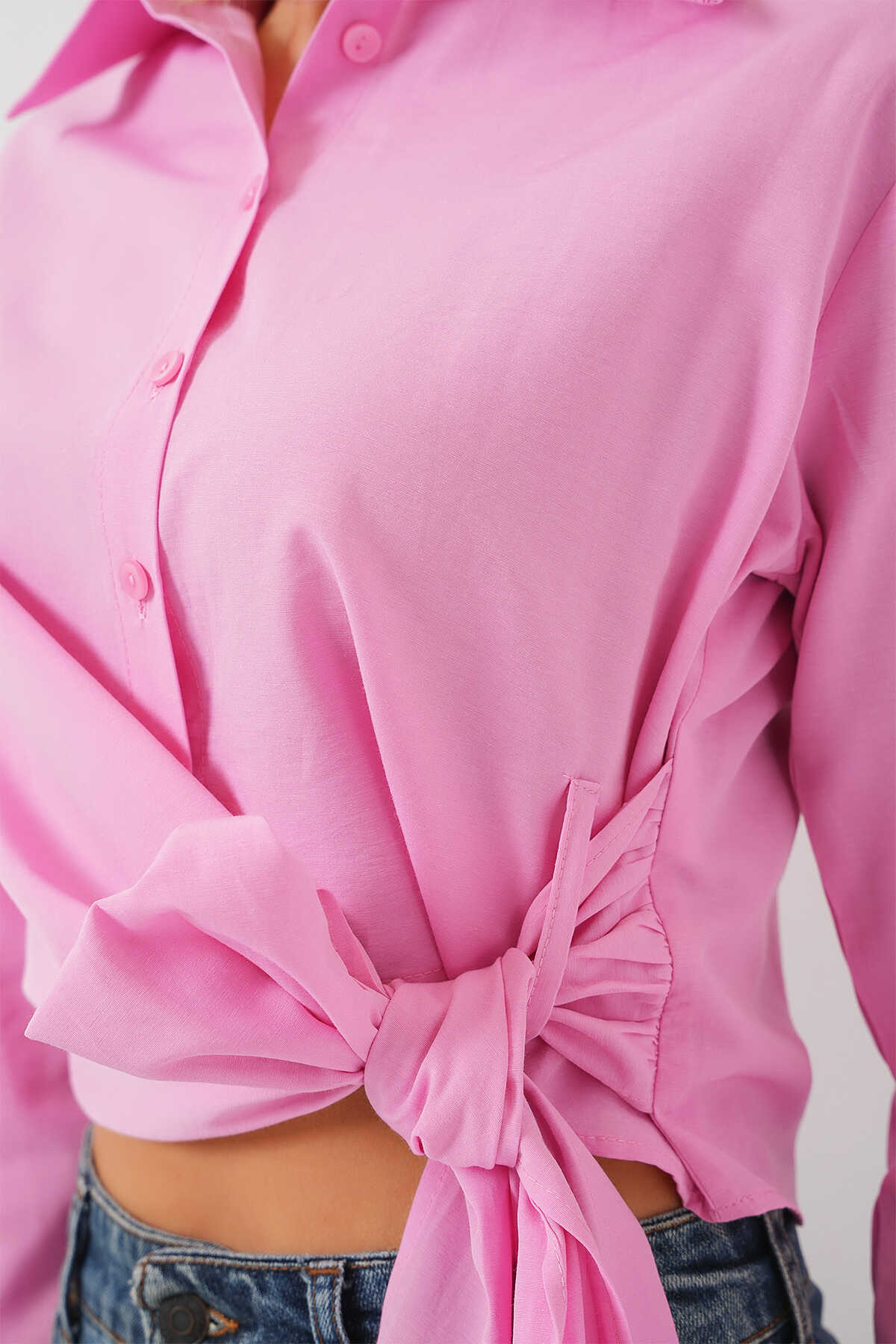 Kadın Bağlamalı Uzun Kol Gömlek 20325 - Pembe