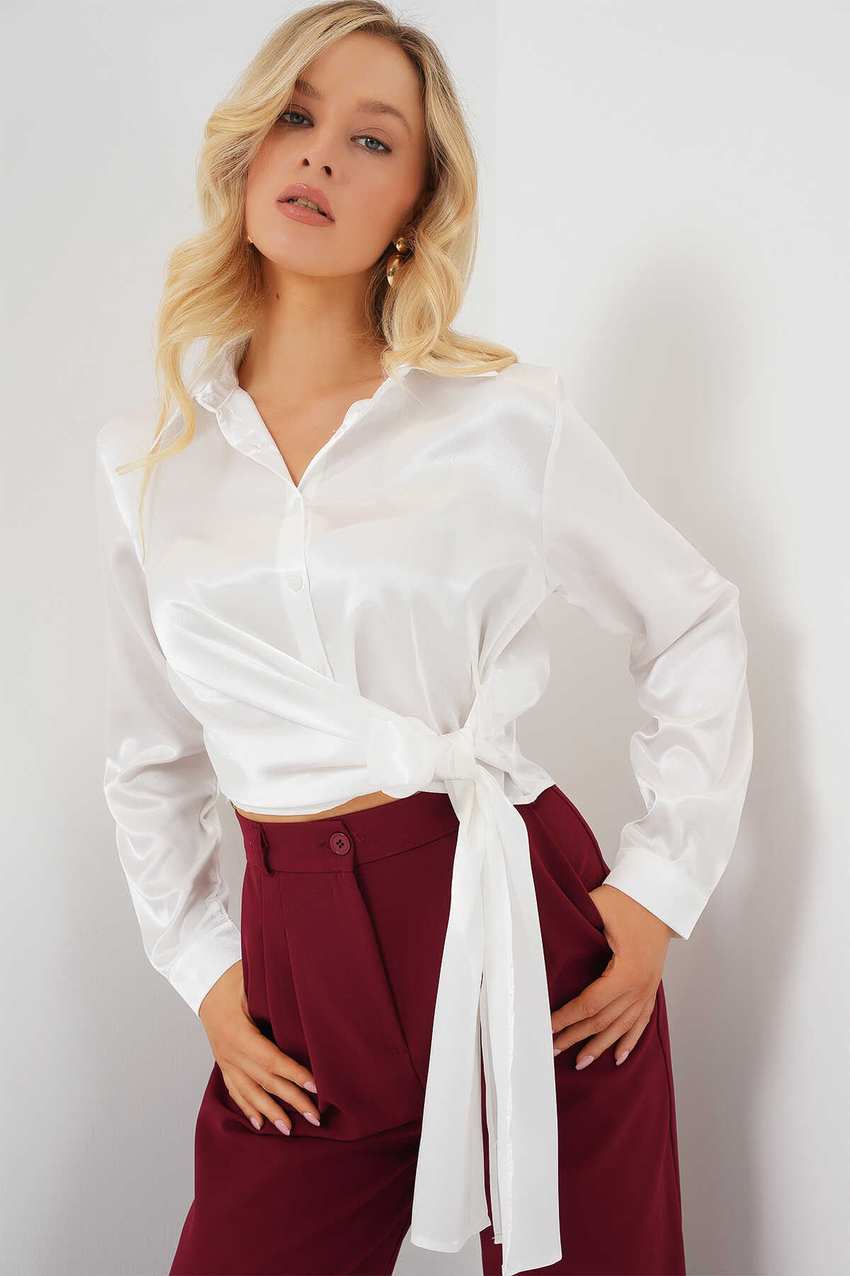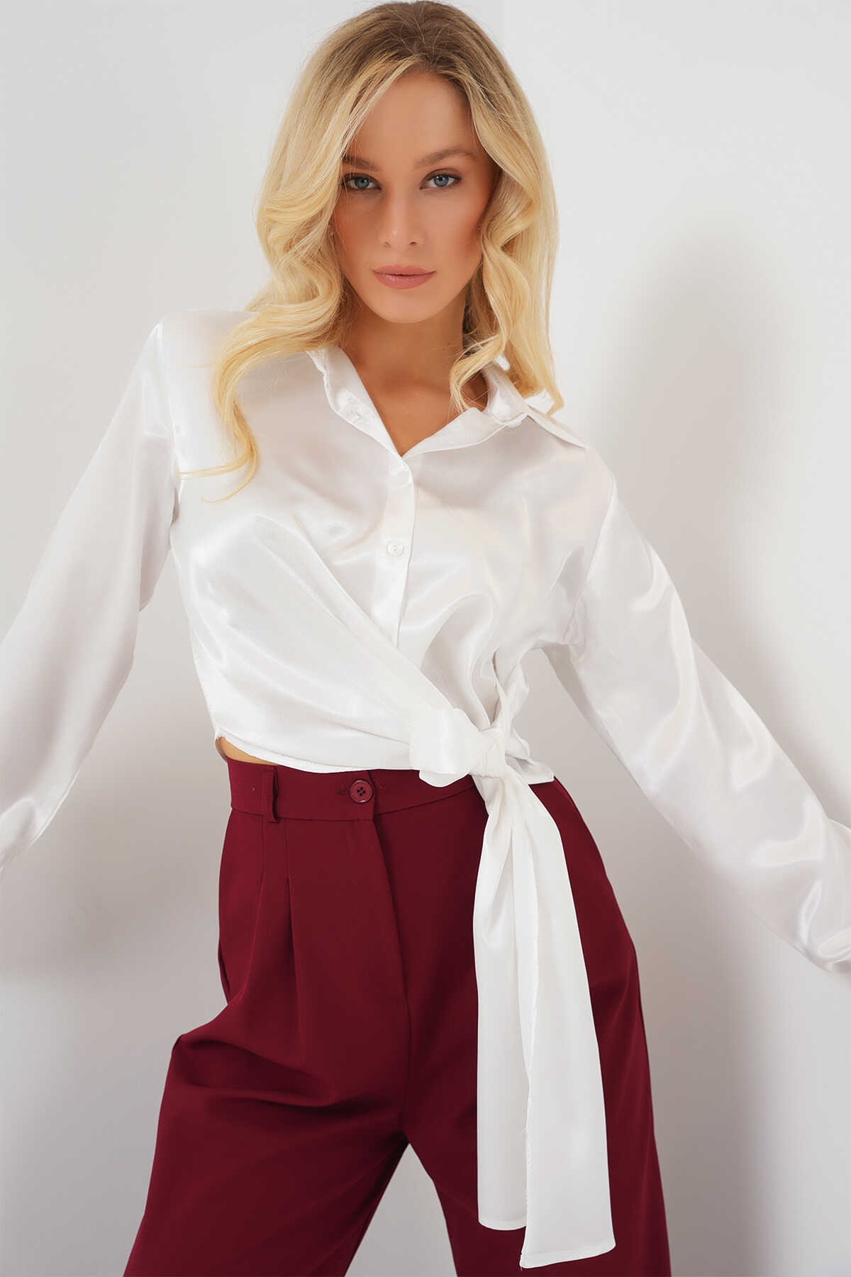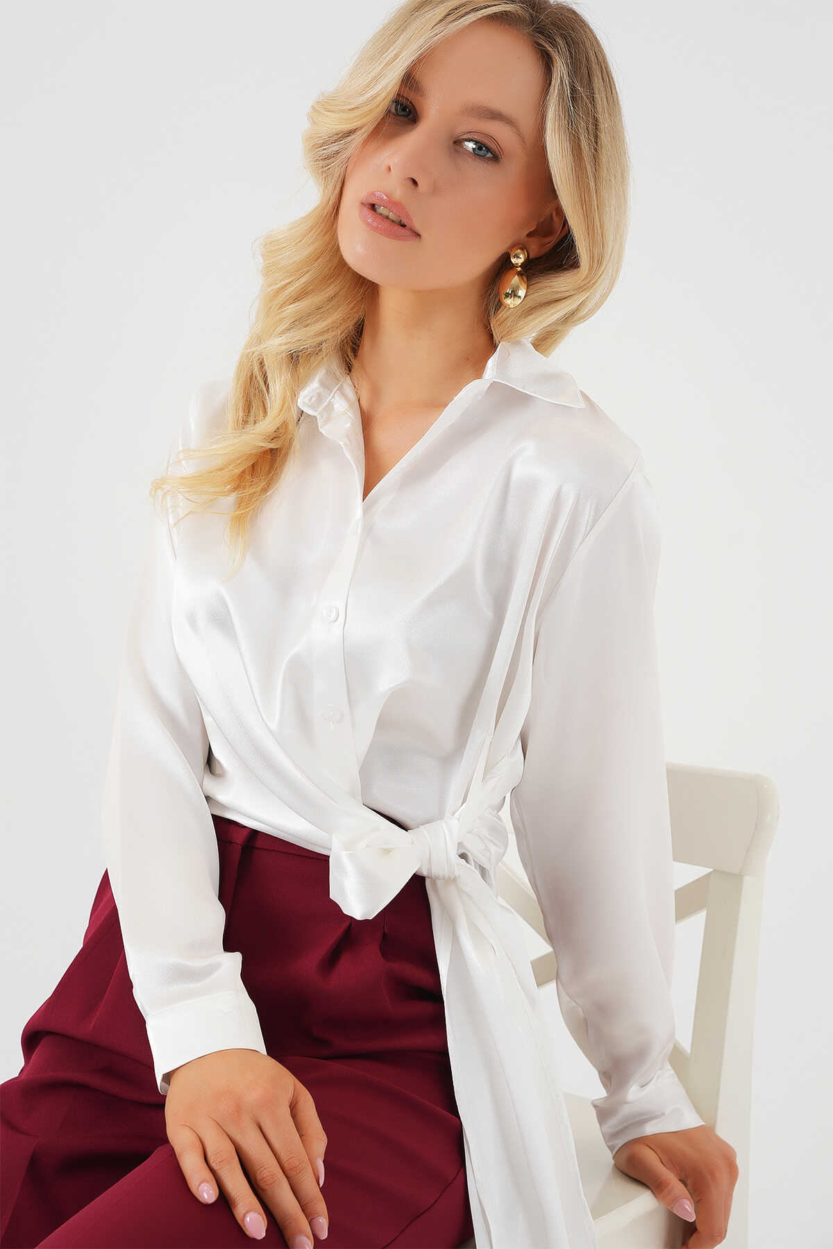 Kadin Baglamali Uzun Kol Saten Gömlek