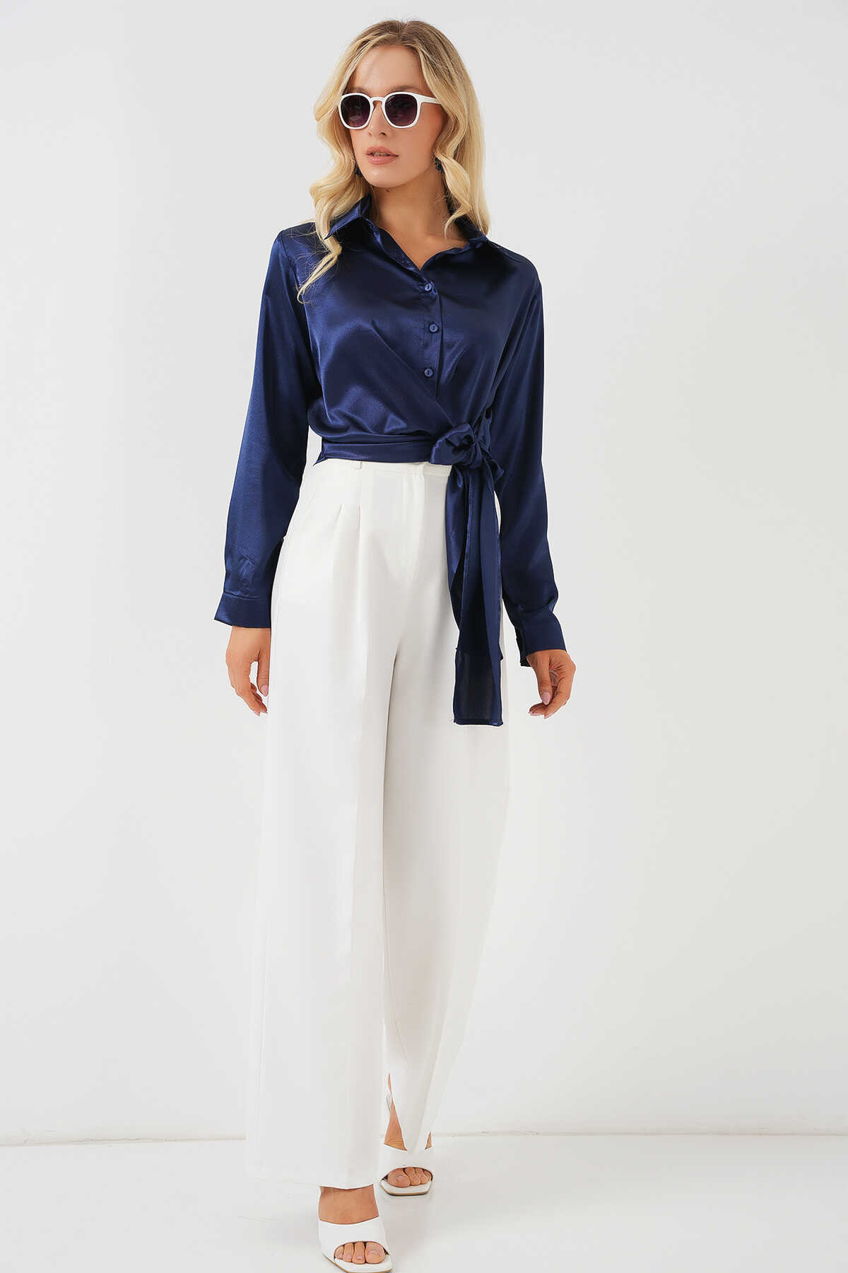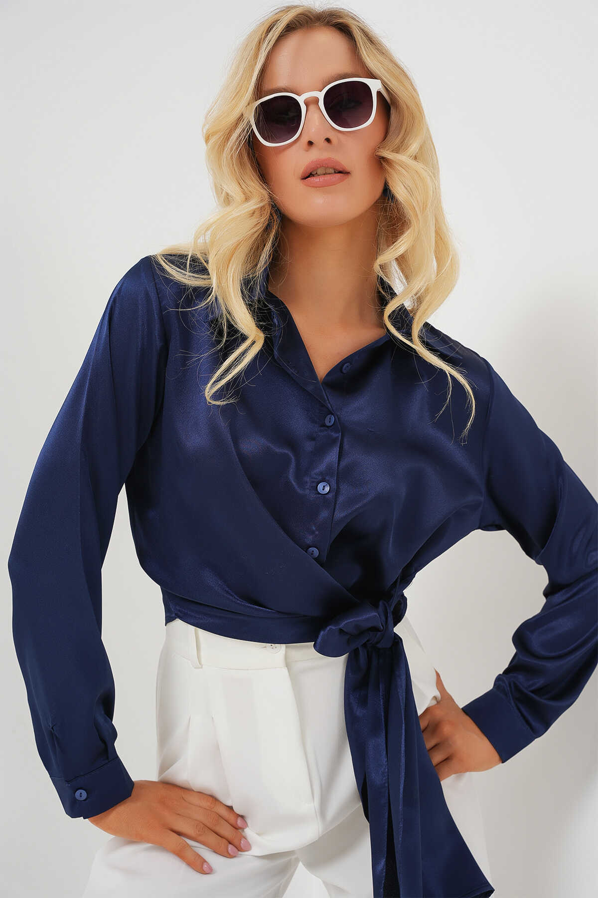 Kadin Baglamali Uzun Kol Saten Gömlek