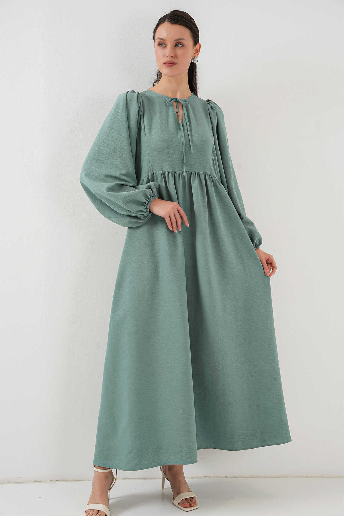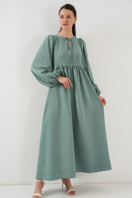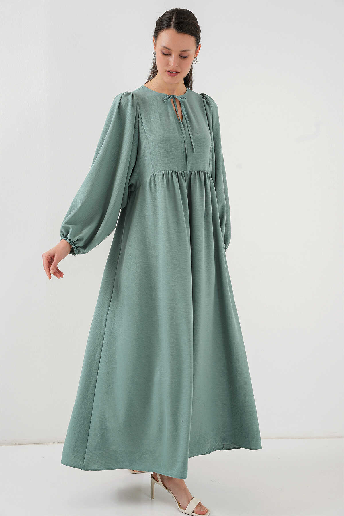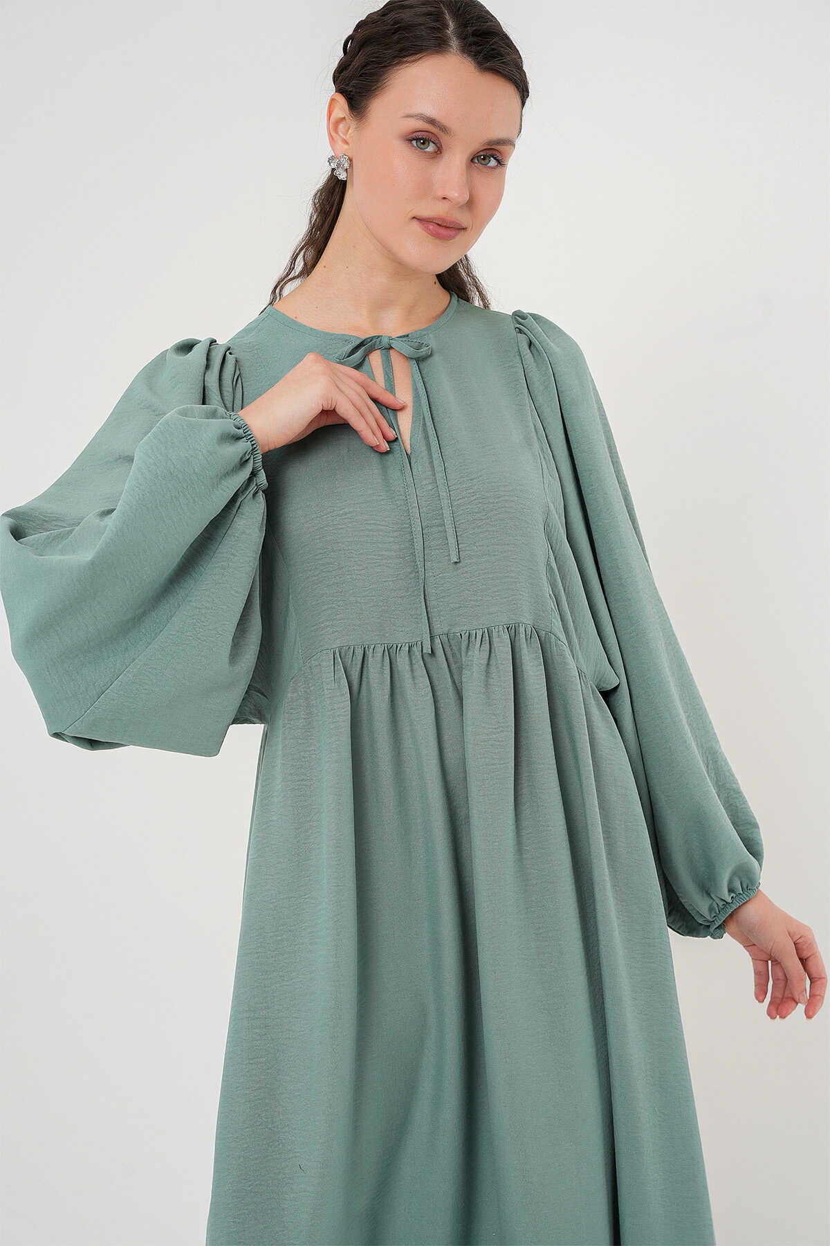 Kadın Balon Kol Uzun Tesettür Elbise 2464 - Çağla - Kombin