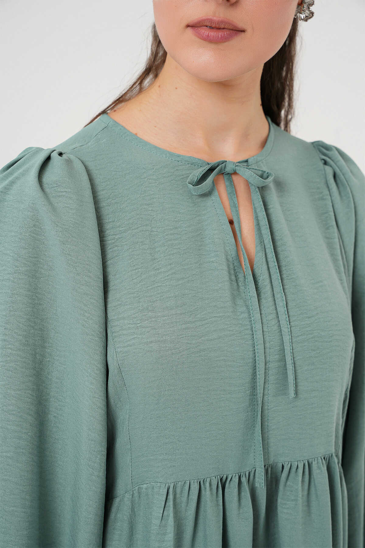 Kadın Balon Kol Uzun Tesettür Elbise 2464 - Çağla