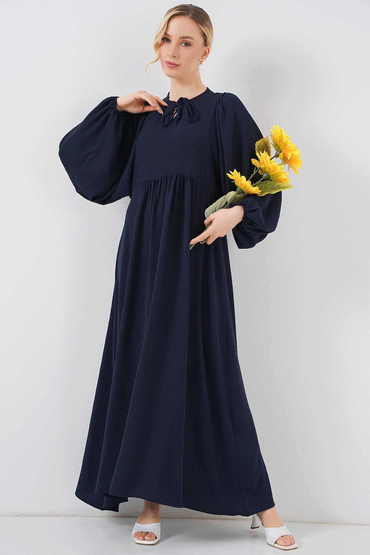 Kadın Balon Kol Uzun Tesettür Elbise 2464 - F.Lacivert