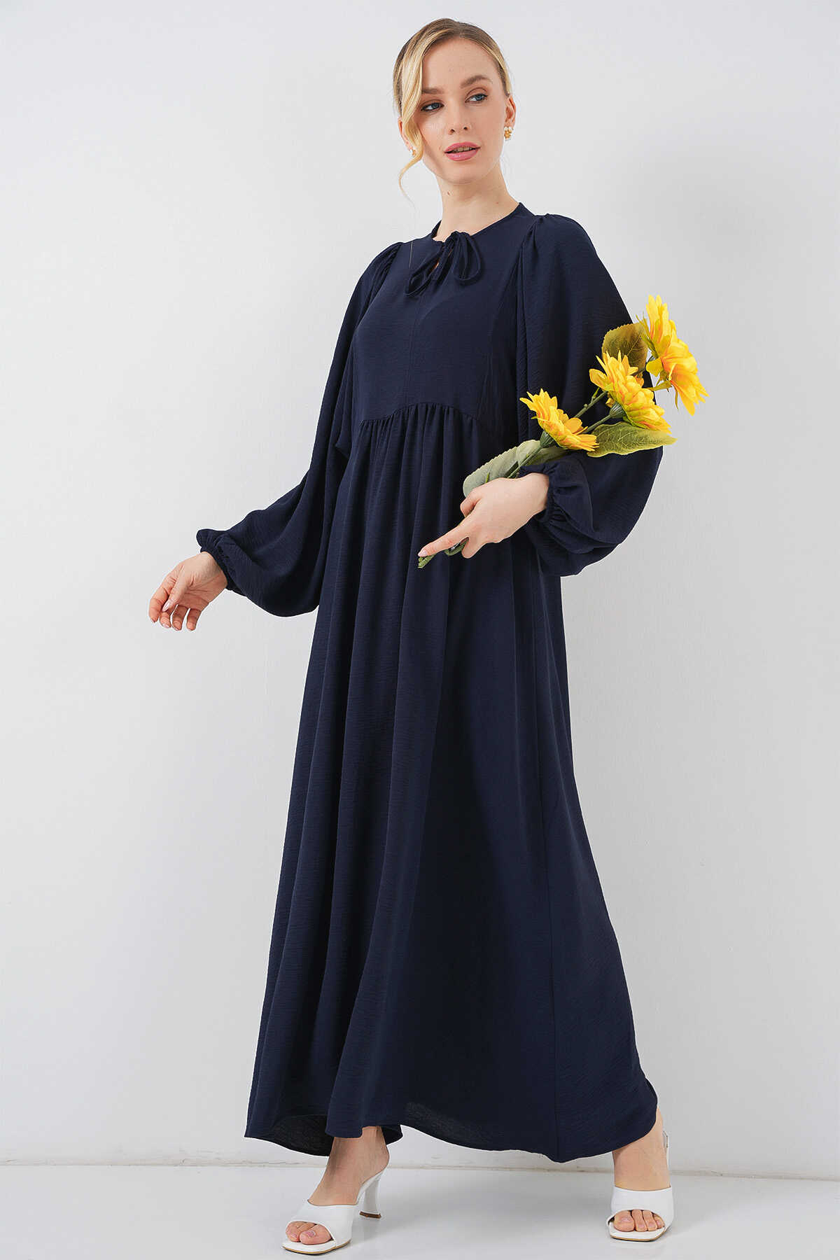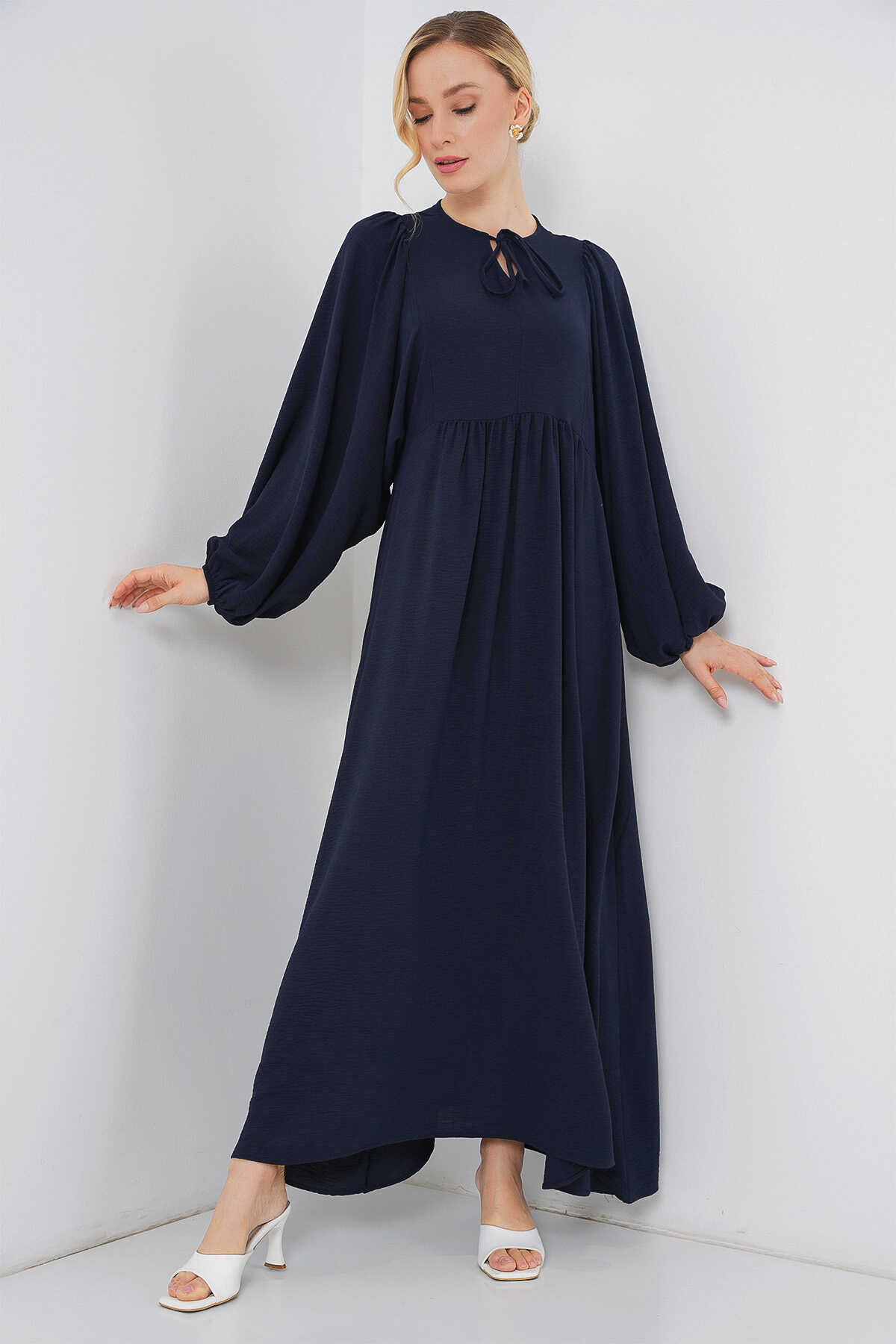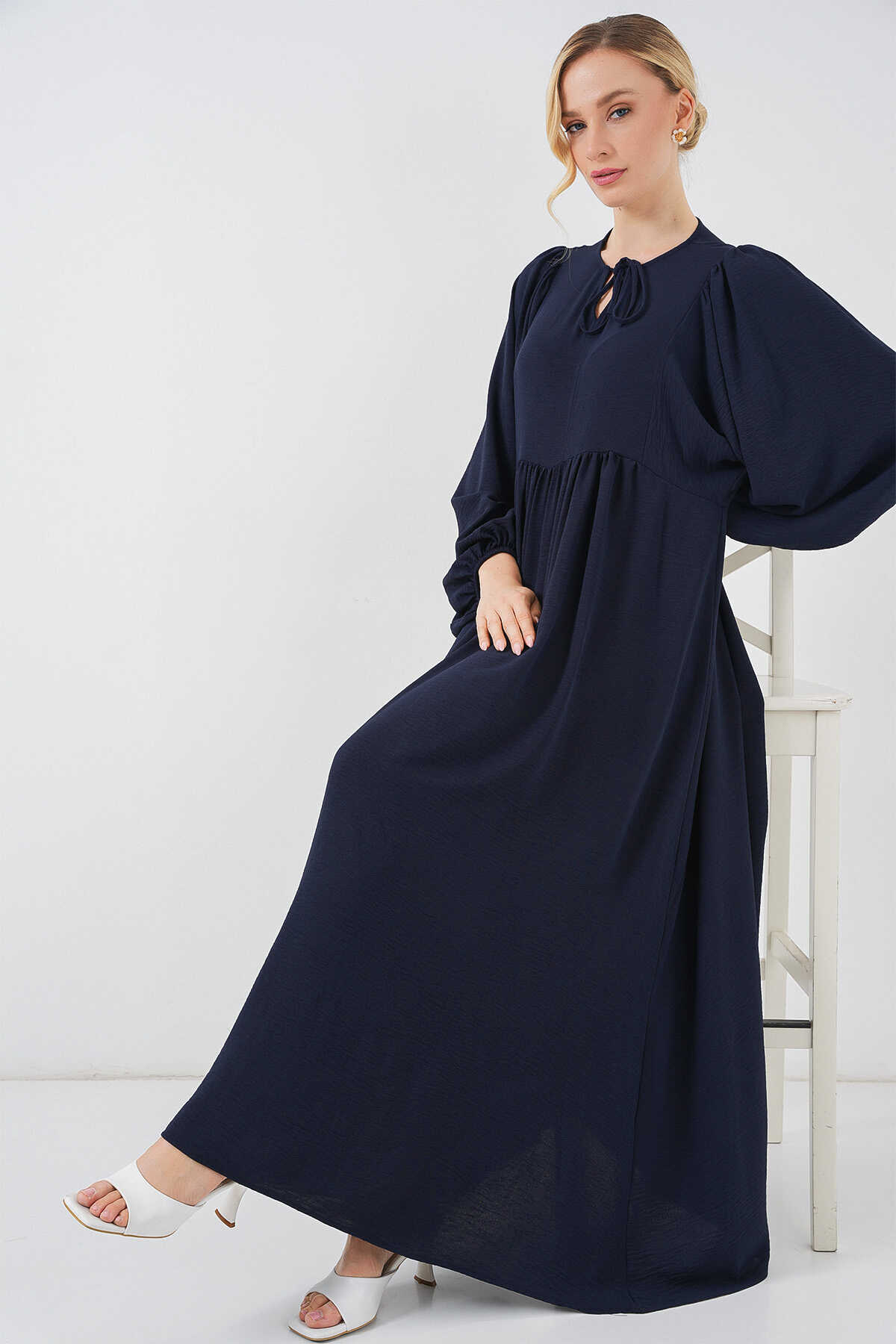 Kadın Balon Kol Uzun Tesettür Elbise 2464 - F.Lacivert - Kombin