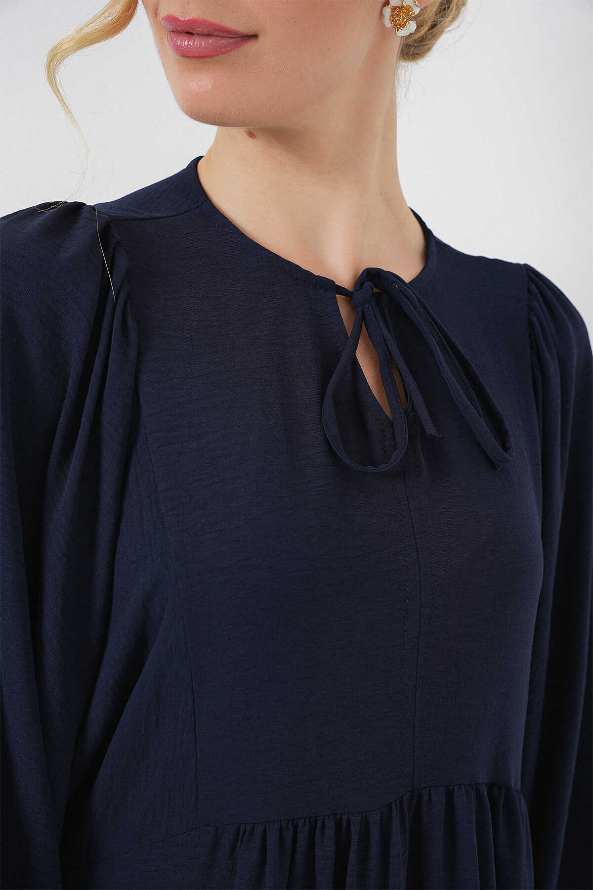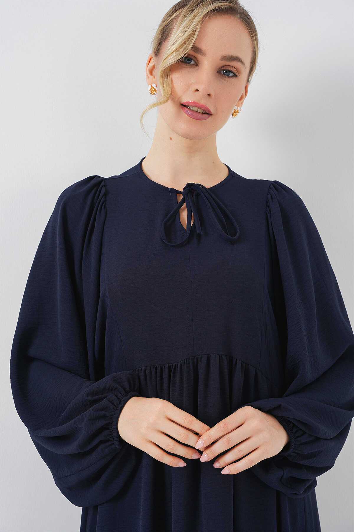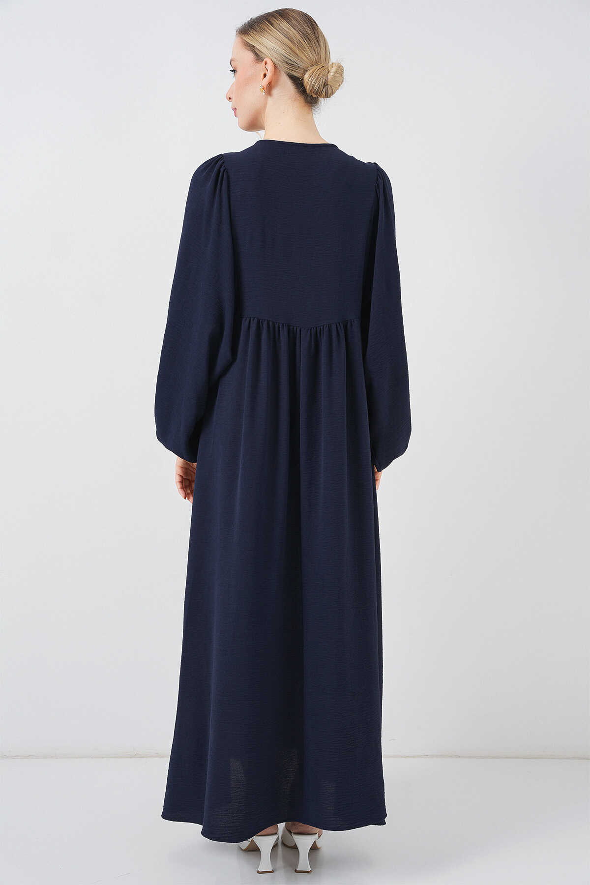 Kadın Balon Kol Uzun Tesettür Elbise 2464 - F.Lacivert - Kombin
