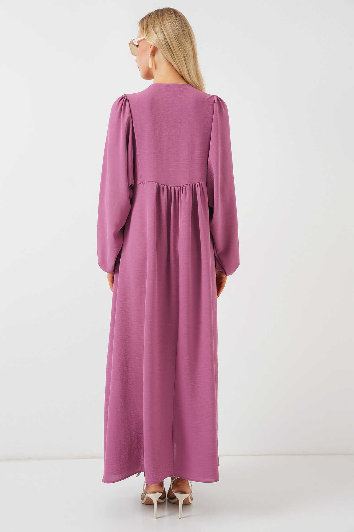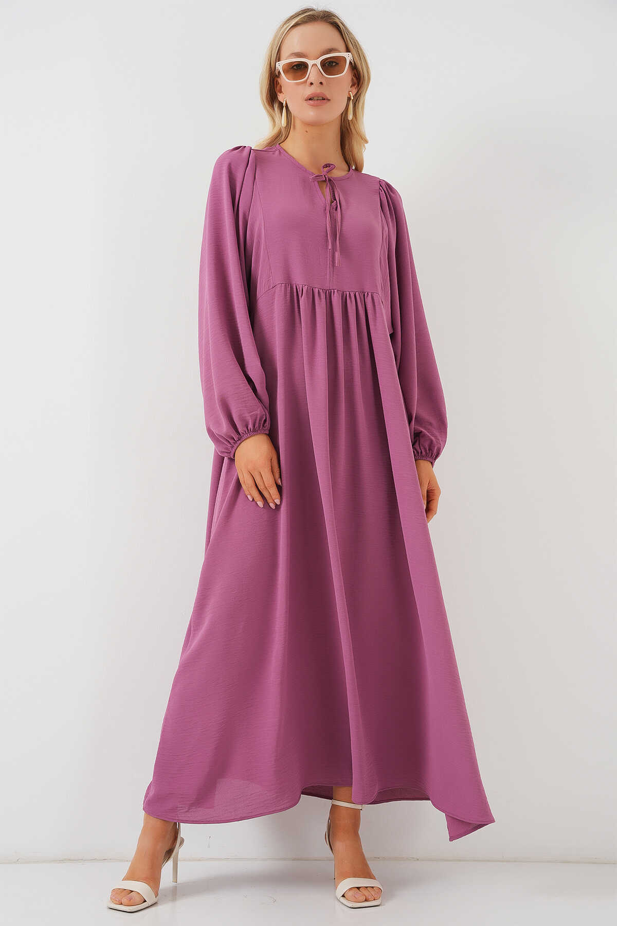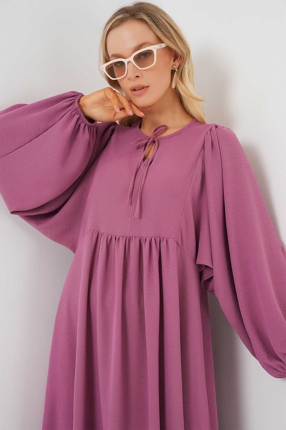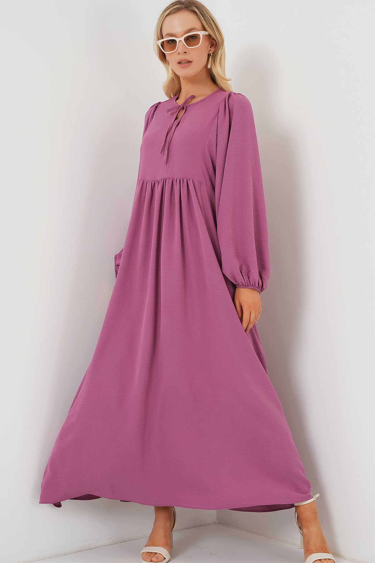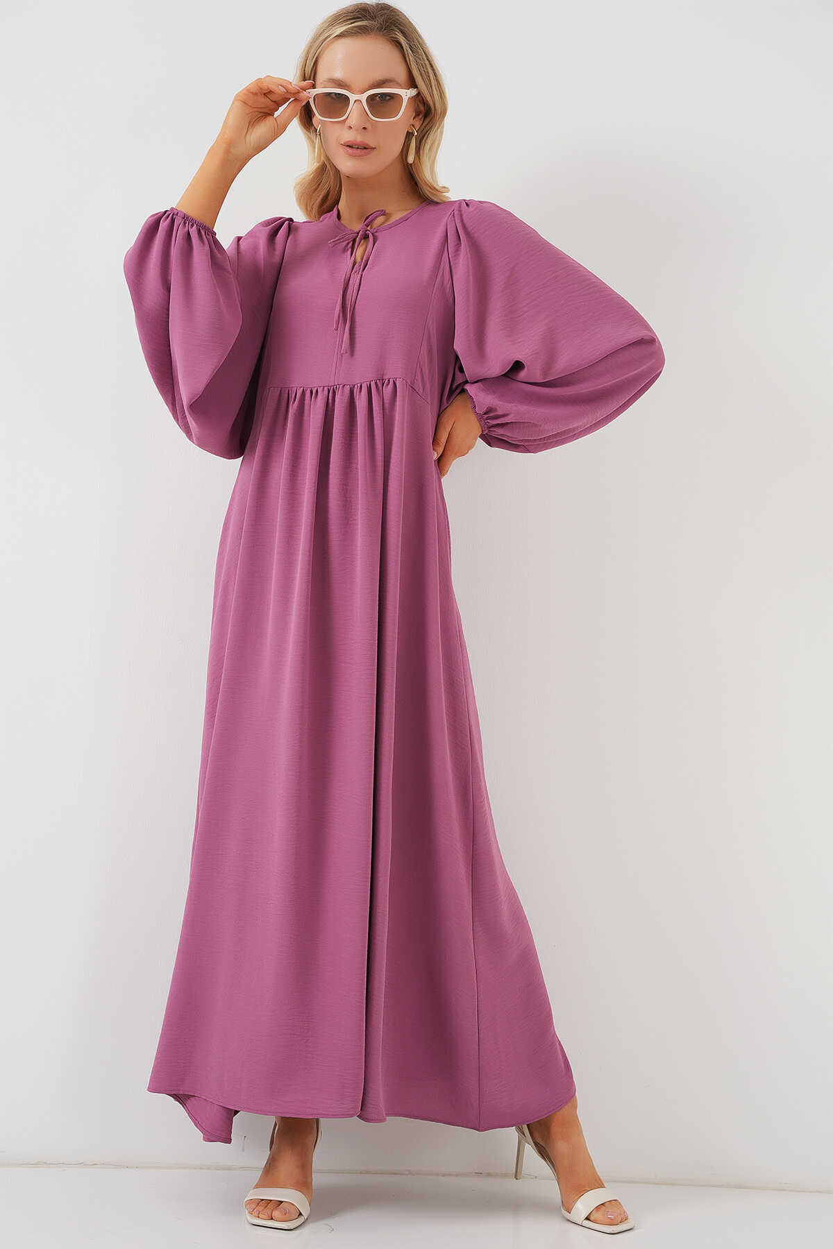 Kadın Balon Kol Uzun Tesettür Elbise 2464 - Gül Kurusu - Kombin