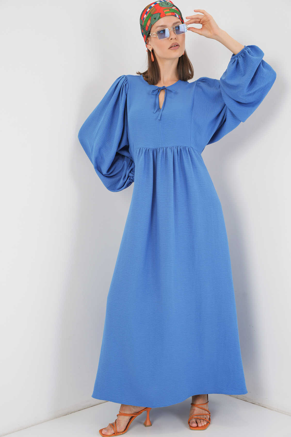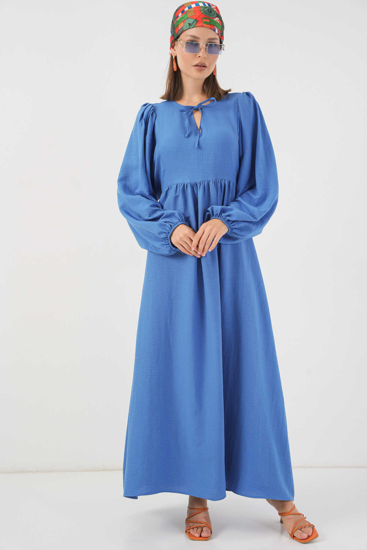 Kadın Balon Kol Uzun Tesettür Elbise 2464 - İndigo