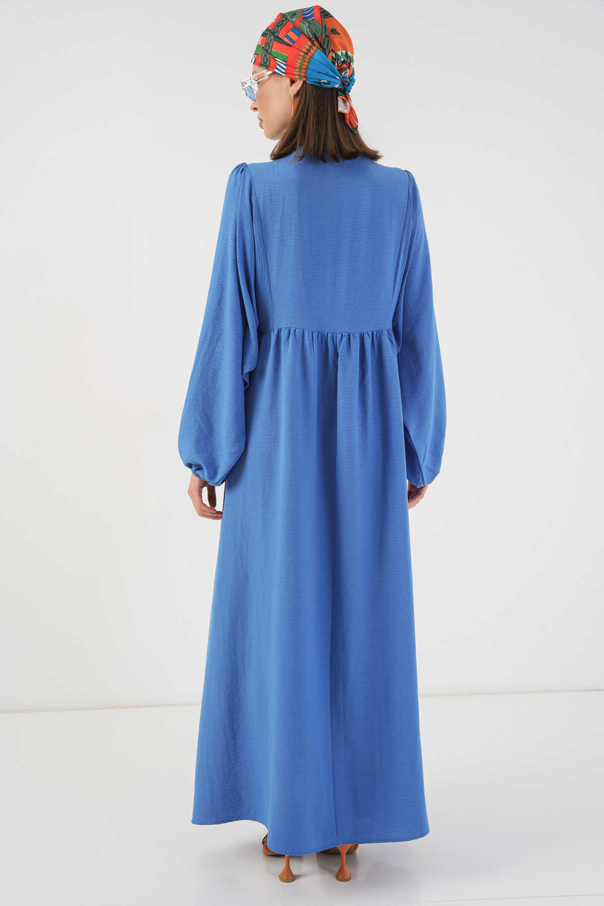 Kadın Balon Kol Uzun Tesettür Elbise 2464 - İndigo - Kombin