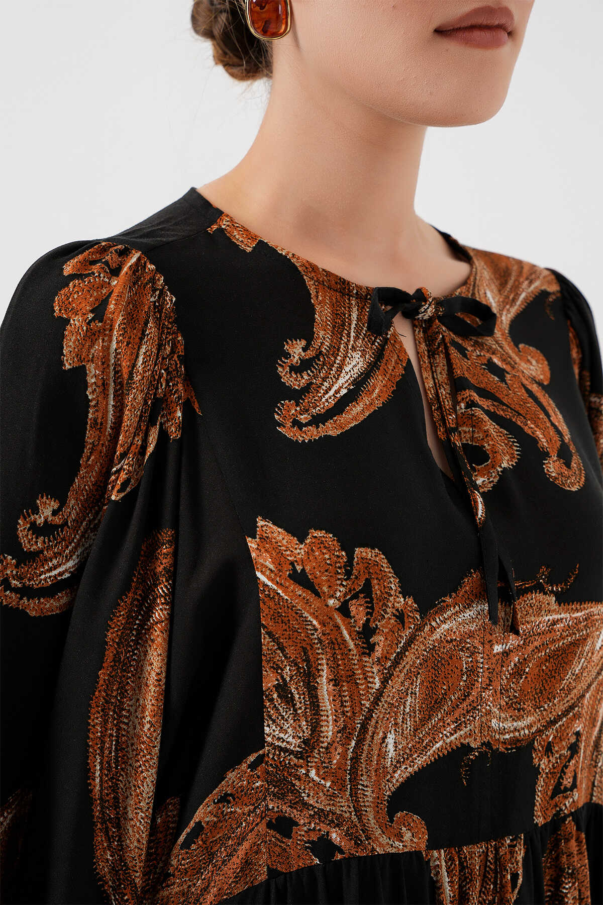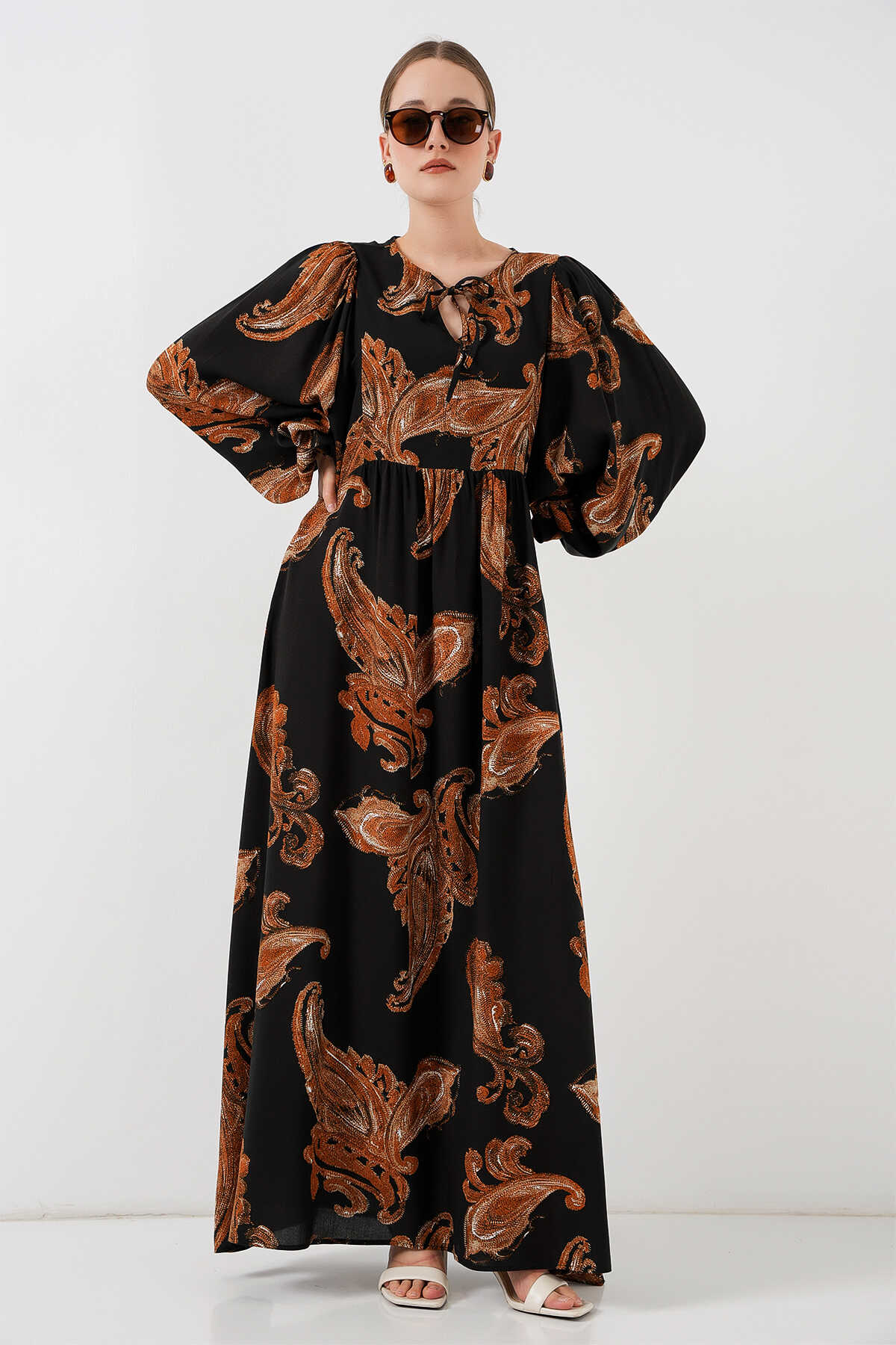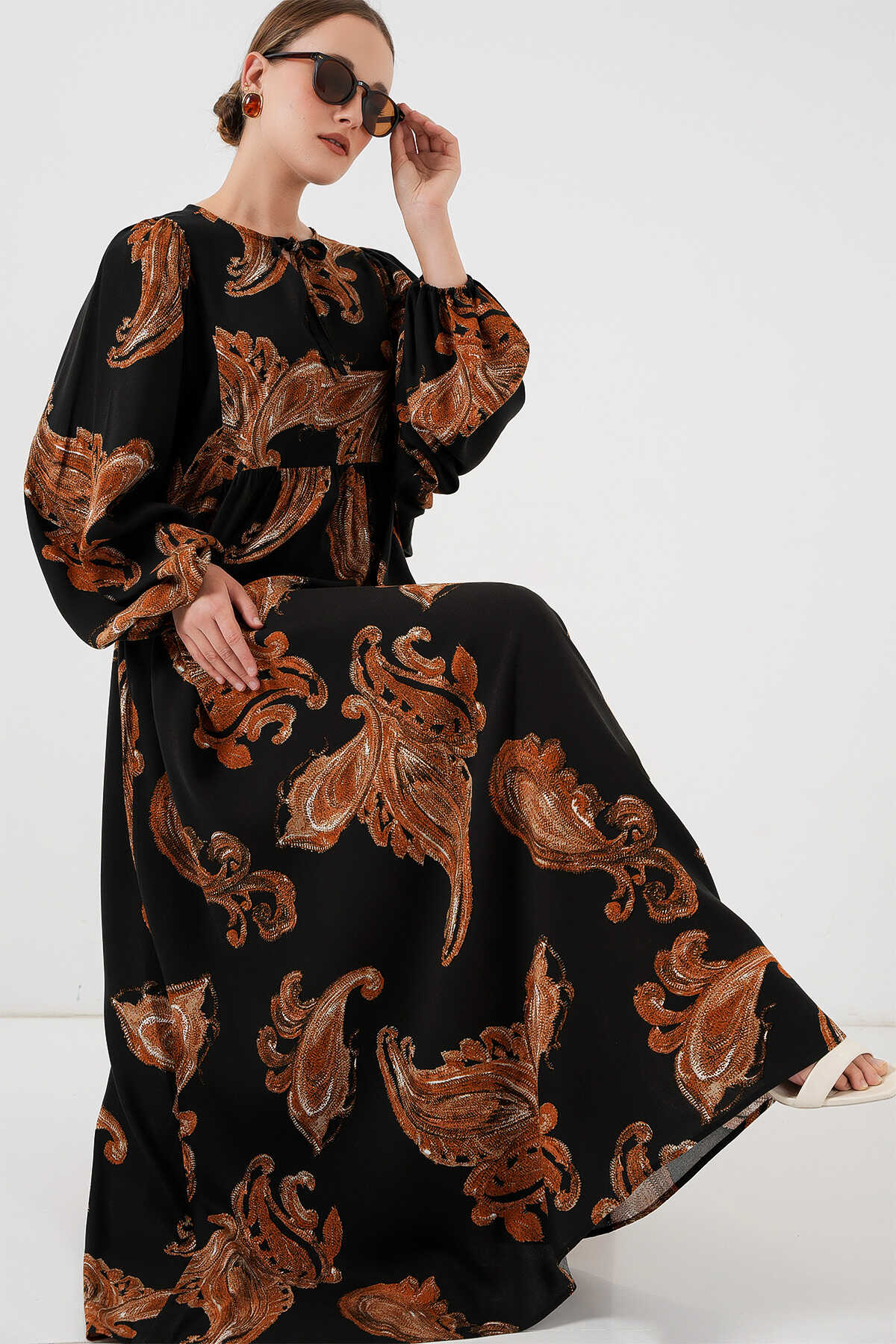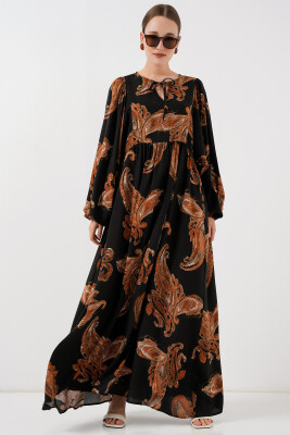 Kadın Balon Kol Uzun Tesettür Elbise 2464 - M. Taba