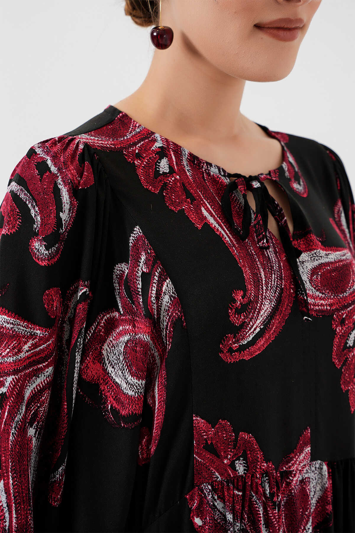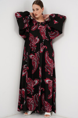 Kadın Balon Kol Uzun Tesettür Elbise 2464 - Y.Kırmızı
