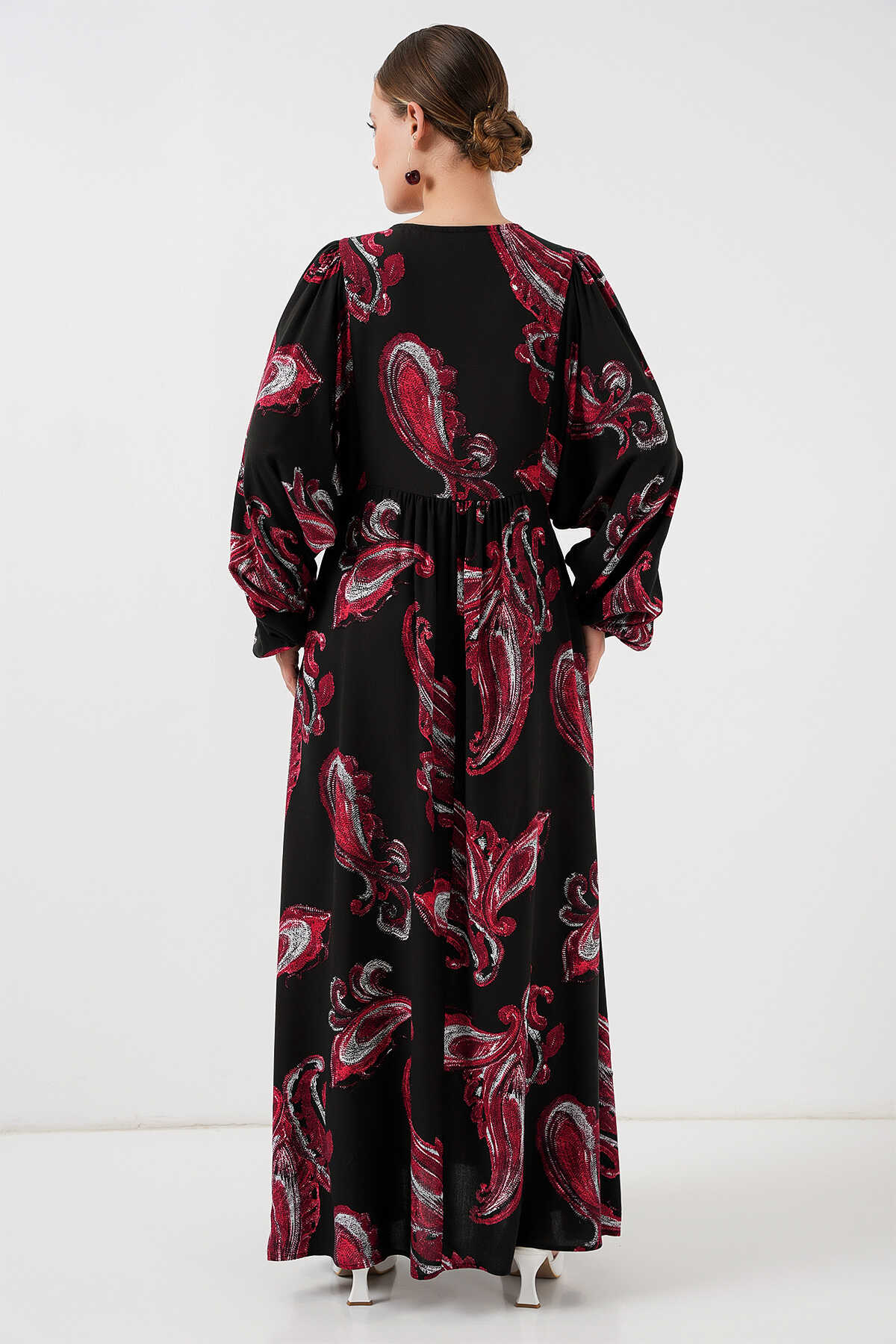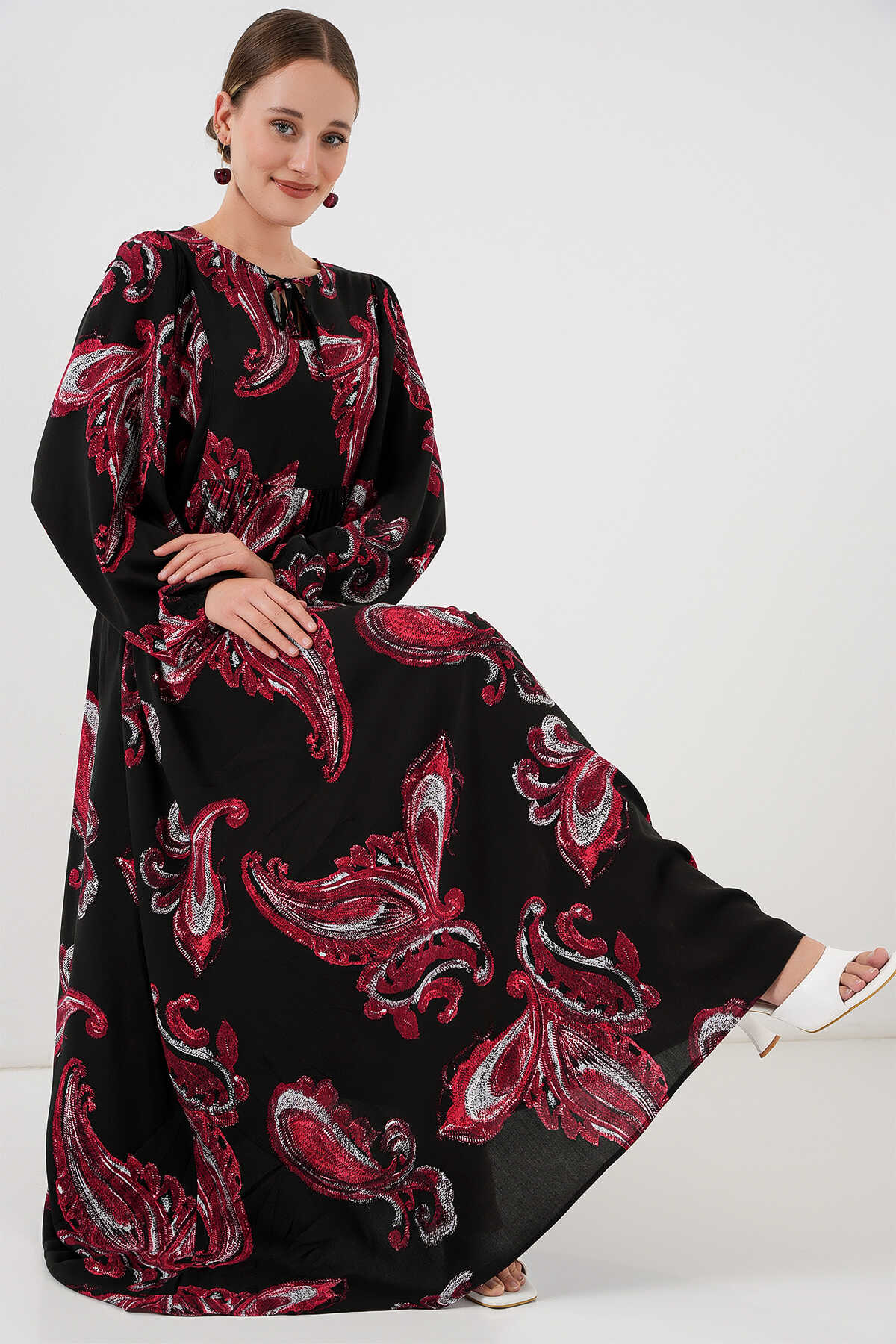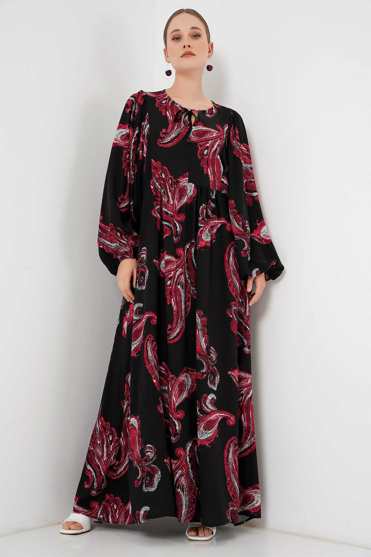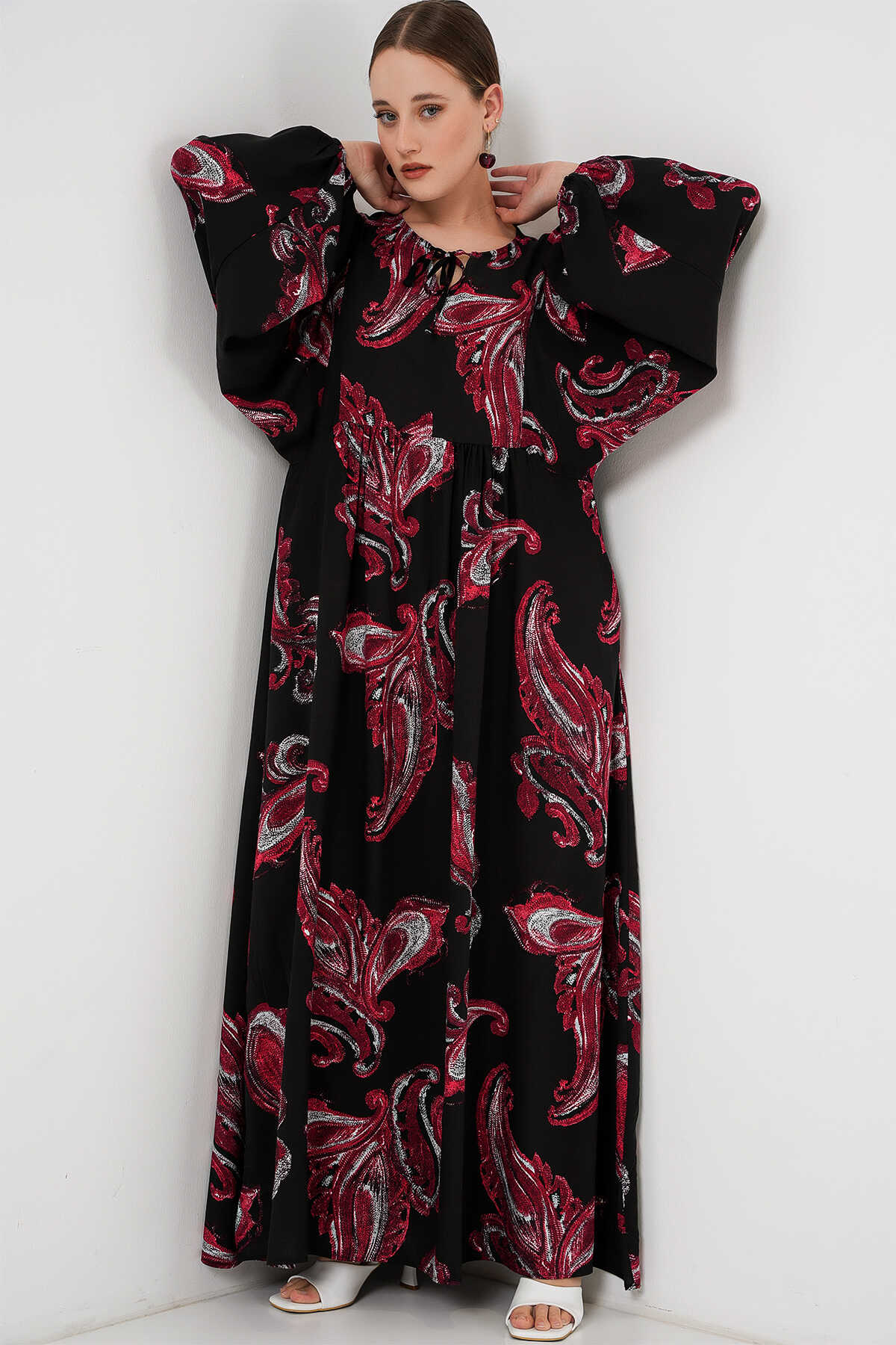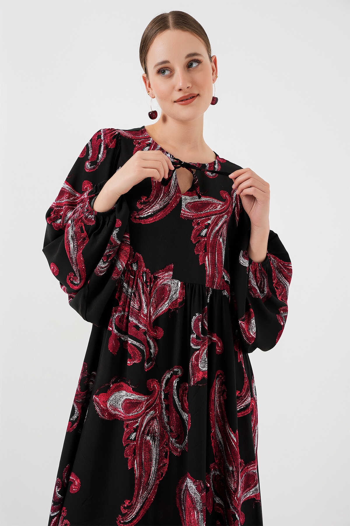 Kadın Balon Kol Uzun Tesettür Elbise 2464 - Y.Kırmızı - Kombin
