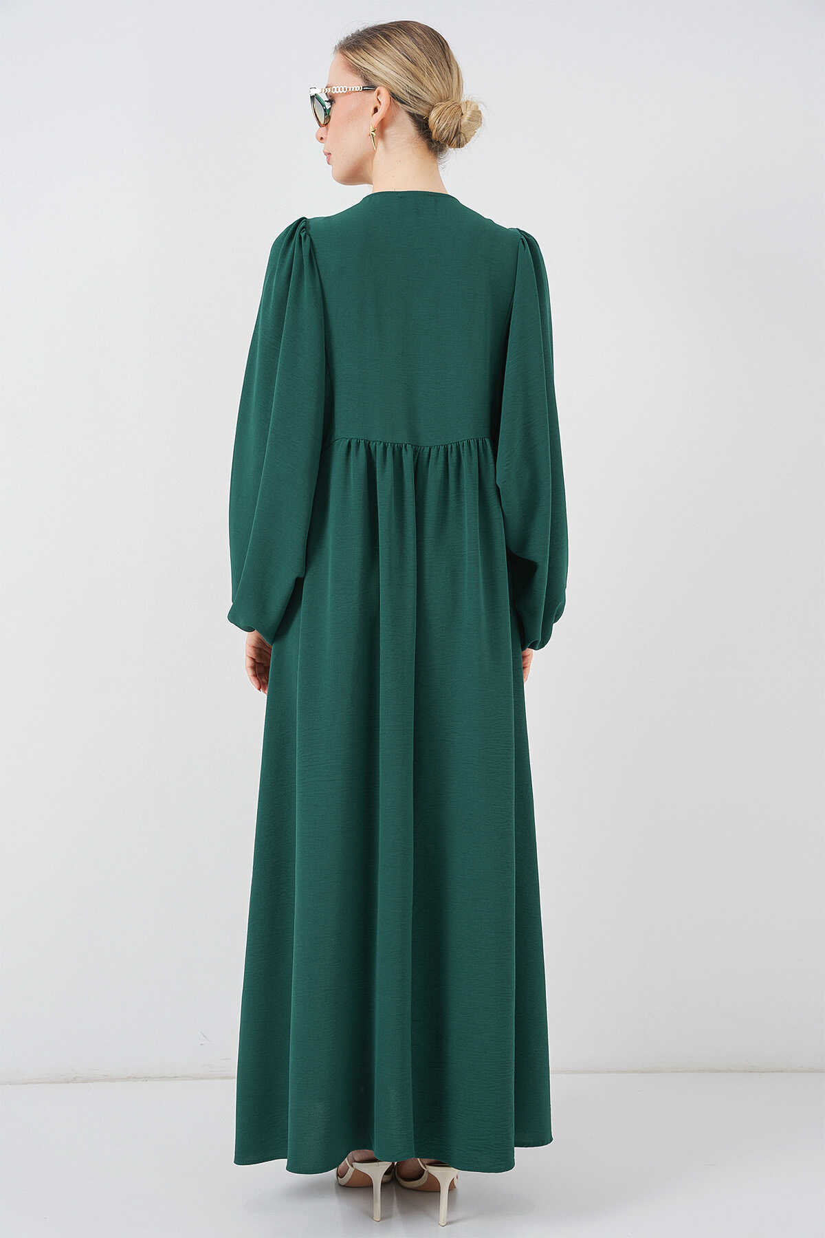 Kadın Balon Kol Uzun Tesettür Elbise 2464 - Zümrüt Yeşili - Kombin