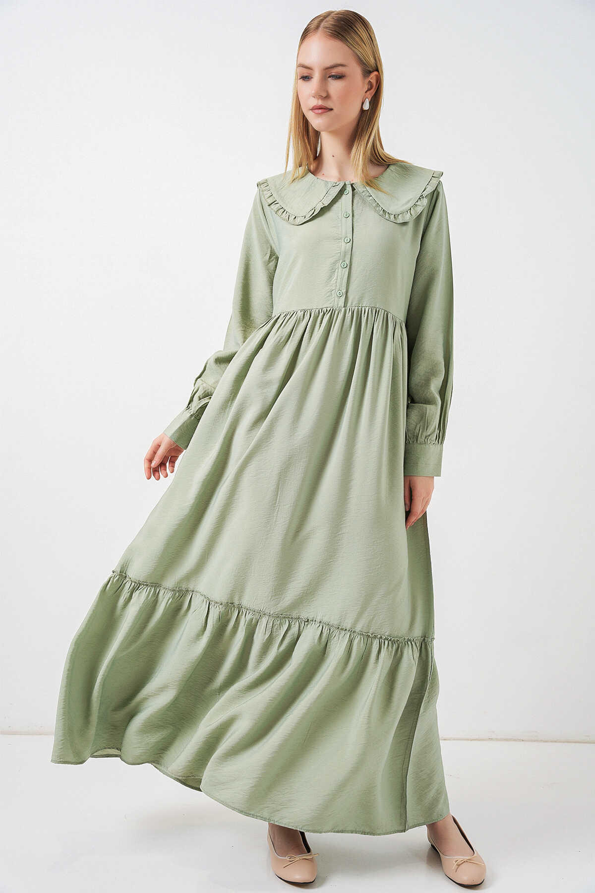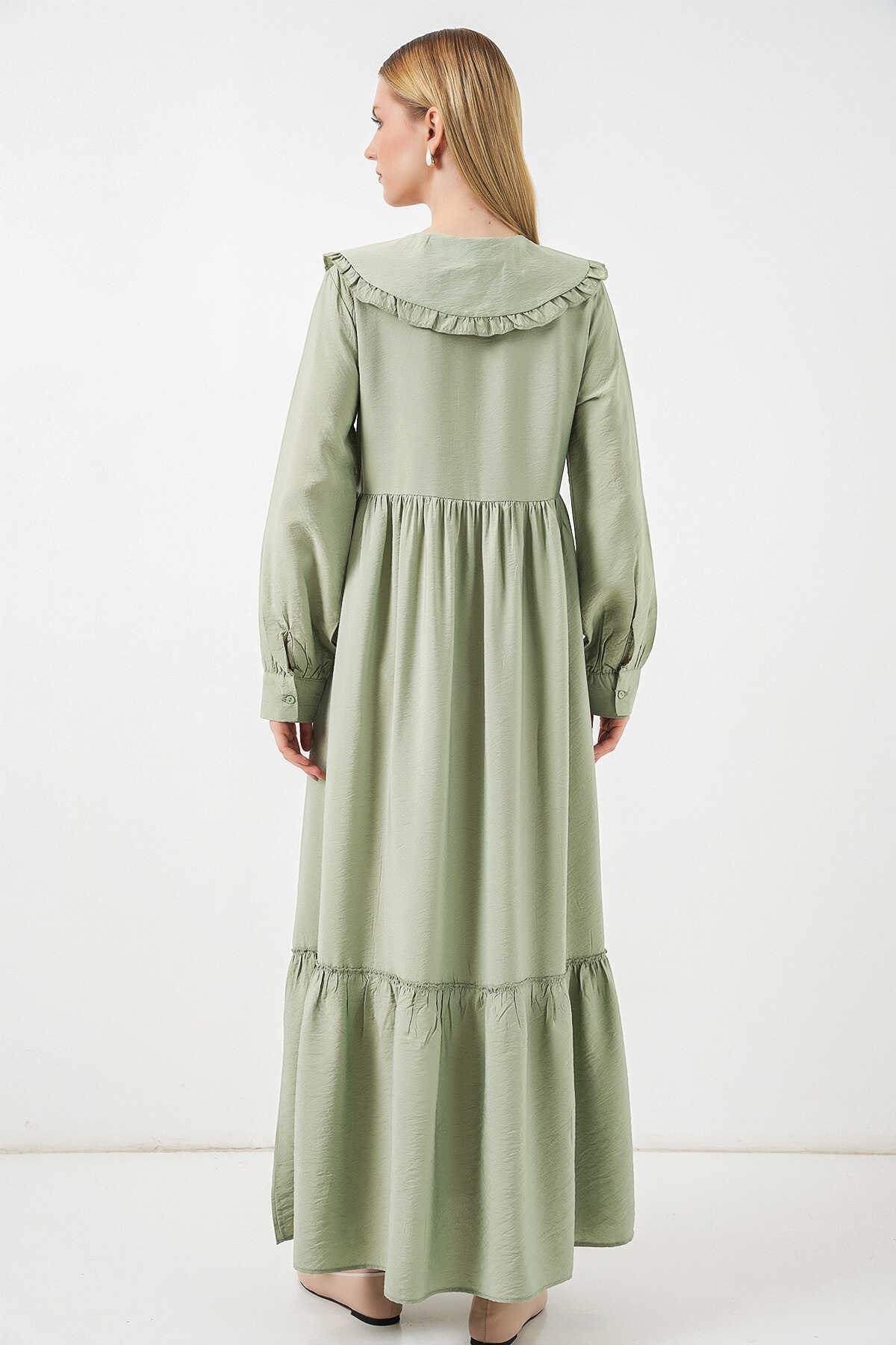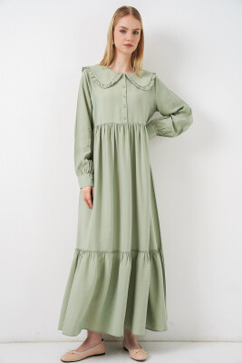 Kadın Bebe Yaka Uzun Tesettür Elbise 2592 - E.Yeşil