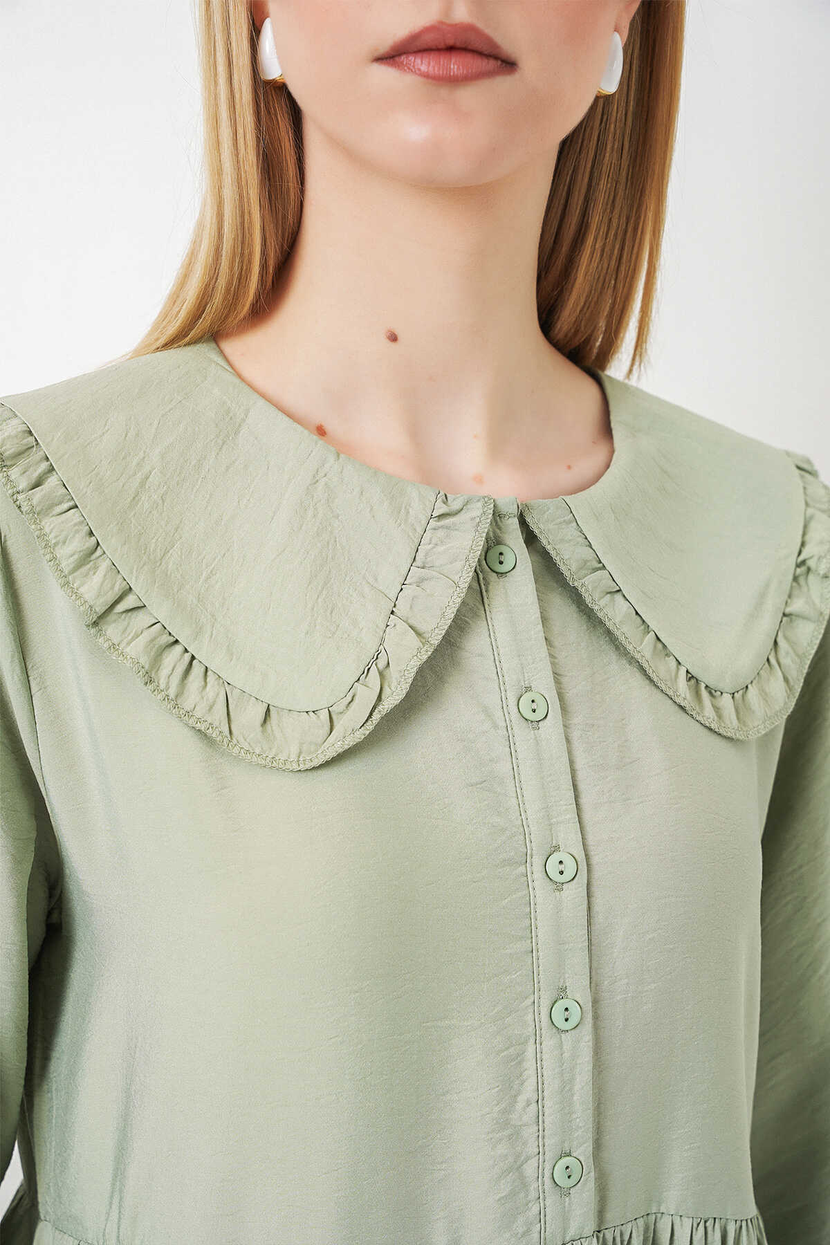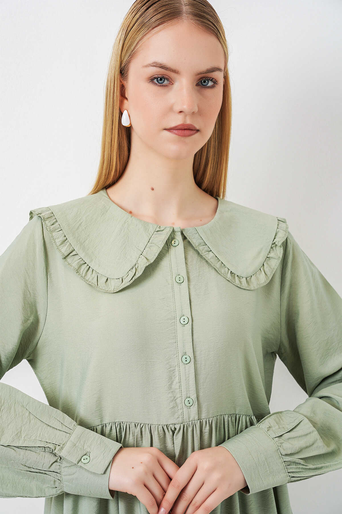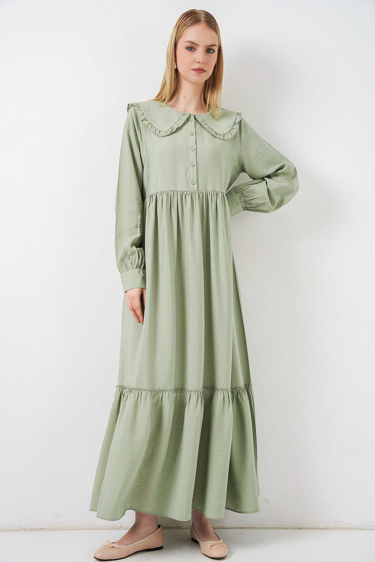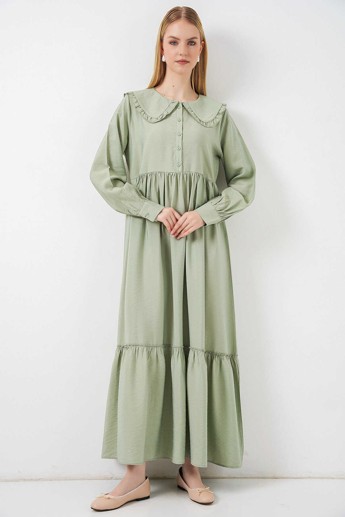 Kadın Bebe Yaka Uzun Tesettür Elbise 2592 - E.Yeşil - Kombin