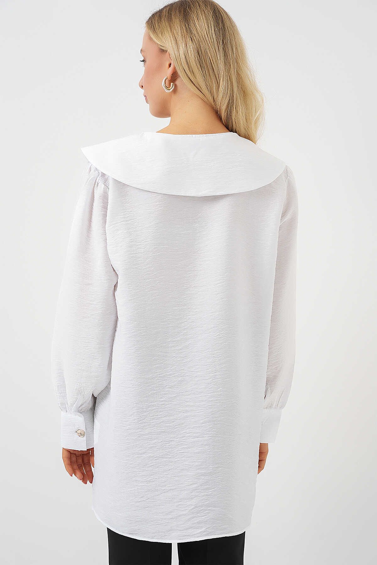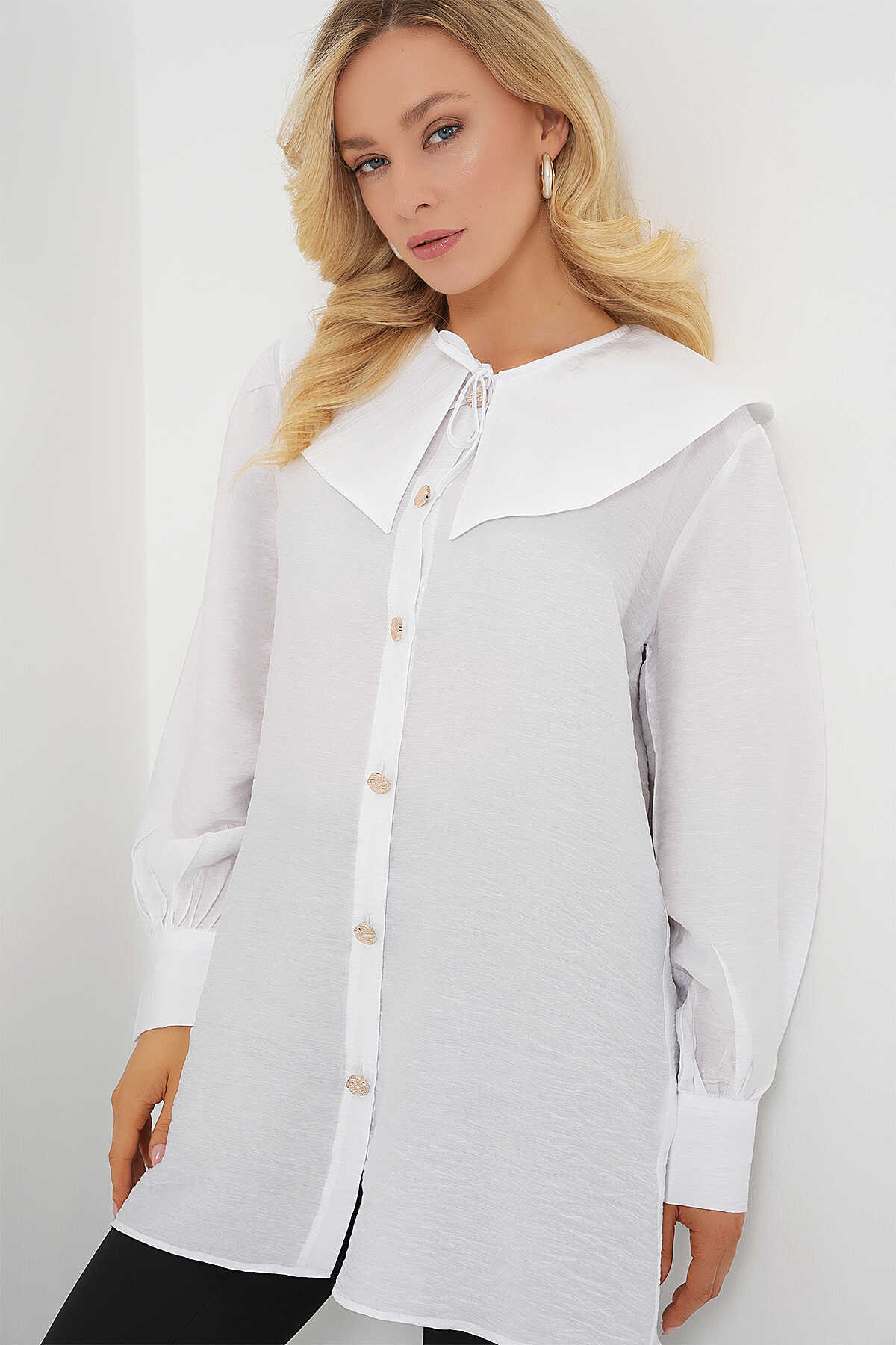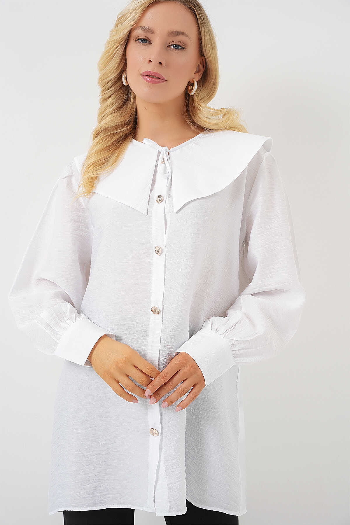 Kadın Bebe Yaka Uzun Tunik 5967 - Beyaz - Kombin