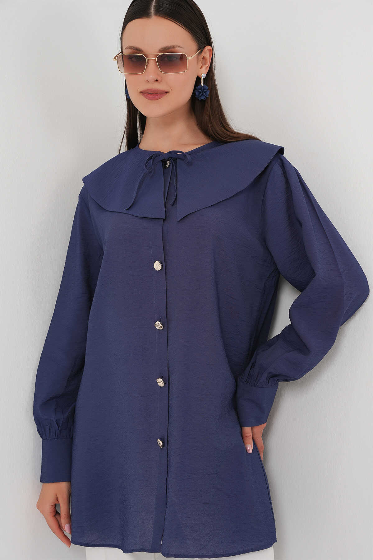 Kadın Bebe Yaka Uzun Tunik 5967 - İndigo - Kombin